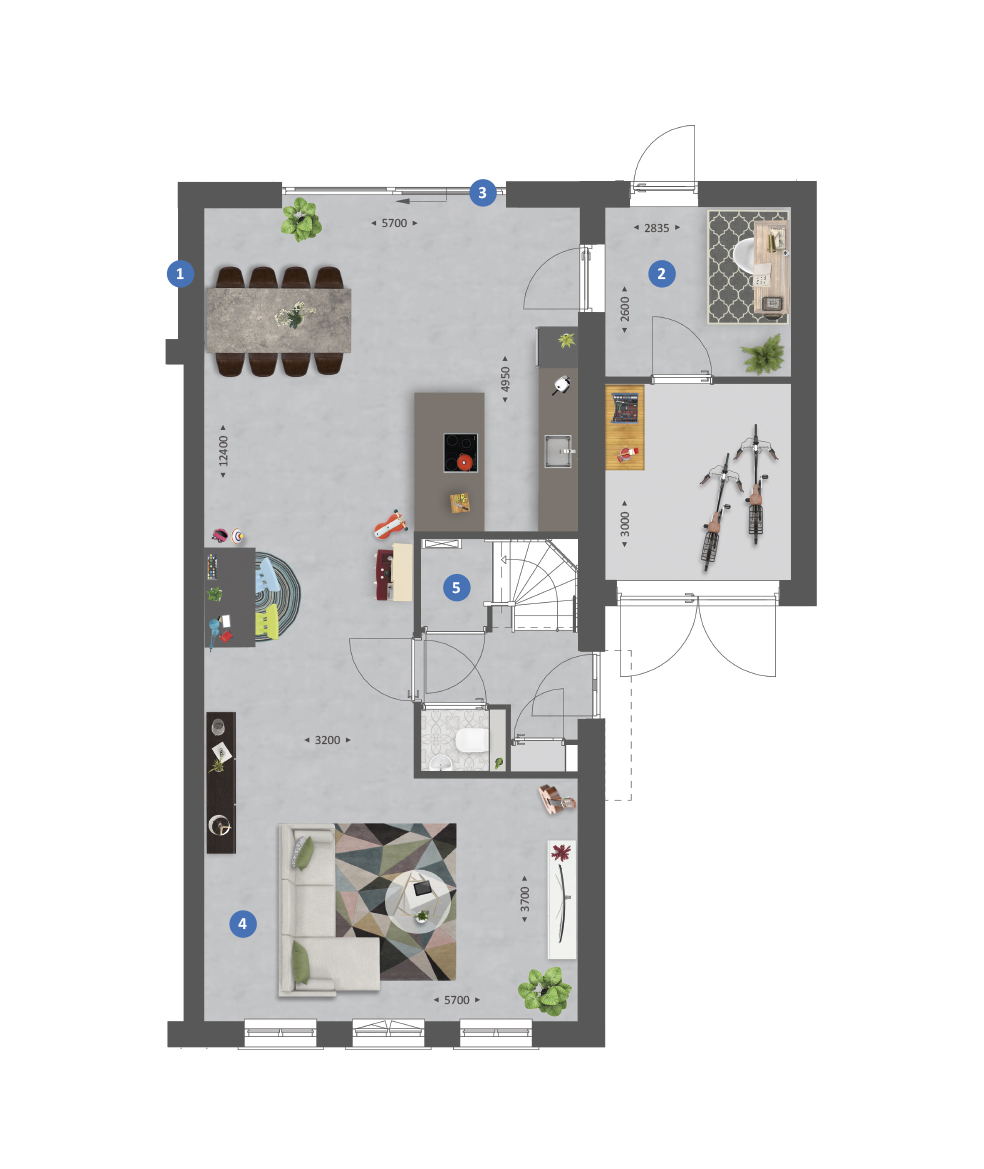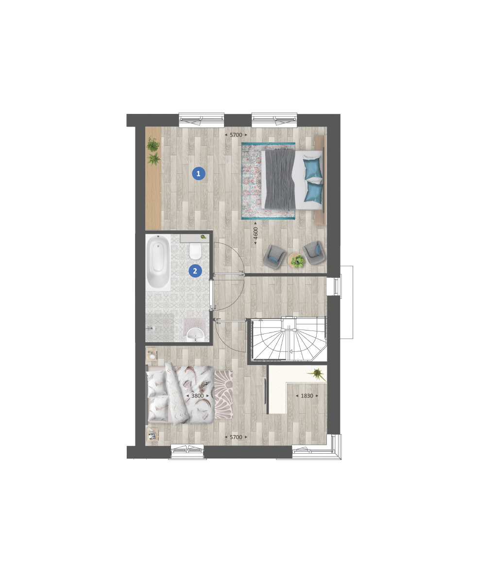 - Gratis keuze: woonkamer aan straat- of tuinzijde