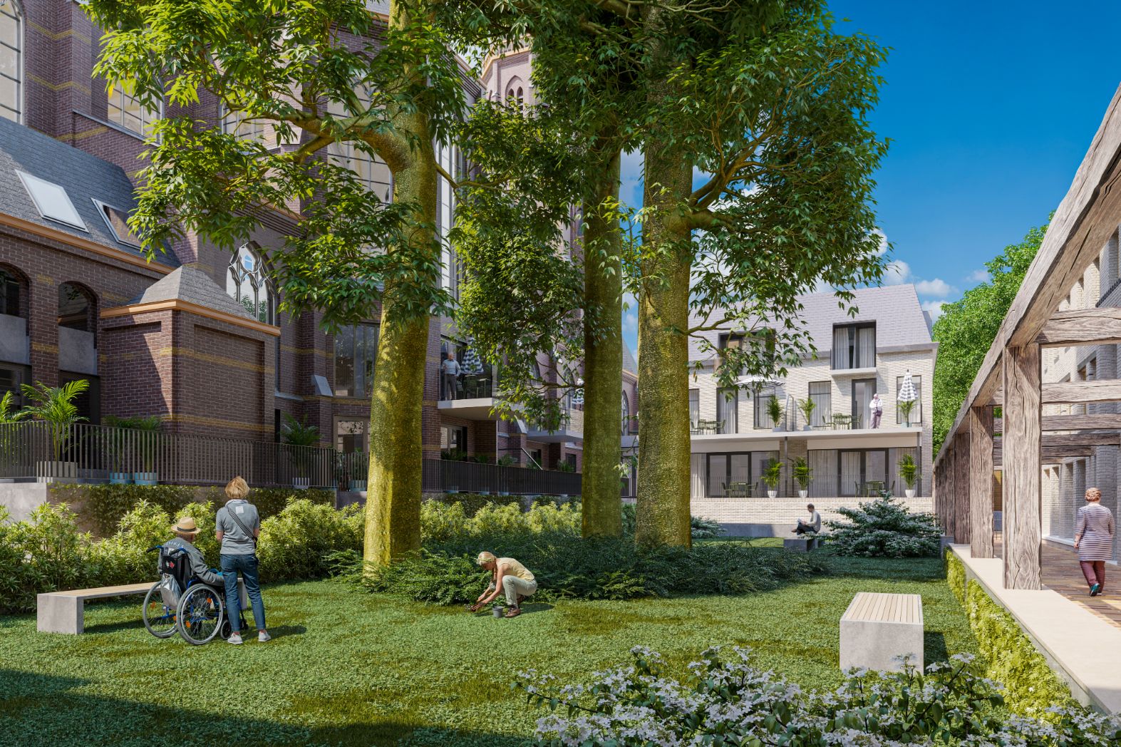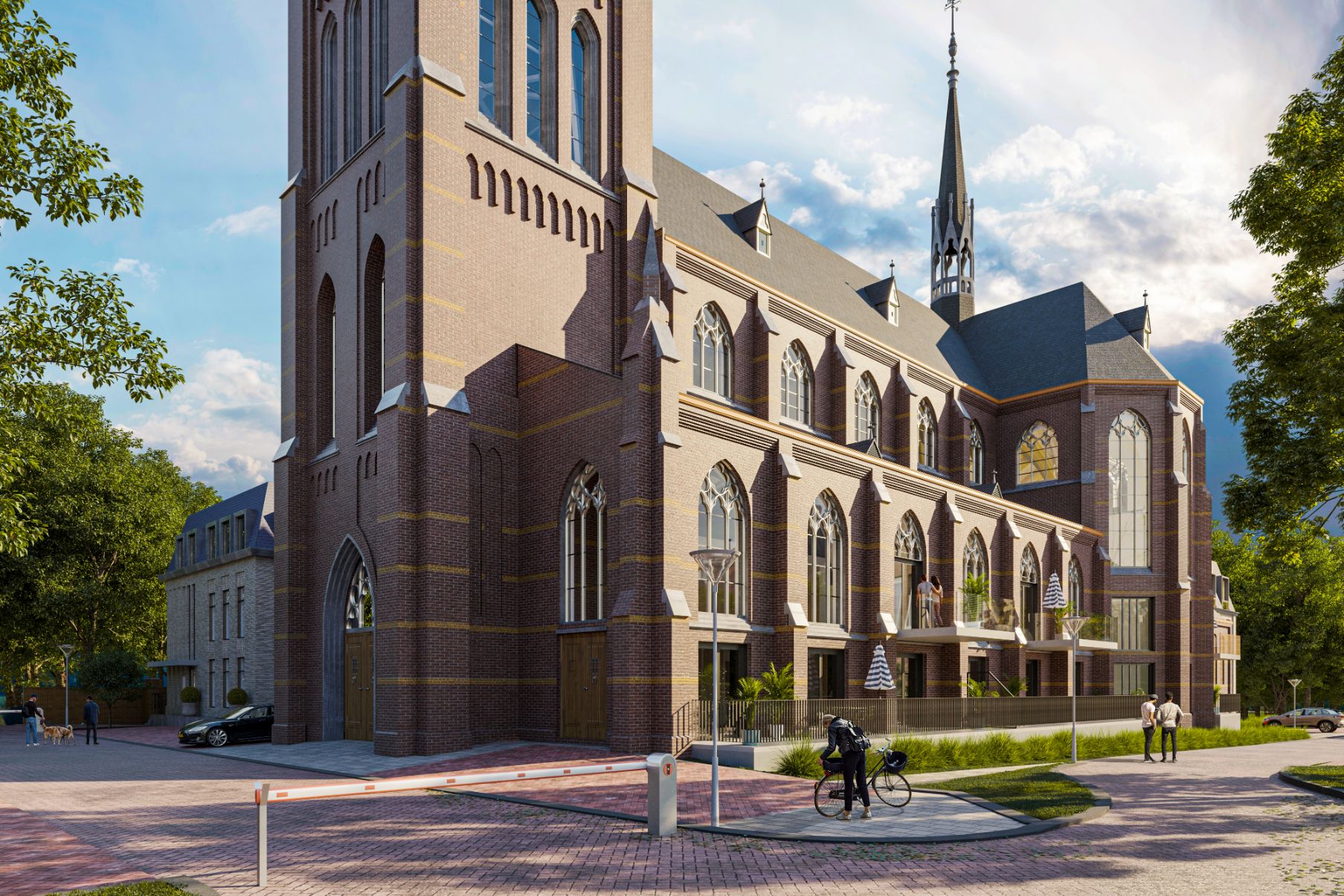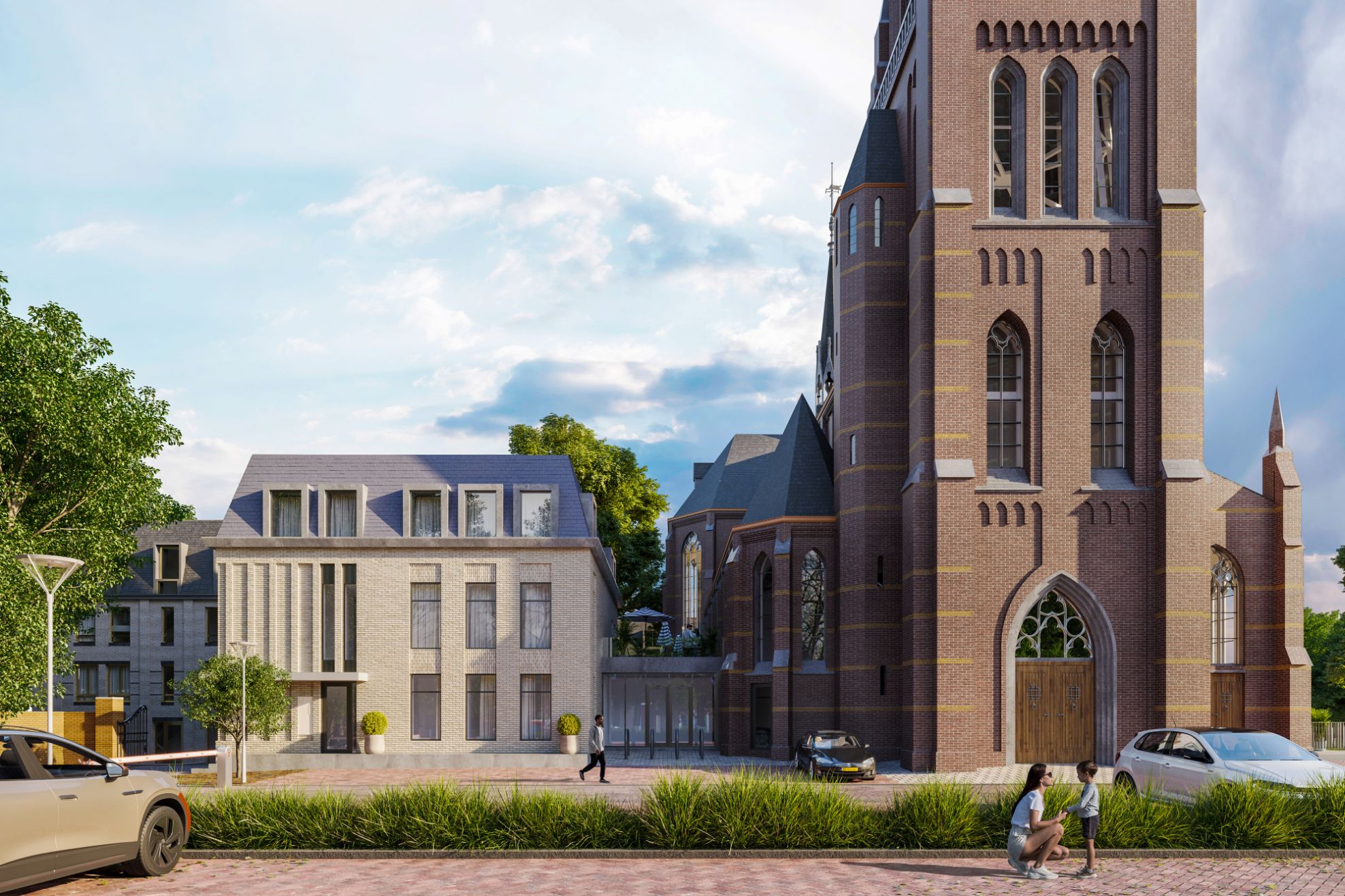 Ten zuiden van de kerk wordt ook een nieuw appartementengebouw gerealiseerd. Dit deel beschikt over 14 appartementen met allen een eigen buitenterras of loggia. De omvang van deze appartementen is vanaf ca. 69 m2 tot ca. 90 m2. Ook voor deze appartementen zijn parkeerplaatsen gereserveerd.