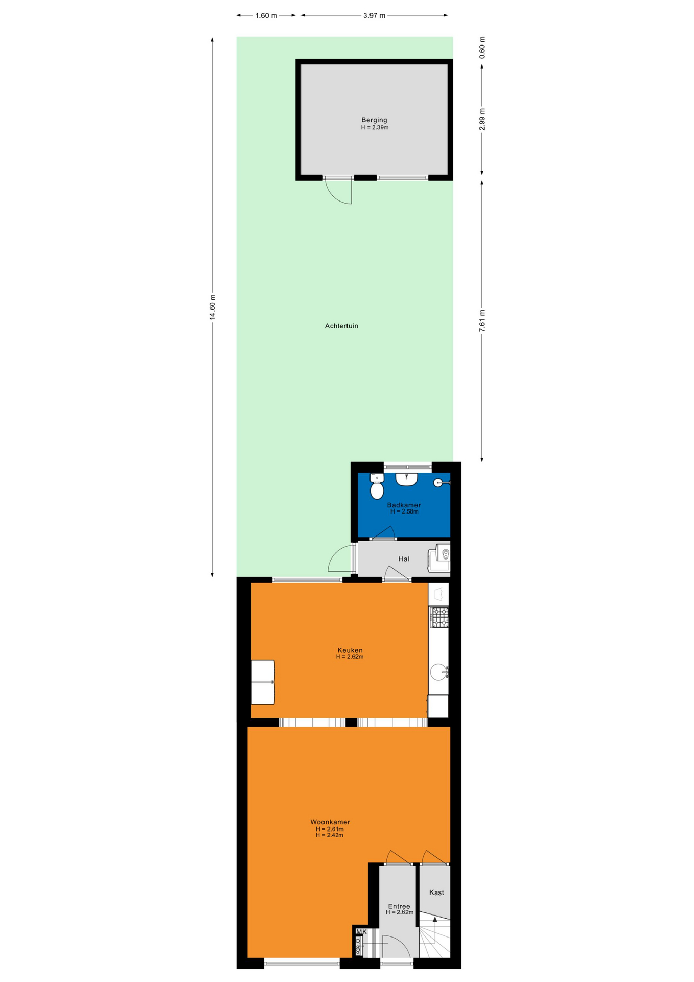 - Tuin op het oosten met praktische berging;