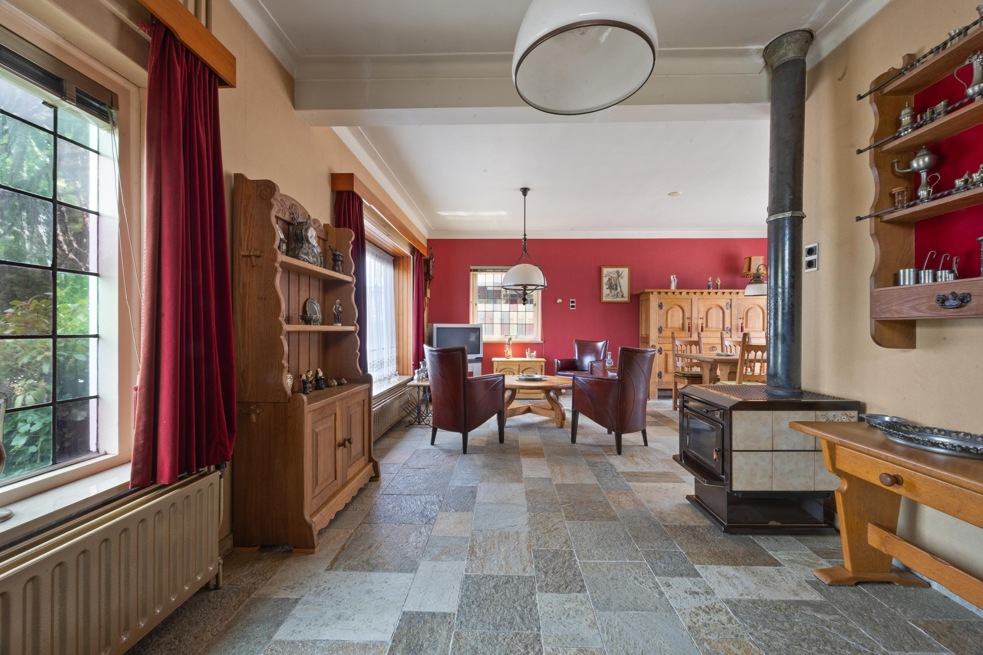 - Sfeervolle woonkamer met houtkachel;