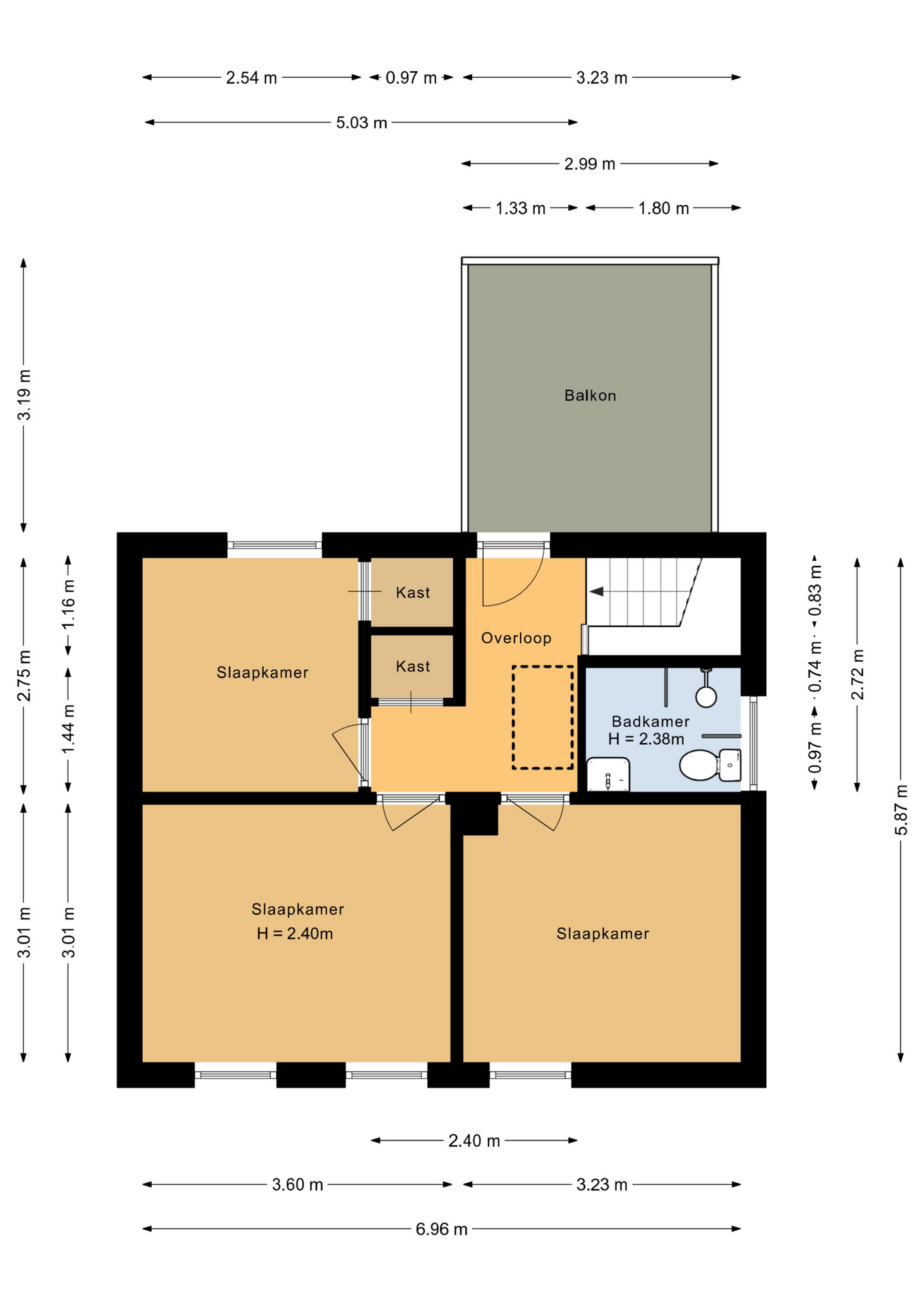 - Drie slaapkamers en praktische zolder;
