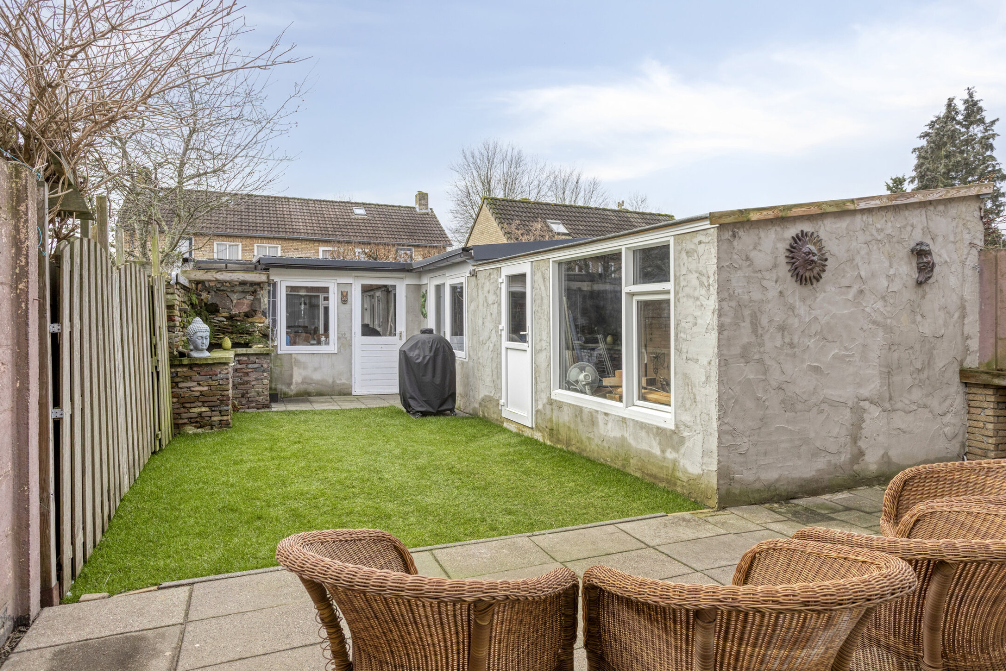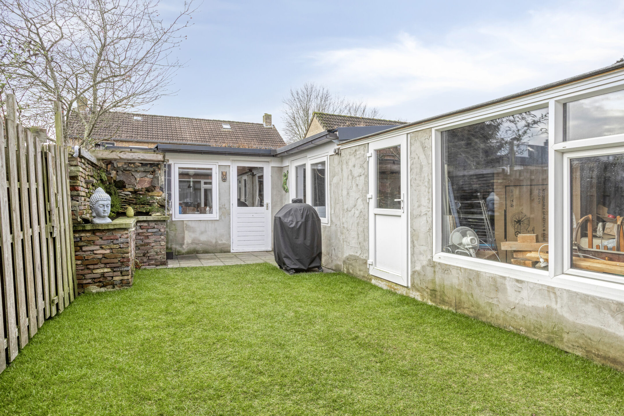 Buiten wacht een zonnige tuin op het zuiden waar je vanaf het vroege voorjaar tot laat in de nazomer geniet van lange dagen. Achterin vind je een schuur én een garage, ideaal voor fietsen, gereedschap of hobby’s. En voor de kinderen? Genoeg ruimte voor een zandbak of glijbaantje, maar op loopafstand vind je ook een speelveldje.