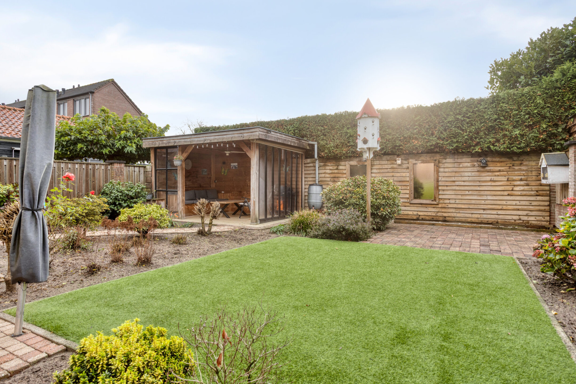 De tuin heeft veel te bieden, het hele jaar door! Neem plaats in de serre, die af te sluiten is met een glazen schuifwand, zodat je ook tijdens de koude dagen van de tuin kunt genieten. En in de zomer zit je hier ook meer dan goed: dankzij de ligging op het zuidwesten pak je hier de laatste zonnestralen van de dag mee. Daarnaast beschik je nog over een extra overkapping. Ideaal, toch?