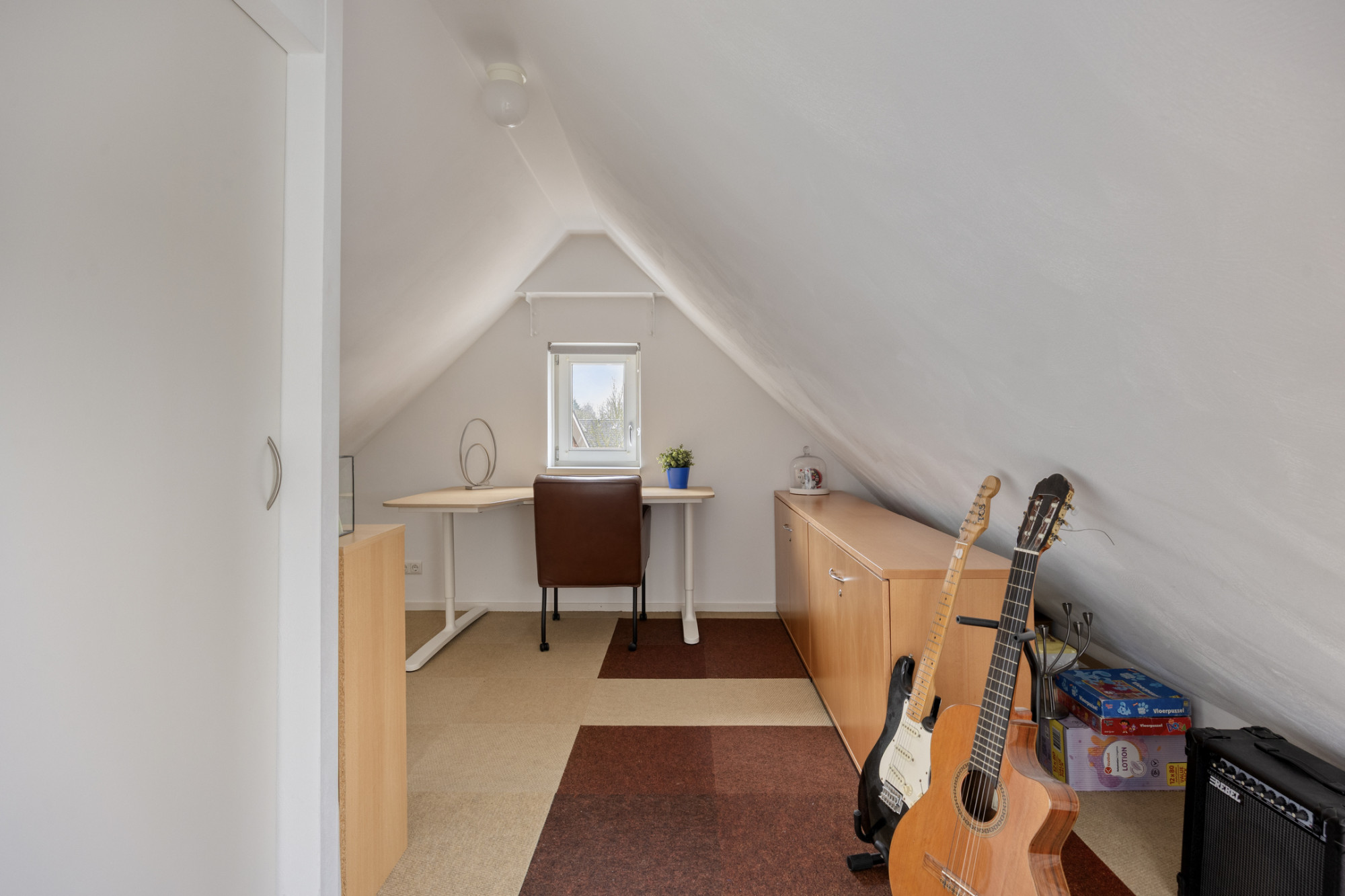Extra praktisch is de zolder, waar al nagedacht is over de toekomst met een extra groep en afvoer voor een droger in een aparte wasruimte. De ruime, fraai aangelegde tuin ligt op het zonnige zuidwesten en nodigt uit tot lange zomeravonden, borrels met vrienden en spelende kinderen. De garage is ideaal voor (motor)fietsen en (tuin)gereedschap en er is zelfs de mogelijkheid voor een eigen oprit, zodat je zelfs je auto in de garage of op eigen terrein kunt parkeren.