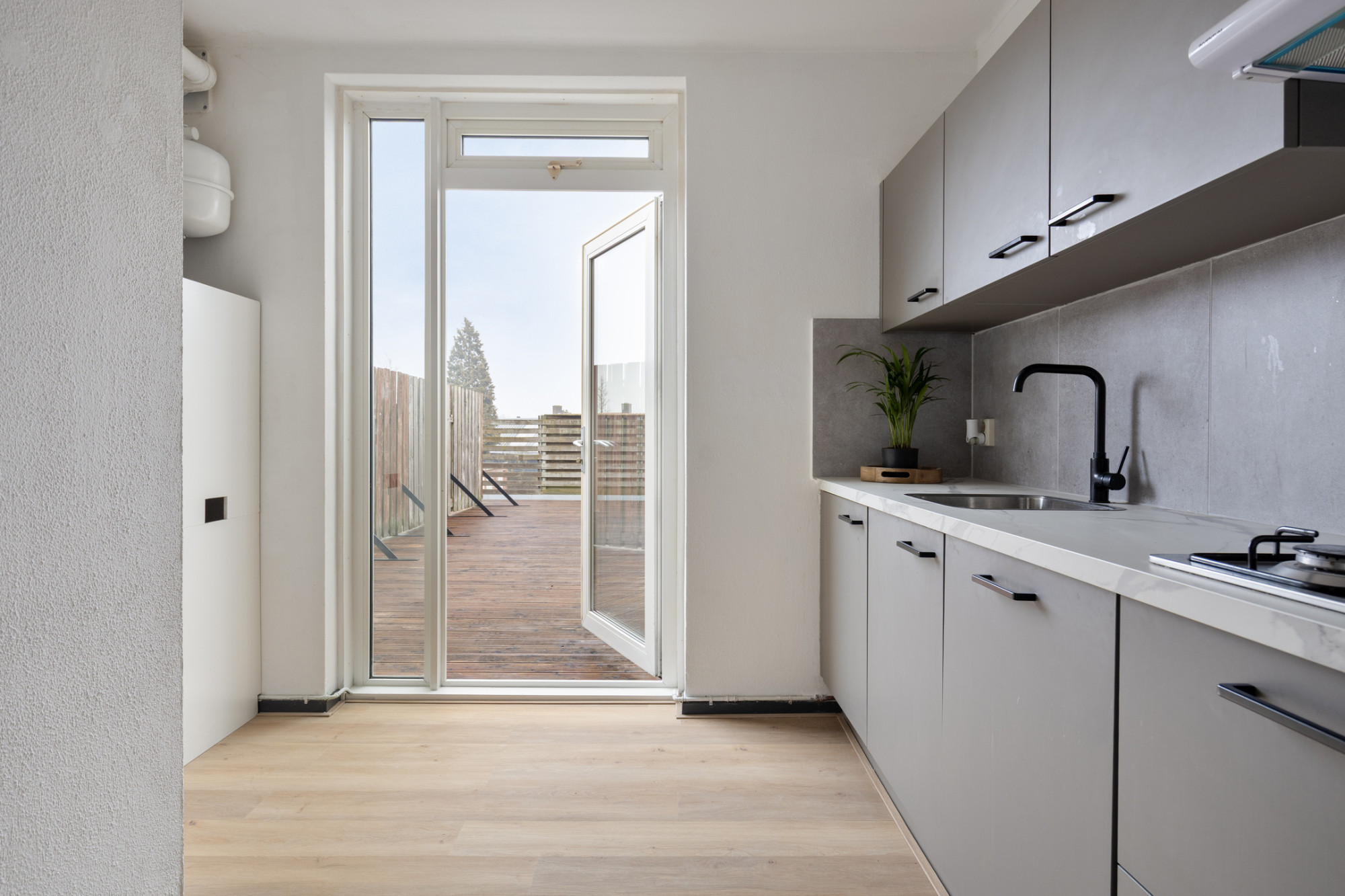 De keuken is volledig gerenoveerd en van alles voorzien wat je nodig hebt. Strak, fris en praktisch: hier kook je met plezier en zet je moeiteloos de lekkerste gerechten op tafel. Aansluitend stap je zo het dakterras op, dat er keurig bij ligt. Richt het in met een loungeset of eettafel, schenk een koel drankje in en geniet volop van zonnige dagen en lange zomeravonden.