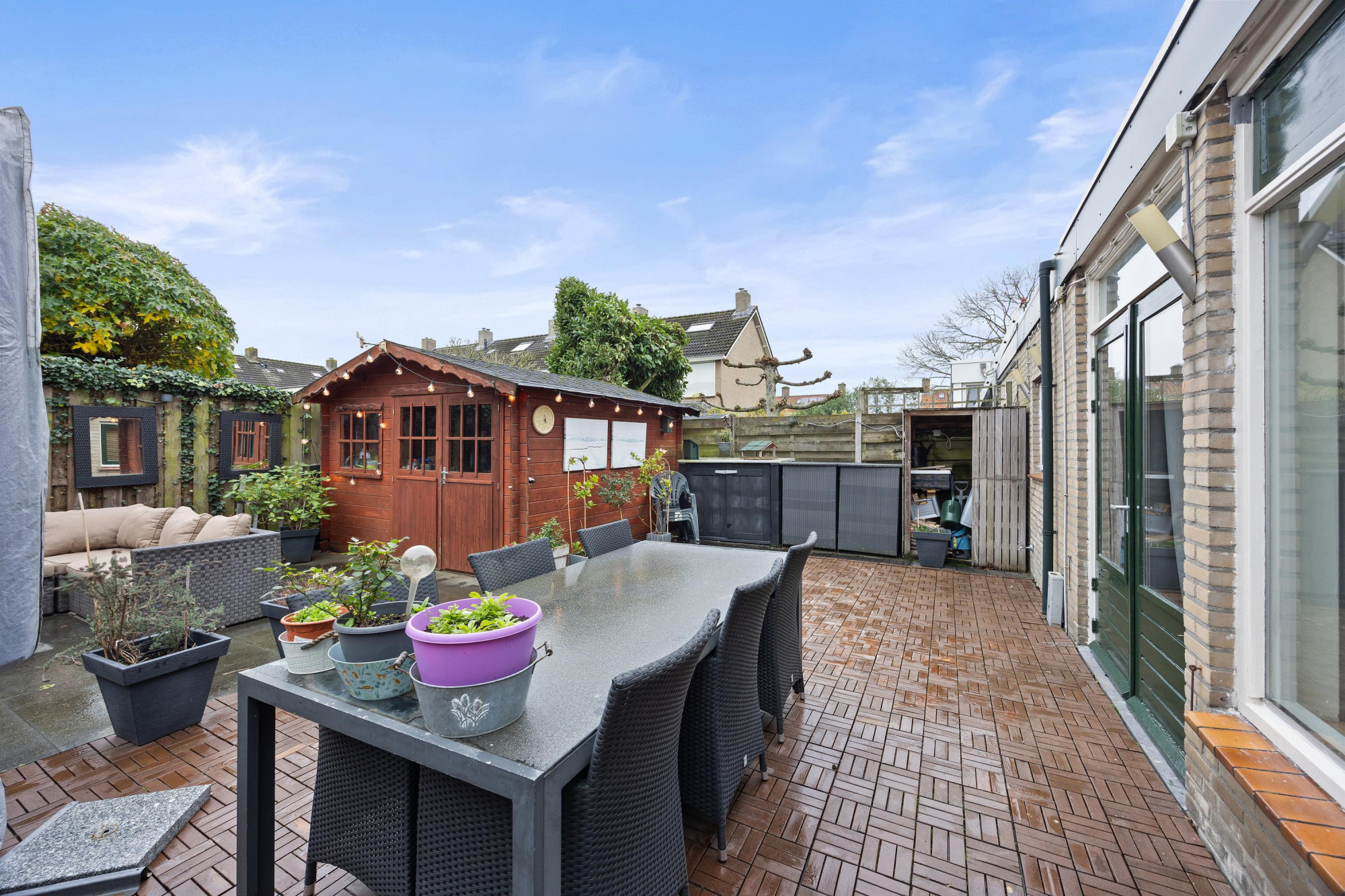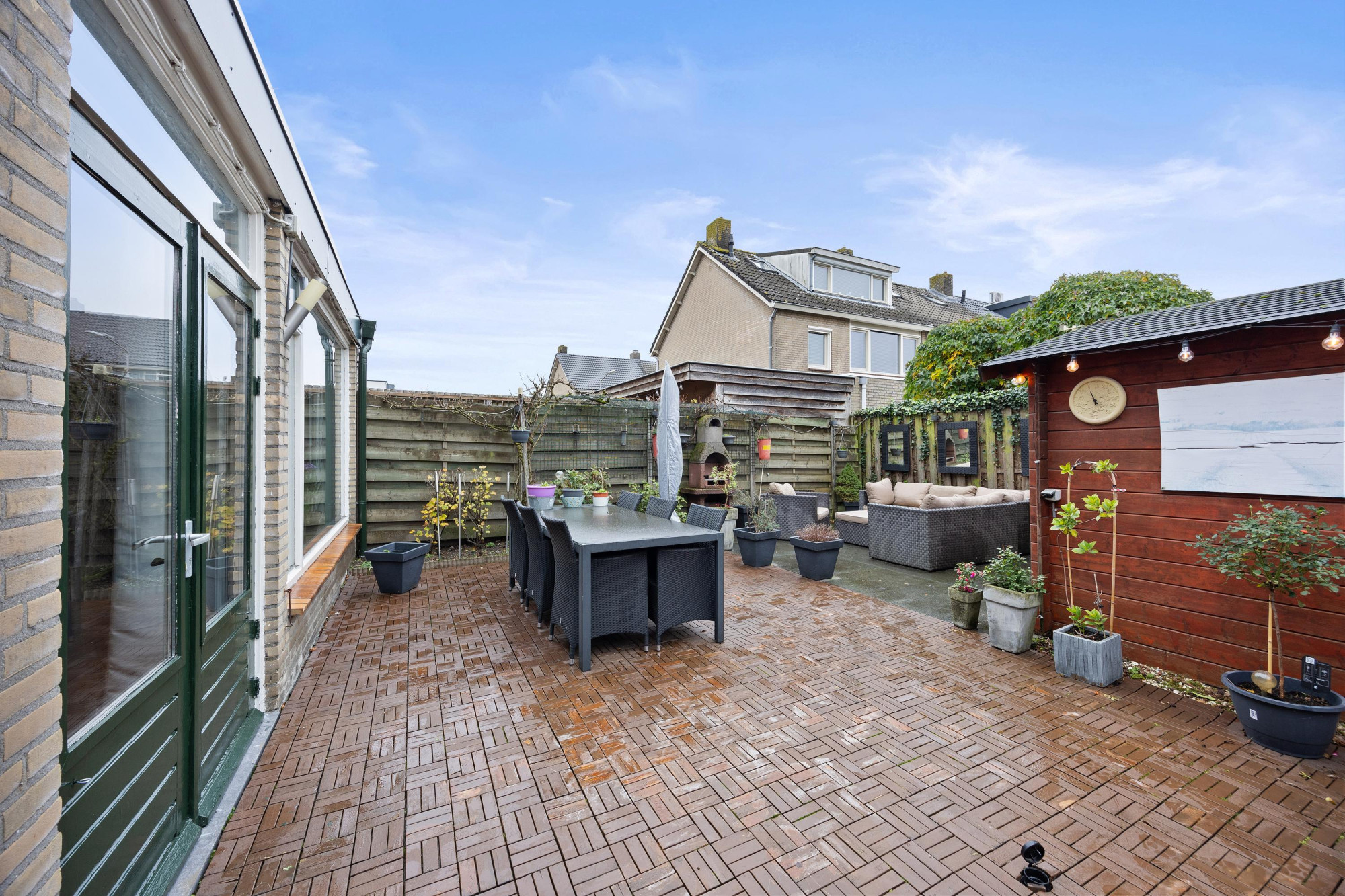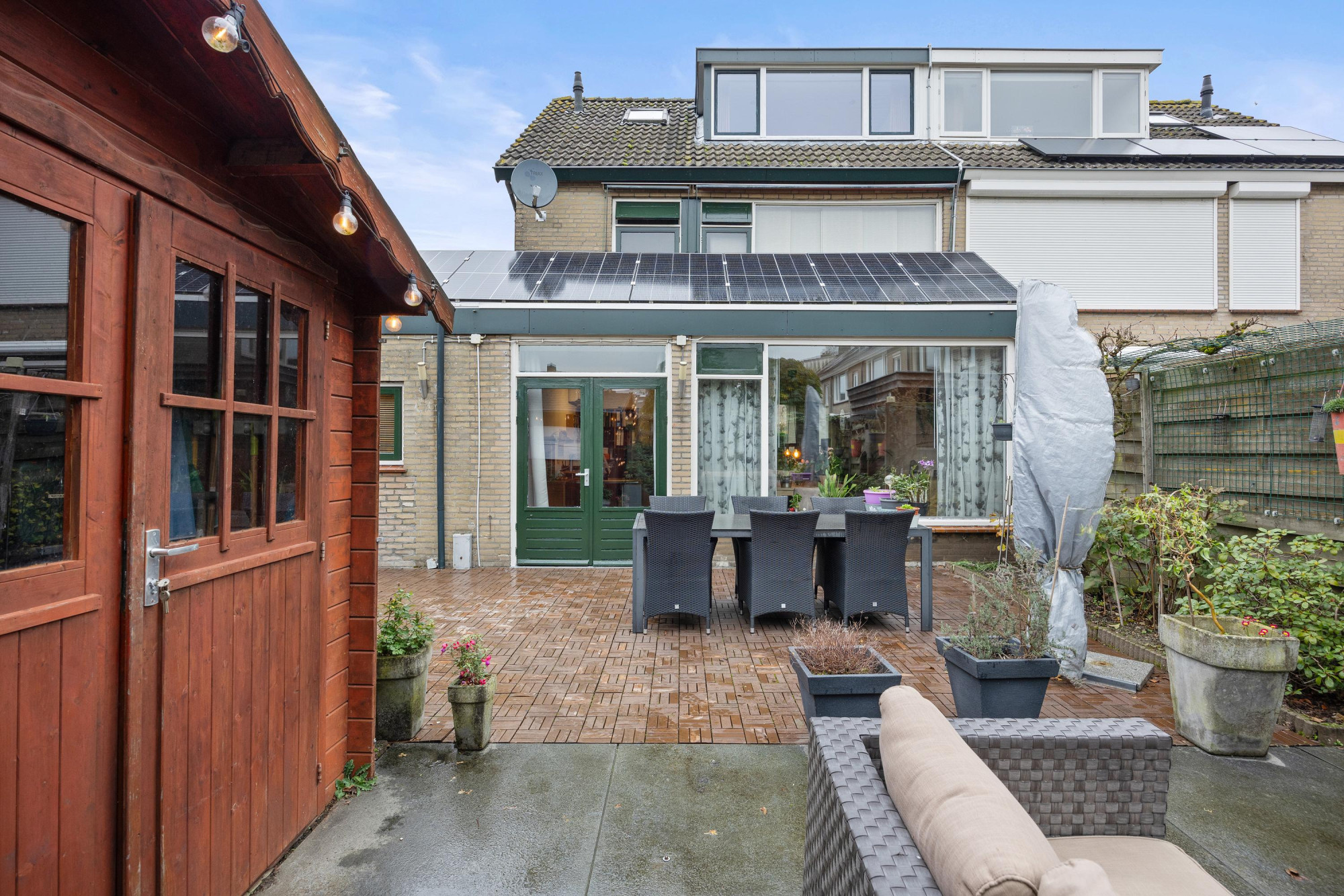 Achter de woning ligt een zonnige tuin op het zuiden, een ideale plek voor lange dagen buiten, van ontspannen ontbijten tot gezellige avonden. De tuin is overzichtelijk en praktisch ingedeeld, met voldoende ruimte om te genieten én te spelen. Daarnaast beschikt de woning over twee bergingen in huis en een extra berging in de tuin.