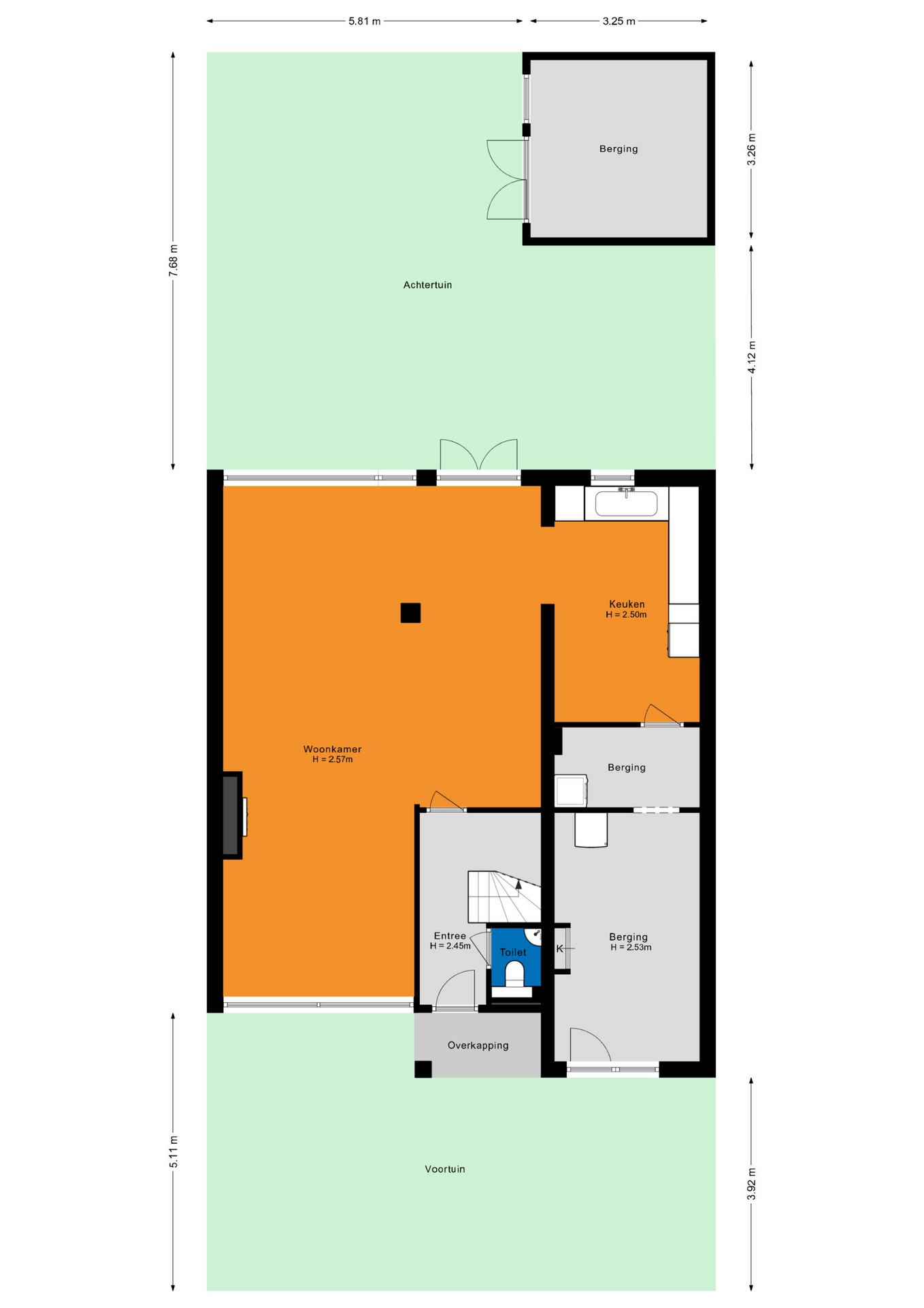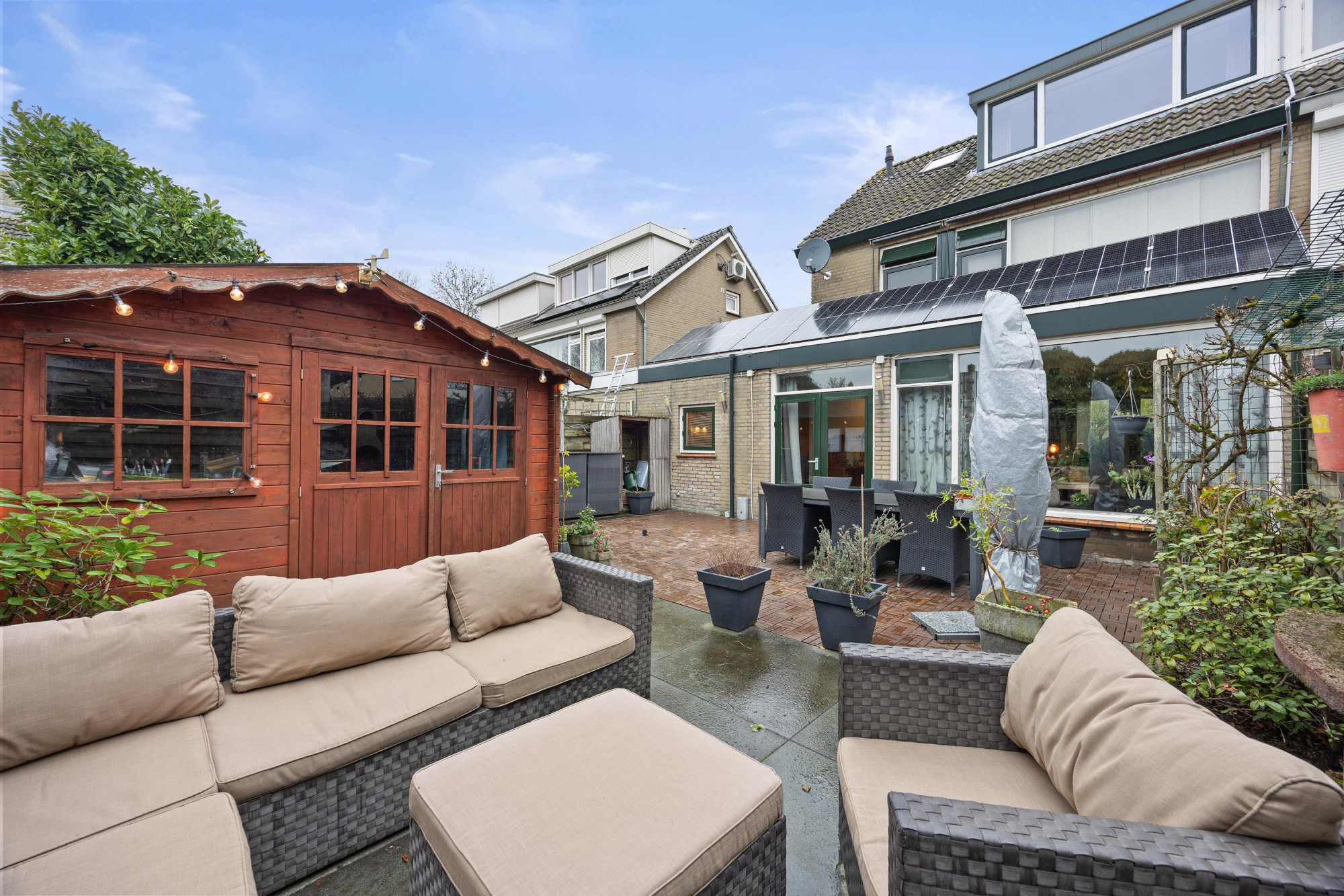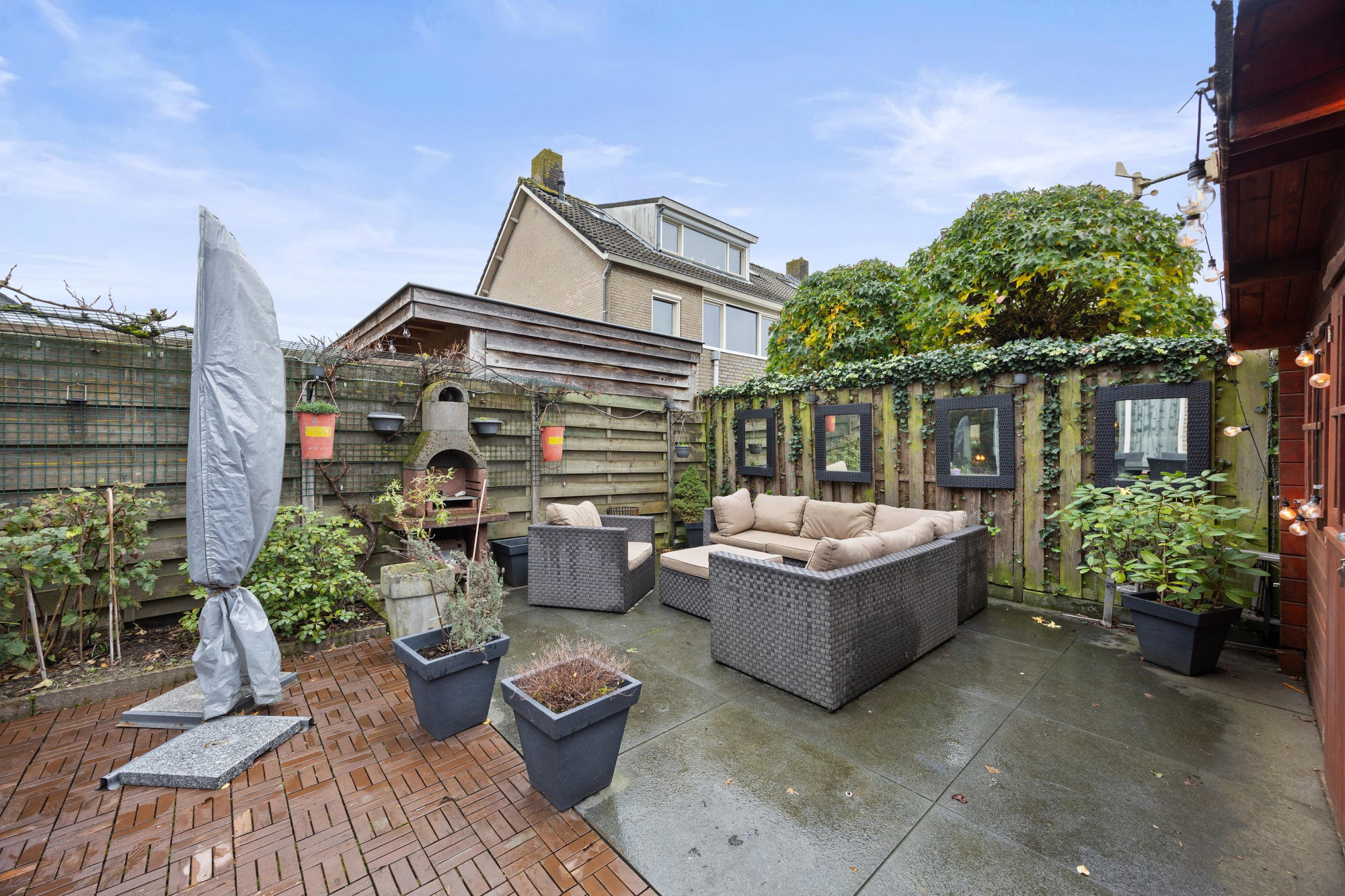 Achter de woning ligt een zonnige tuin op het zuiden, een ideale plek voor lange dagen buiten, van ontspannen ontbijten tot gezellige avonden. De tuin is overzichtelijk en praktisch ingedeeld, met voldoende ruimte om te genieten én te spelen. Daarnaast beschikt de woning over twee bergingen in huis en een extra berging in de tuin.