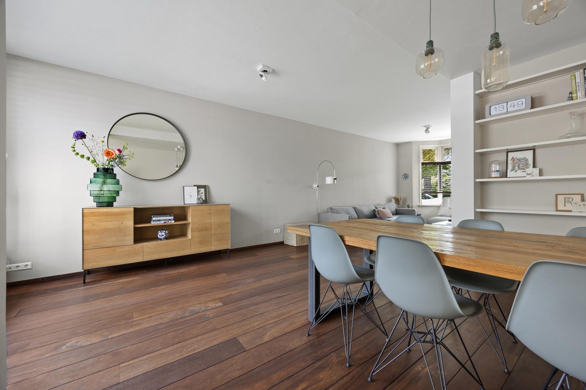 In één van de mooiste straten van Rosmalen vind je deze bijzondere twee-onder-een-kapwoning met de uitstraling en sfeer van een klassieke jaren ’30 woning, maar dan volledig aangepast aan het leven van nu. De fraaie gevel met erker geeft het huis een authentieke uitstraling en eenmaal binnen word je verrast door de ruimte. De woonkamer is royaal opgezet, met mooie lichtinval en voldoende plek voor een grote eettafel én een gezellige zithoek. De moderne keuken sluit hier naadloos op aan met dubbele deuren naar de tuin. Deze zorgen voor een fijne verbinding met buiten, waar je een heerlijke plek vindt om te ontspannen, te borrelen of simpelweg te genieten van de rust.