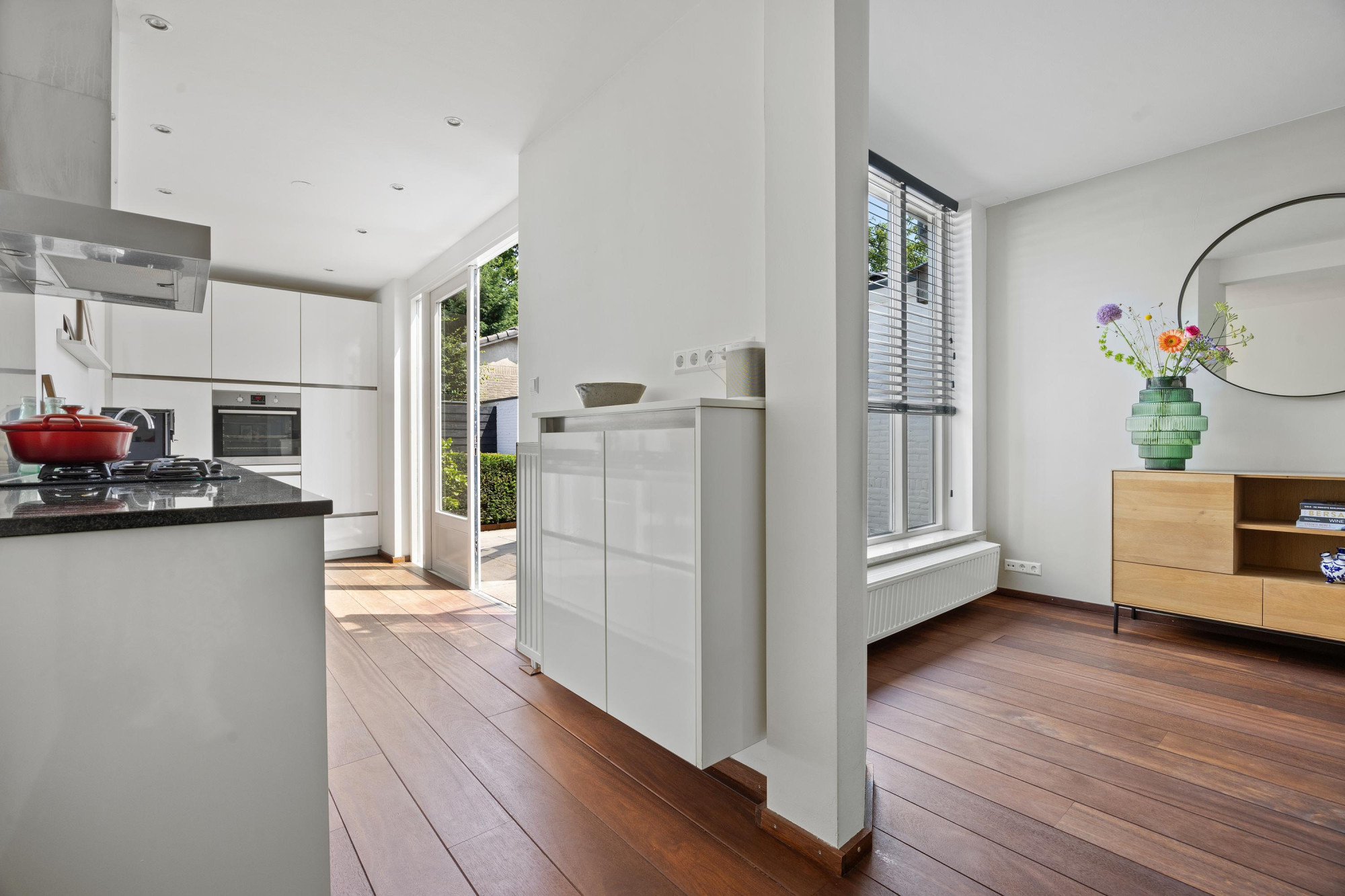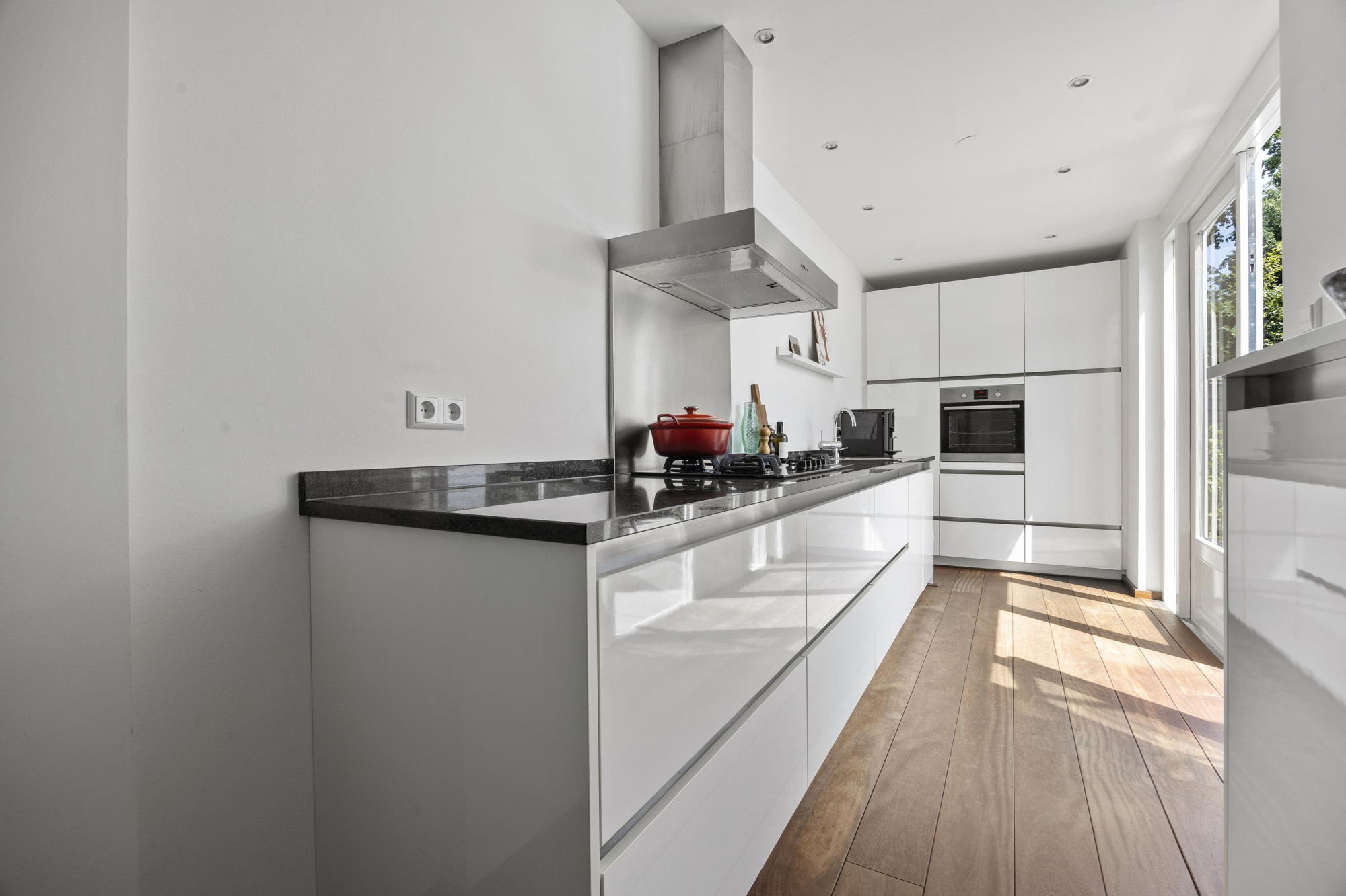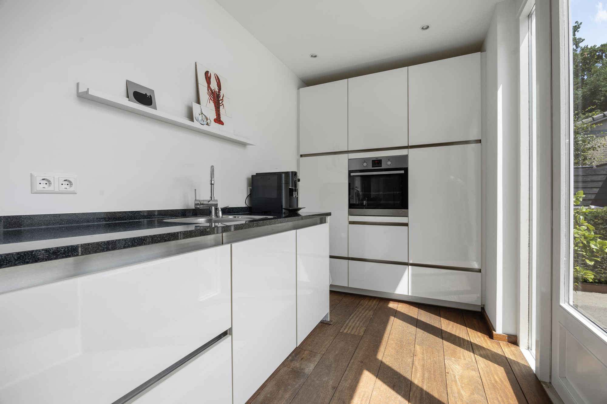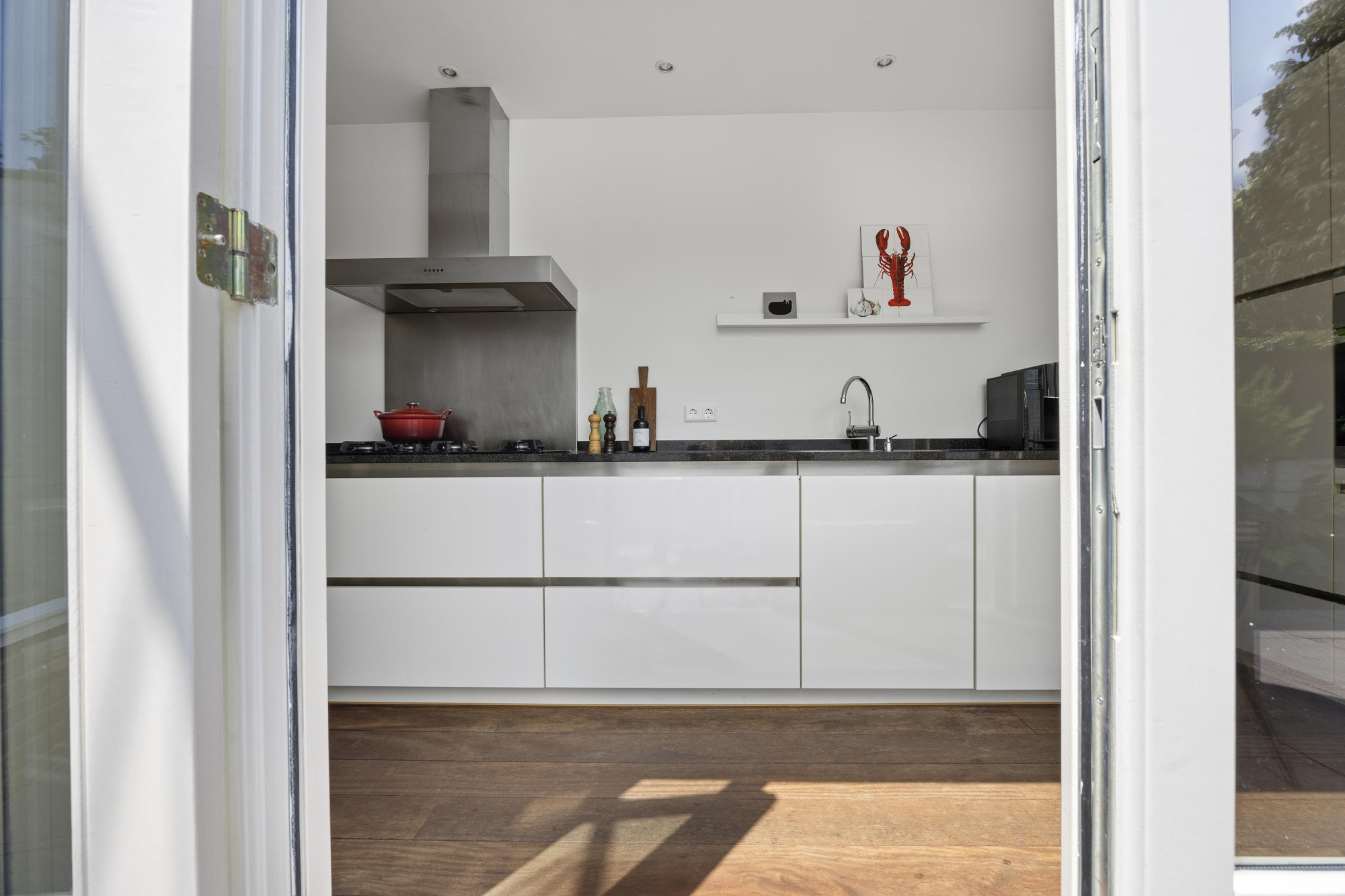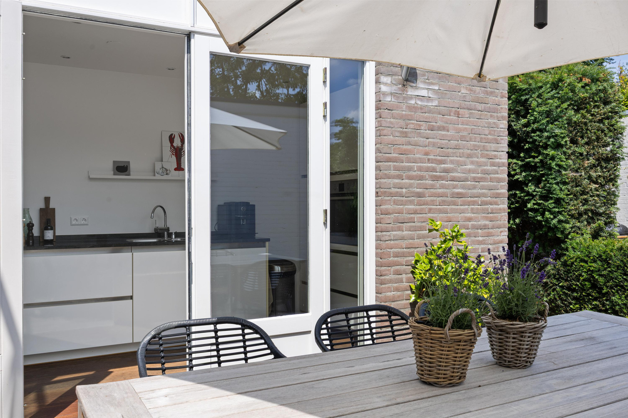 - Moderne keuken met dubbele deuren naar de tuin;
