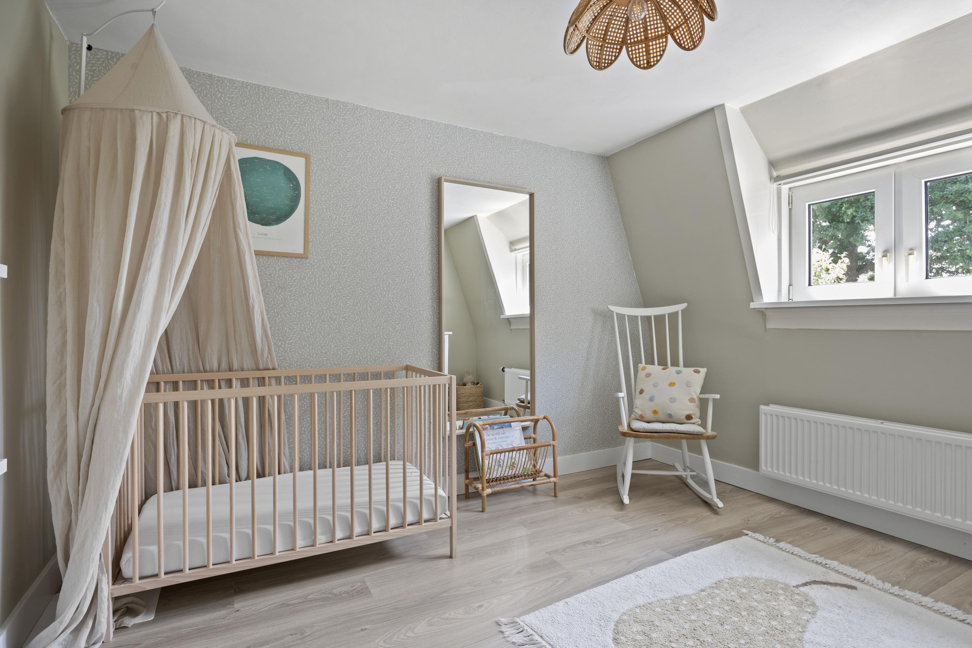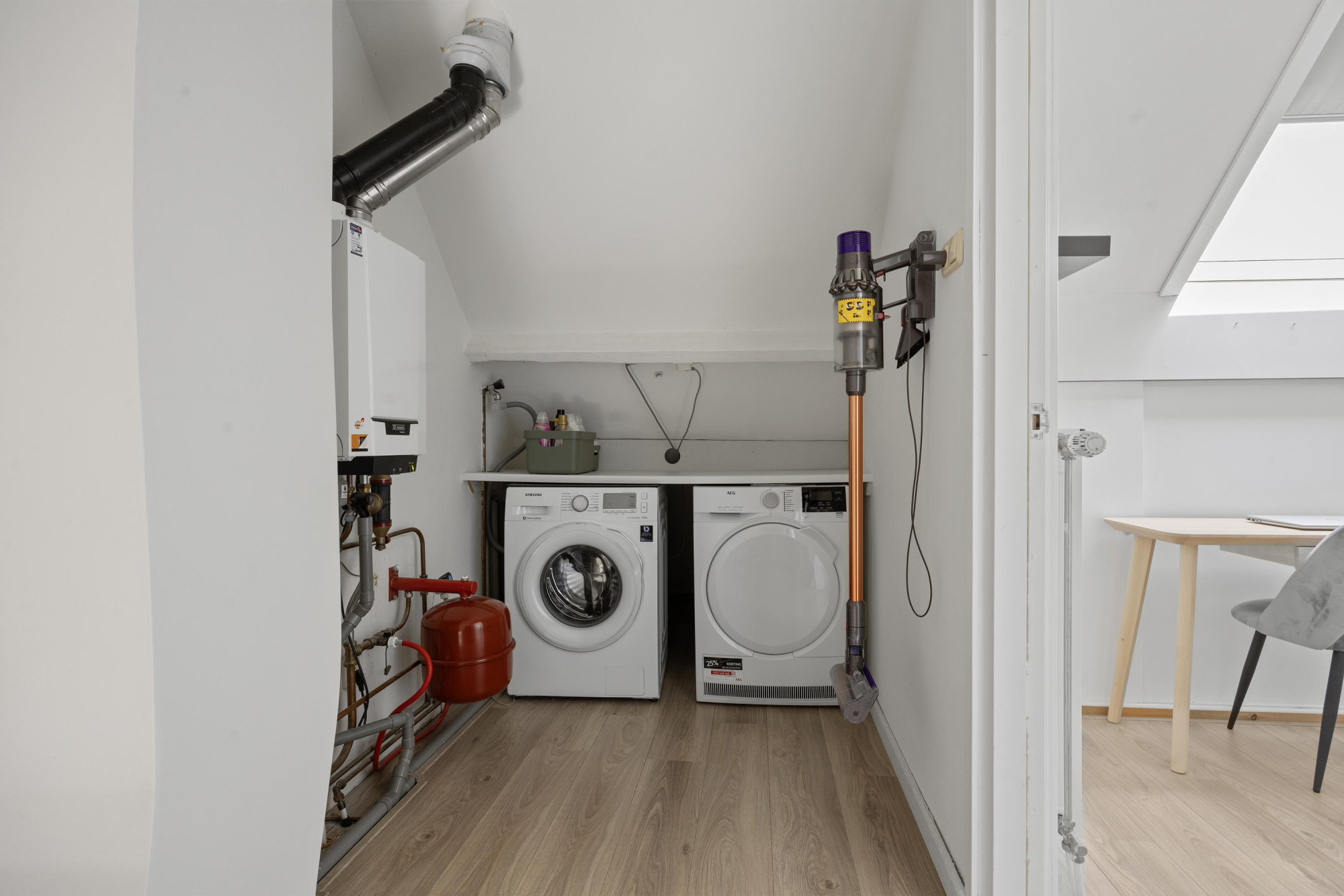- Drie slaapkamers, waarvan één op zolder;