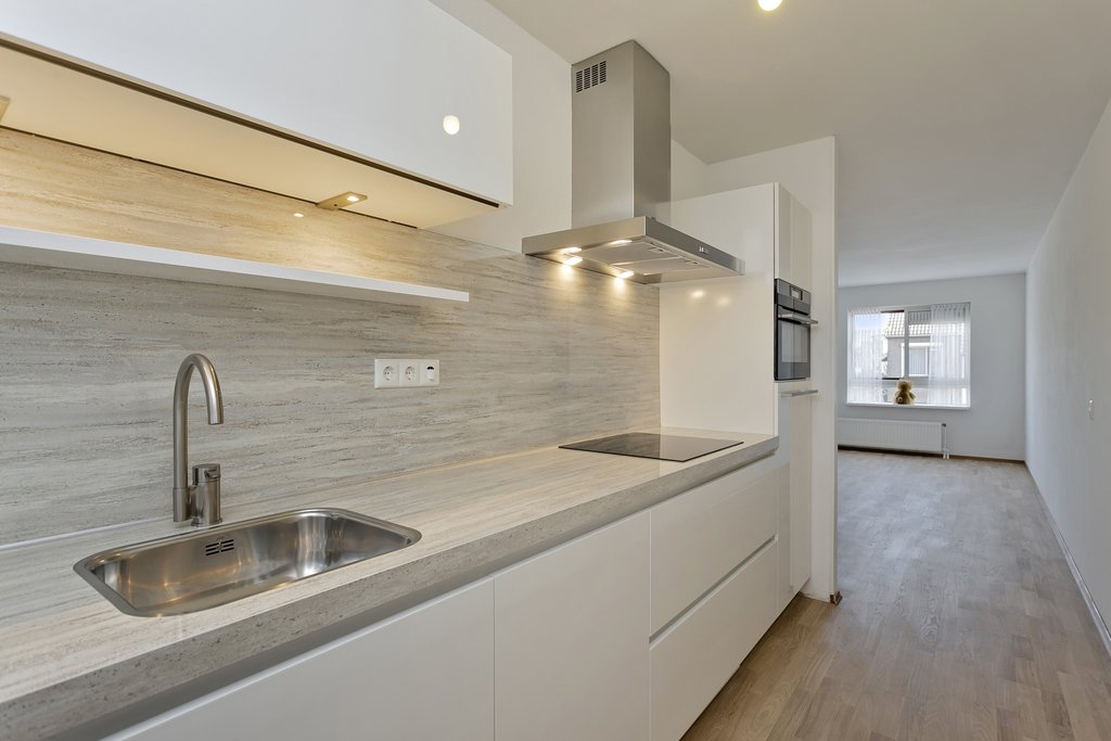 Wat een fijn, fris en ruim appartement. De eigenaar heeft de vloeren, de keuken en de badkamer vernieuwd dus het is nu een heerlijke plek om te wonen. De woonkamer heeft veel lichtinval en geeft toegang tot het prettige balkon van ca 4m². Vanuit de woonkamer is de half open keuken bereikbaar. Deze is goed afgeschermd maar niet afgesloten. Dus wel contact met de woonkamer tijdens het koken maar niemand die op je aanrechtblad kijkt. Zo kun je na het koken de boel de boel laten en even genieten van je gezelschap zonder dat je de rommel van het koken ziet. De woning heeft 2 slaapkamers waarvan de hoofdslaapkamer direct toegang heeft tot de moderne badkamer. De badkamer is tevens toegankelijk vanaf de hal. Ook beschikt deze woning over een inpandige berging waarin de C.V. ketel gesitueerd is en je je wasapparatuur kwijt kunt.