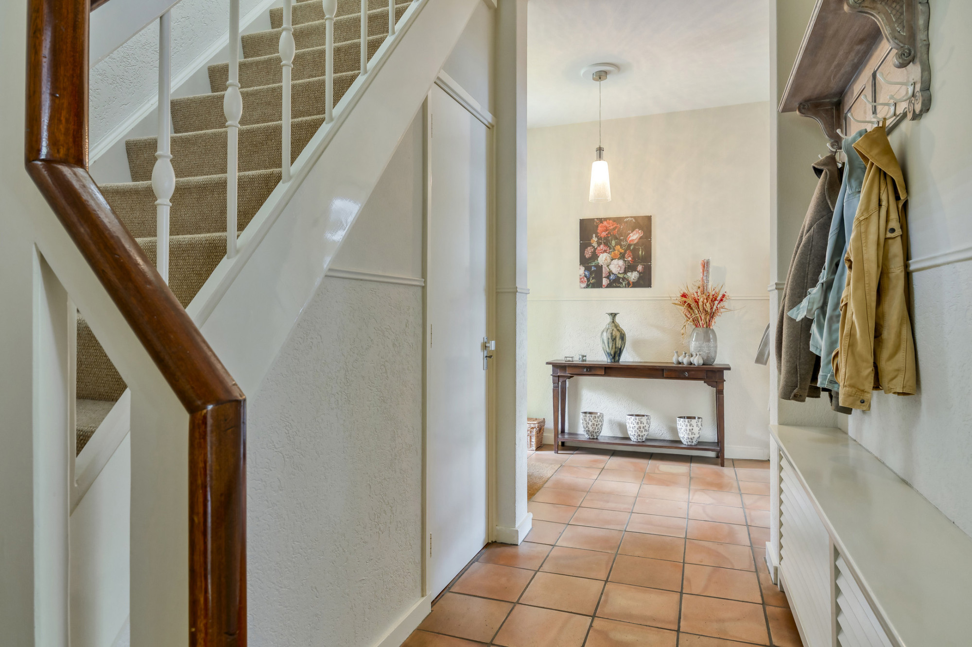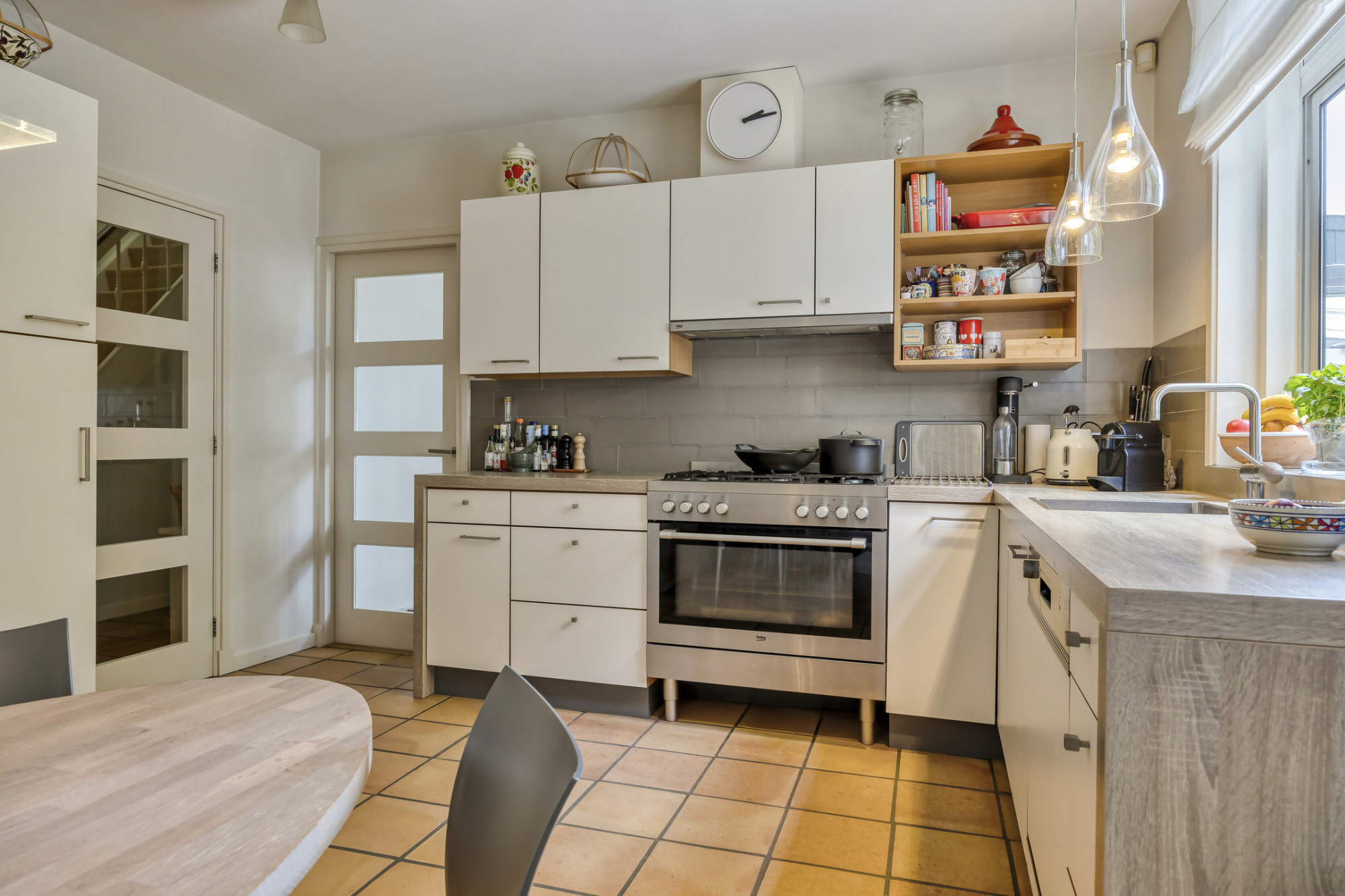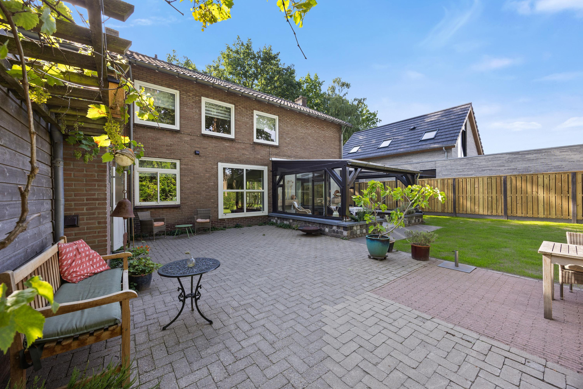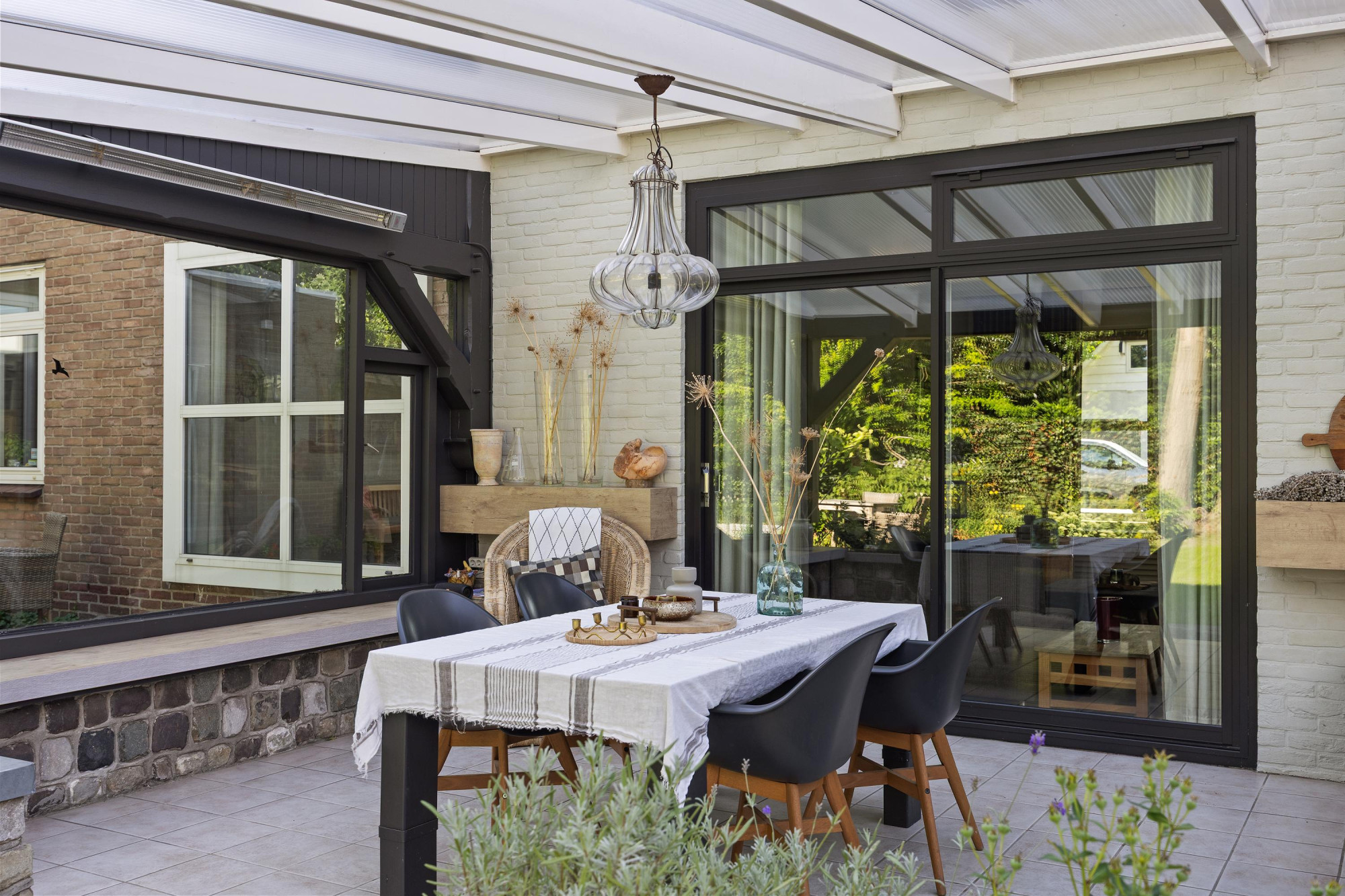 Buiten geniet je van volop privacy en vrijheid. De tuin is ruim, zonnig en grenst aan het groen. Een fijne plek voor een gezellige barbecue met vrienden en familie tijdens een lange zomeravond, maar ook een heerlijke plek voor de kinderen om op te groeien en buiten te spelen. Is het wat minder lekker weer? Dan kun je altijd nog terecht onder de ruime overkapping.