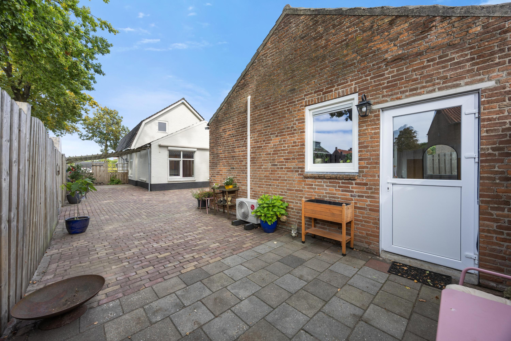 - Bijkeuken met aansluitingen voor de wasapparatuur en toegang tot de tuin;