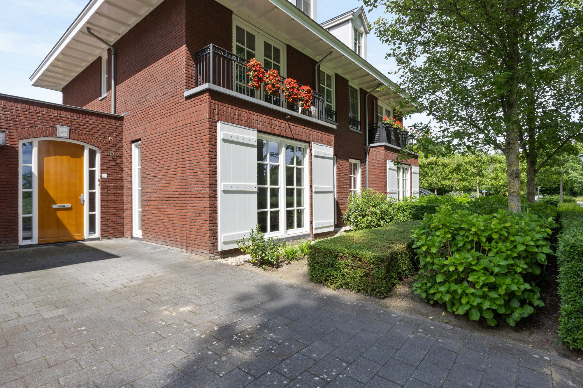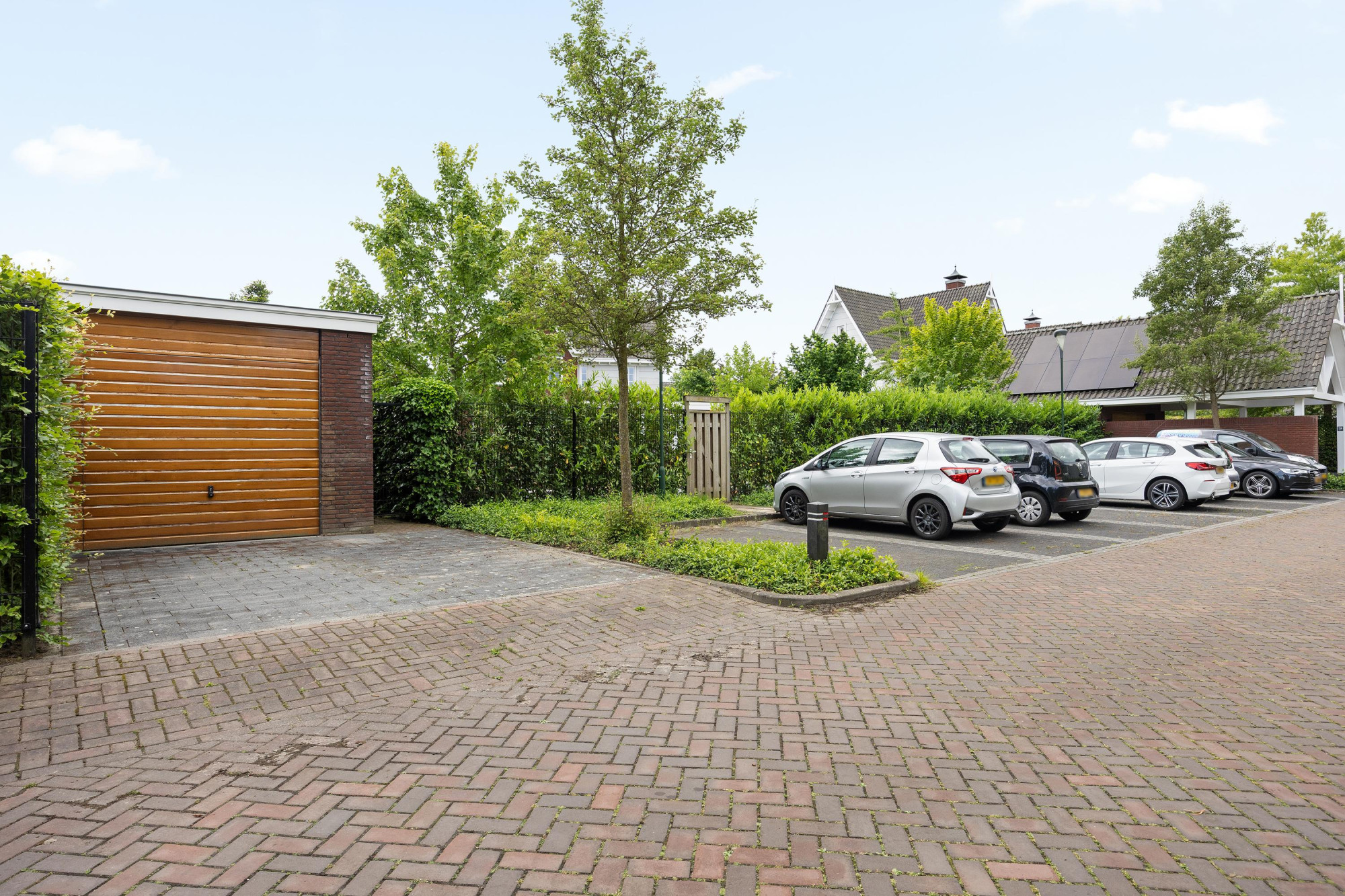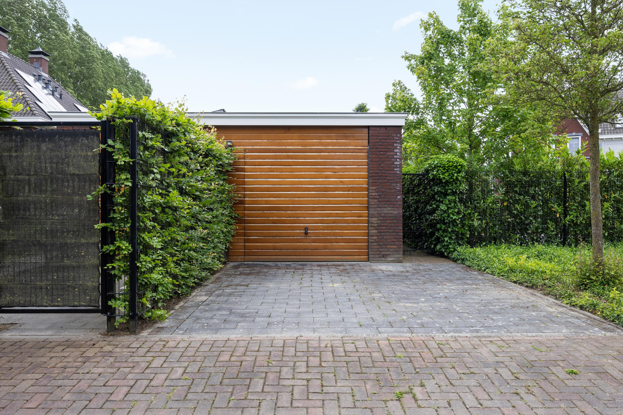 - Twee opritten, een aan de voorzijde en een aan de achterzijde bij de garage;