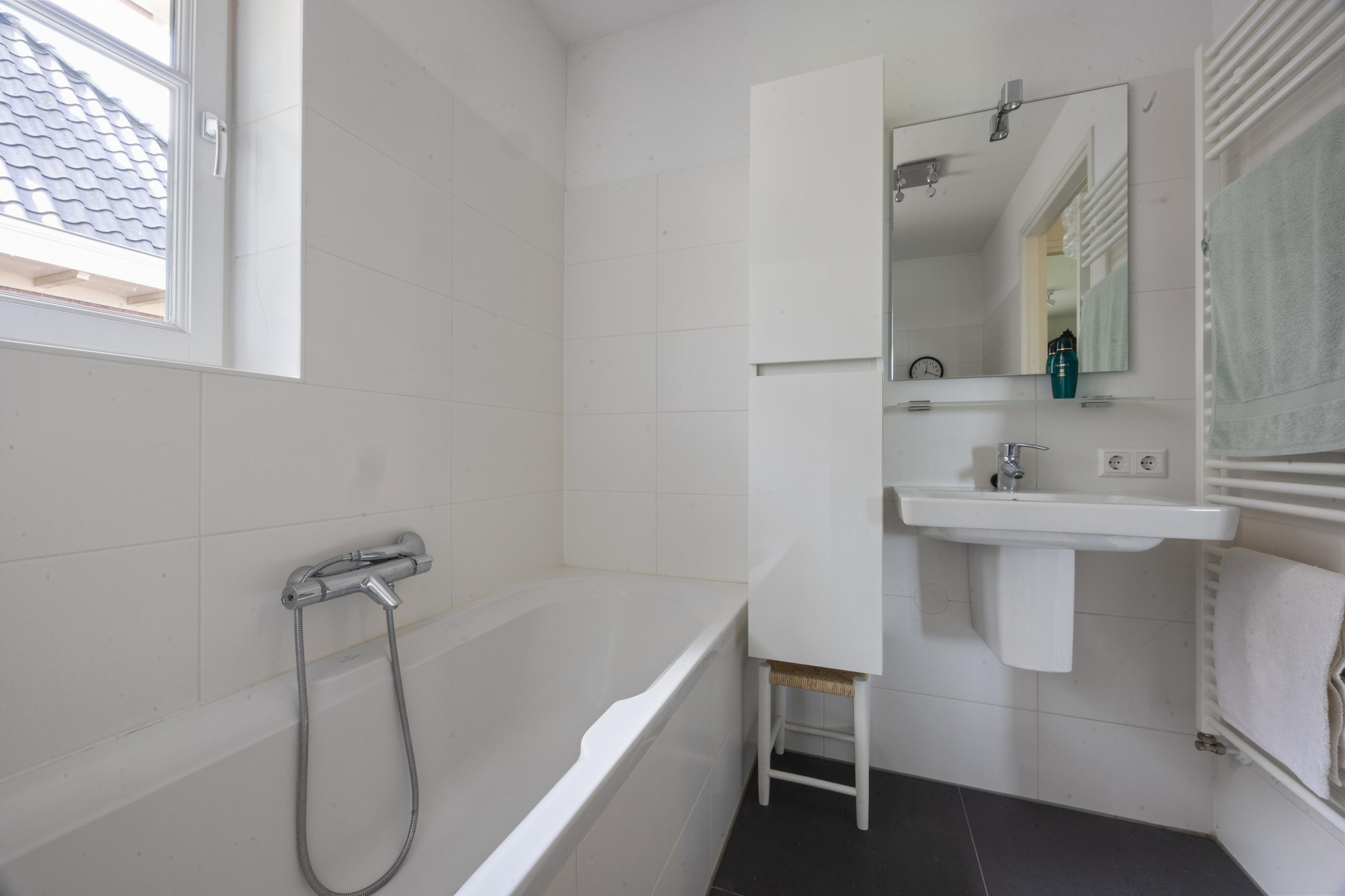 Buiten is het minstens zo fijn. De tuin biedt volop privacy en ligt op het westen, dus tot in de late uurtjes genieten van de zon met een glas wijn of een goed boek is hier de standaard. De garage met elektrische deur biedt plek voor de auto, fietsen of (tuin)gereedschap. En dan nog negen zonnepanelen, energielabel A én airconditioning. Hier woon je duurzaam en comfortabel.