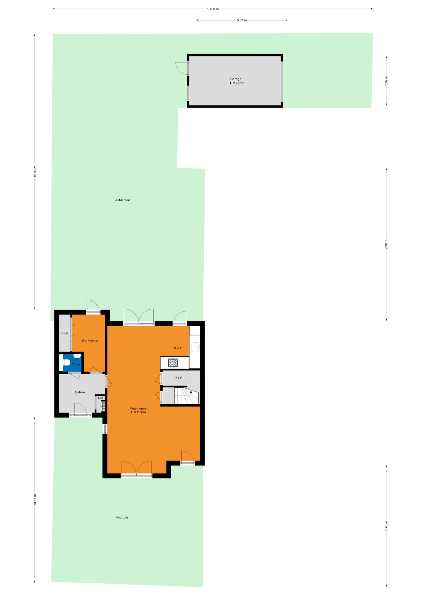 - Garage met elektrische garagedeur;