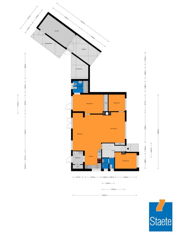 - Bijkeuken met aansluitingen voor de wasapparatuur;