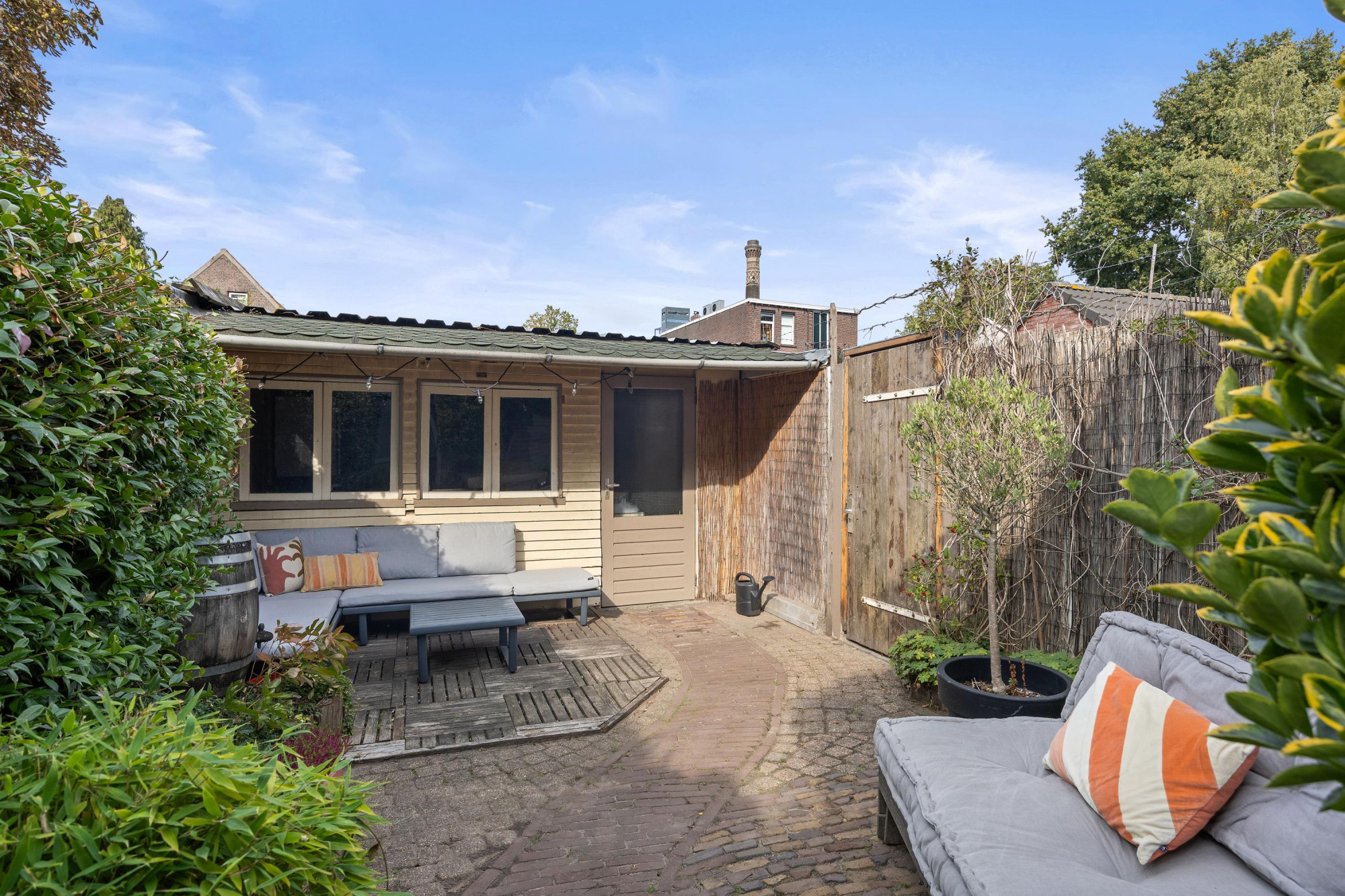 - Achtertuin met praktische berging;