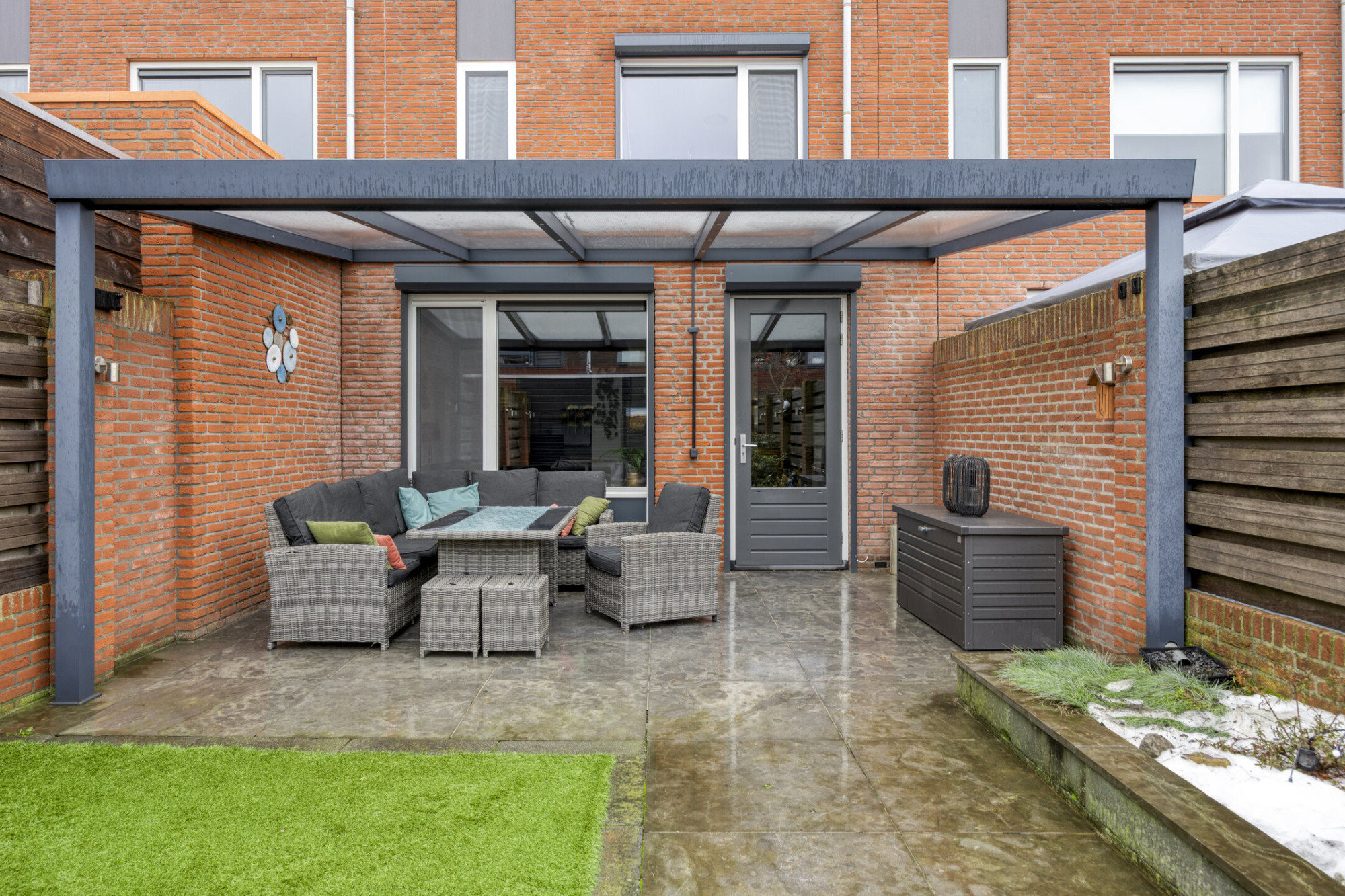 In de tuin op het zuiden is het heerlijk ontspannen. Neem plaats onder de overkapping en koel af in de schaduw. Of neem plaats in de tuin en geniet van het zonnetje. En dankzij de berging achter in de tuin berg jij jouw fietsen veilig op. En je auto? Die parkeer je gewoon op je eigen parkeerplaats. Ideaal, toch?