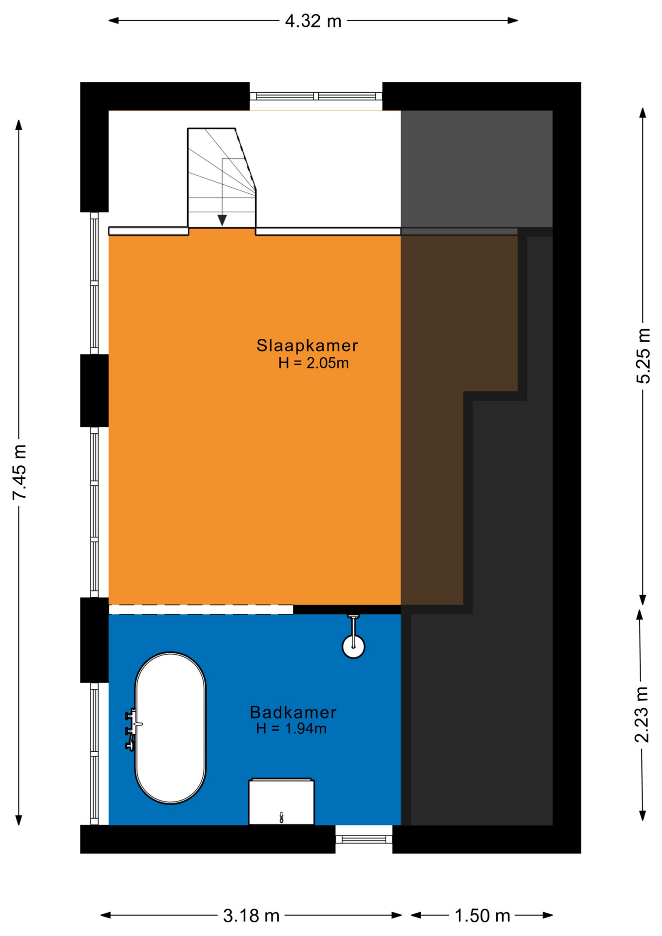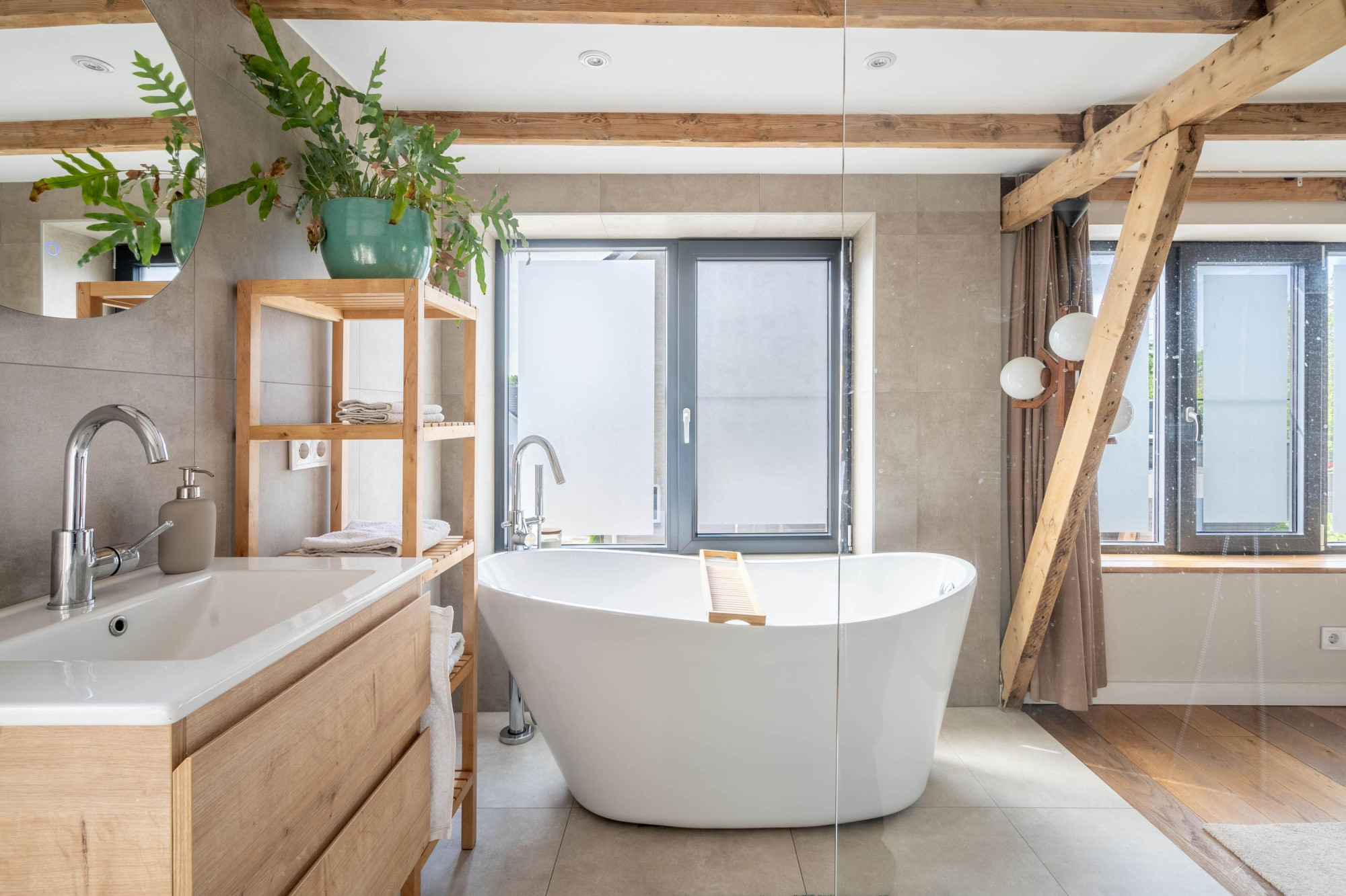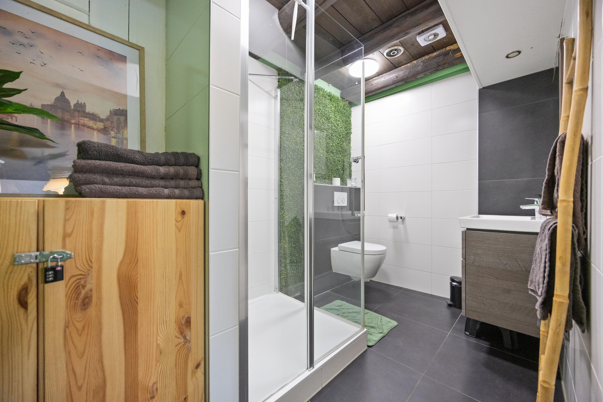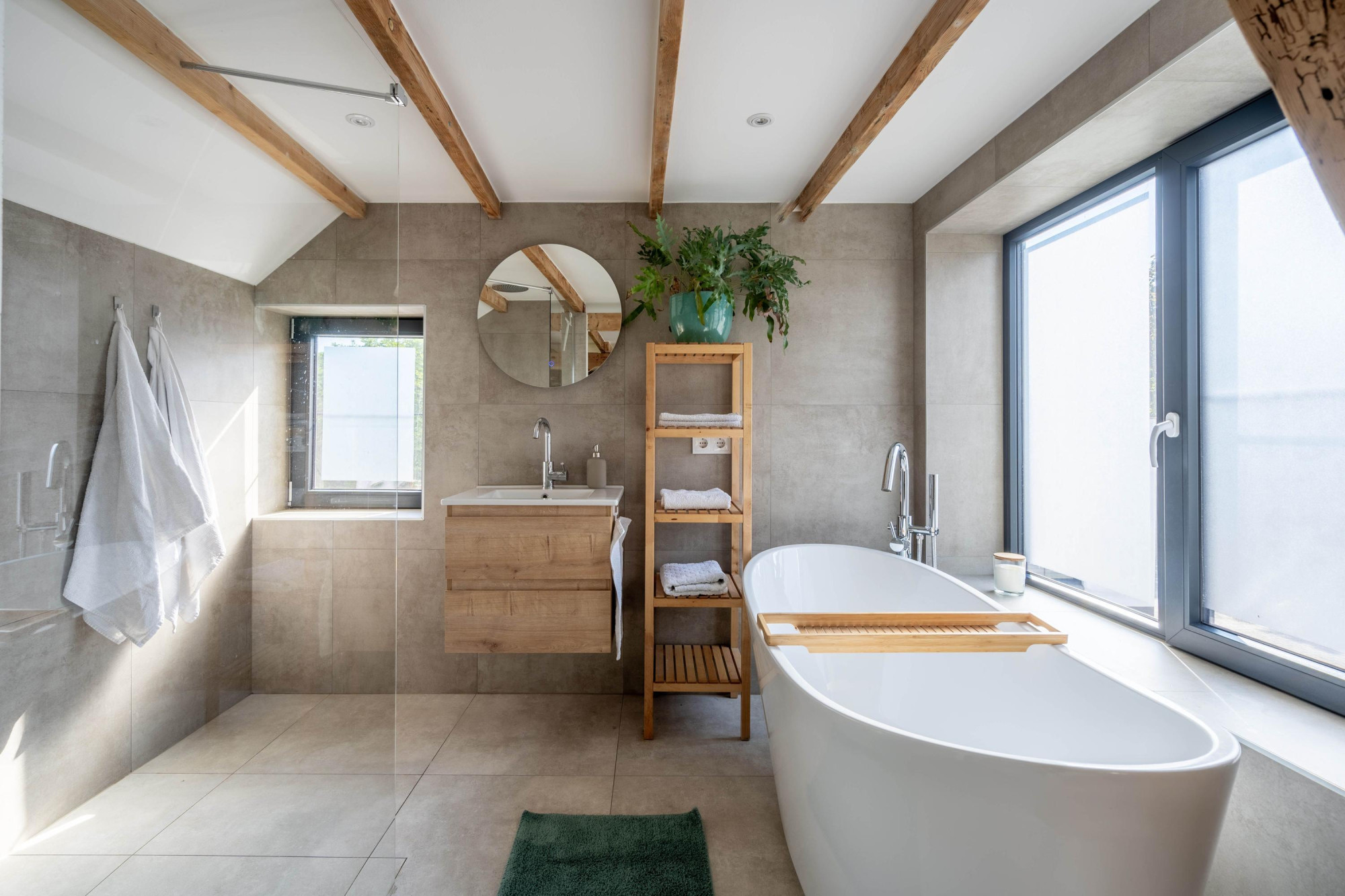 - De badkamer is voorzien van een inloopdouche én een ligbad;
