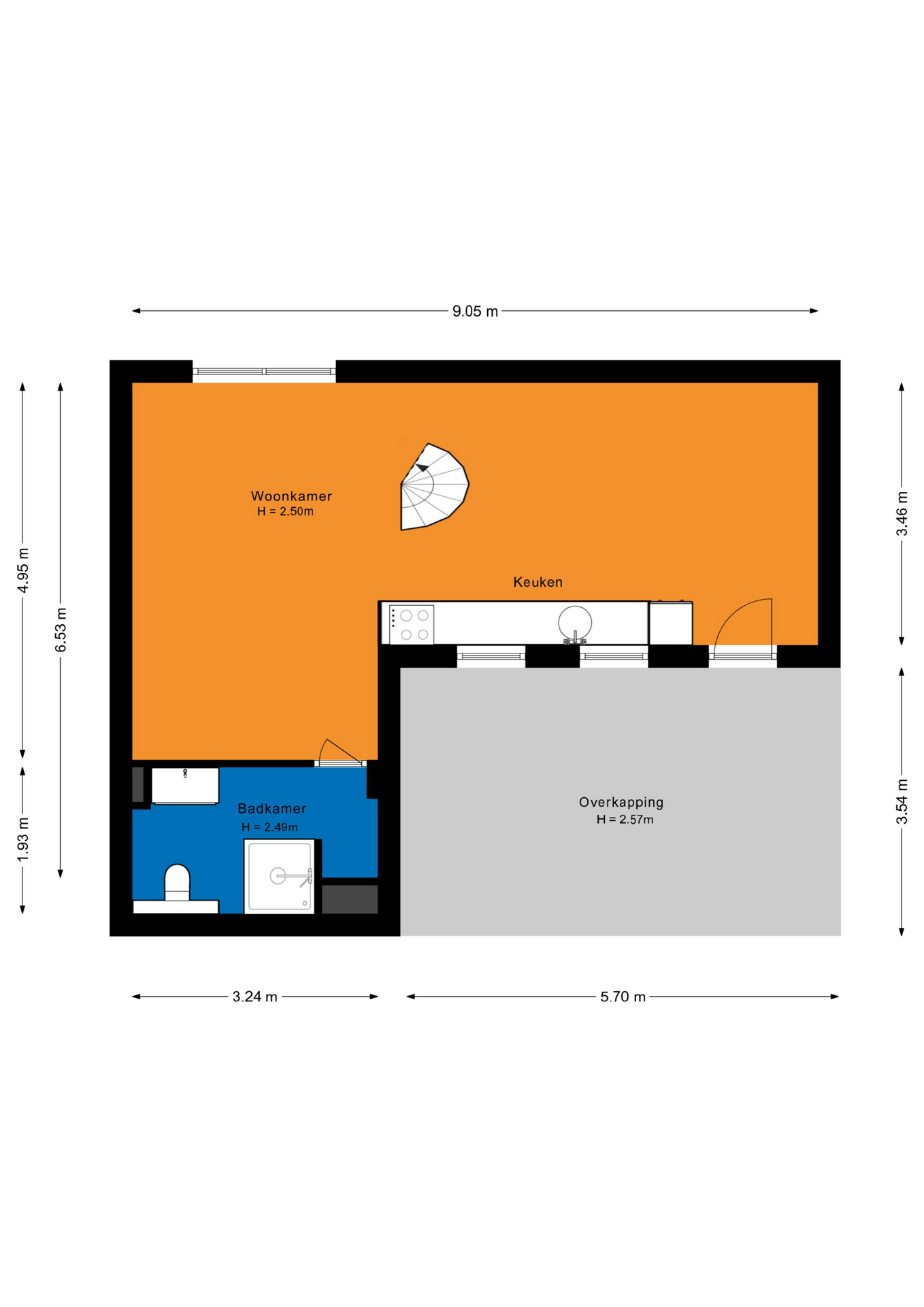 - Badkamer op de begane grond;