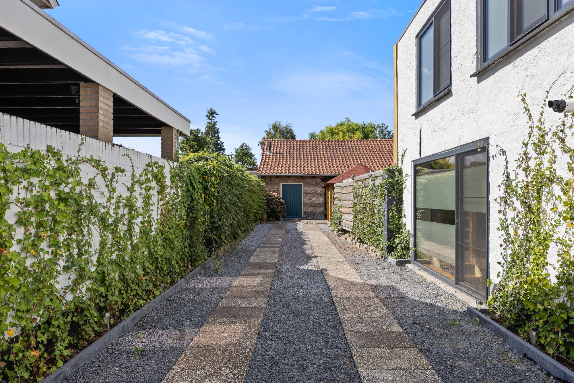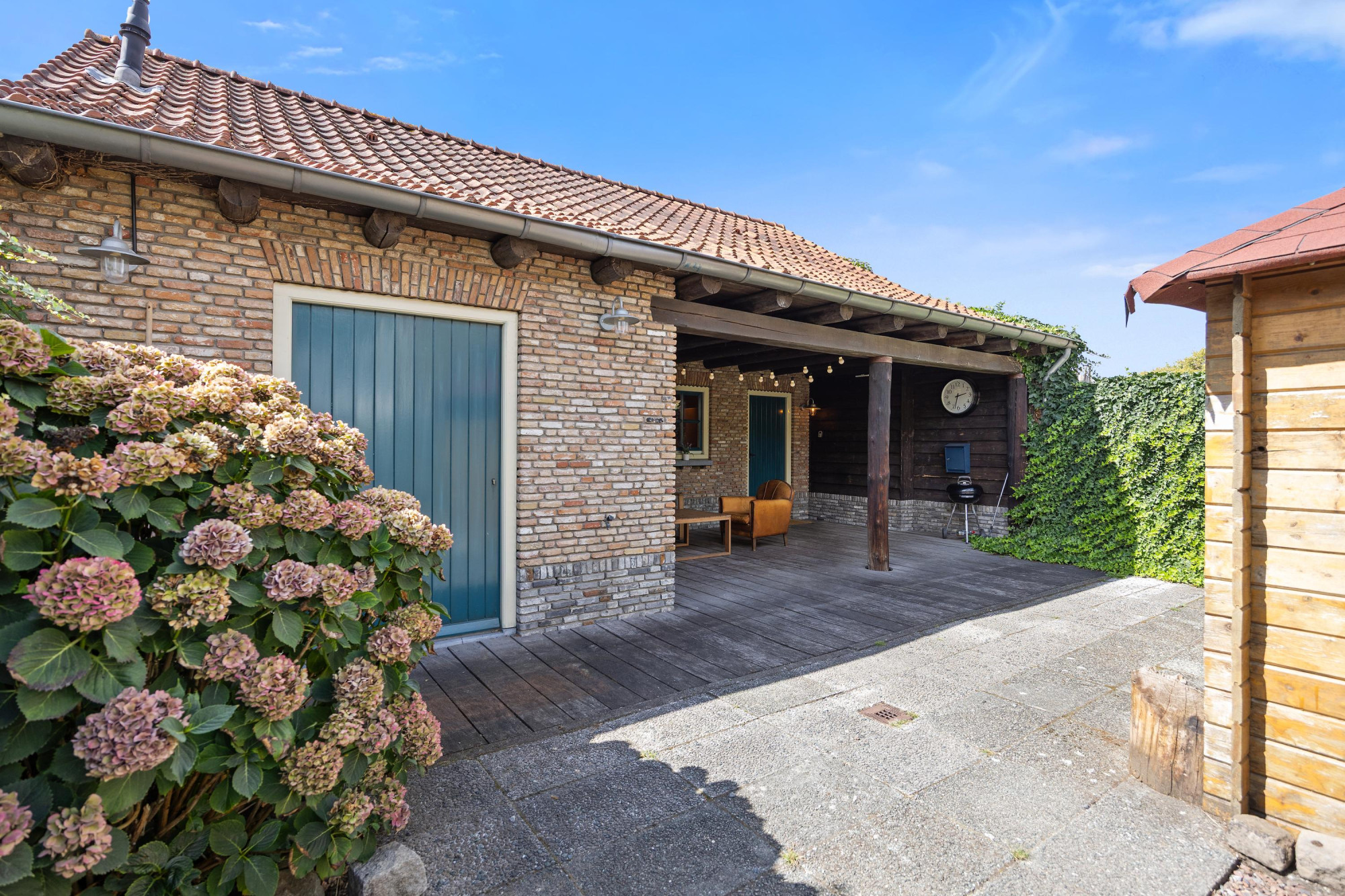Achter op het perceel staat het vrijstaande bijgebouw, dat voelt als een volwaardige woning. Met twee slaapkamers, vloerverwarming op de begane grond en een eigen tuin met grote overkapping biedt dit gebouw volop mogelijkheden. Denk aan een comfortabele plek voor gasten of oudere kinderen, maar ook aan een inspirerende werkruimte of praktijk aan huis. Beide gebouwen hebben hun eigen sfeer, maar delen hetzelfde gevoel van vrijheid en comfort.