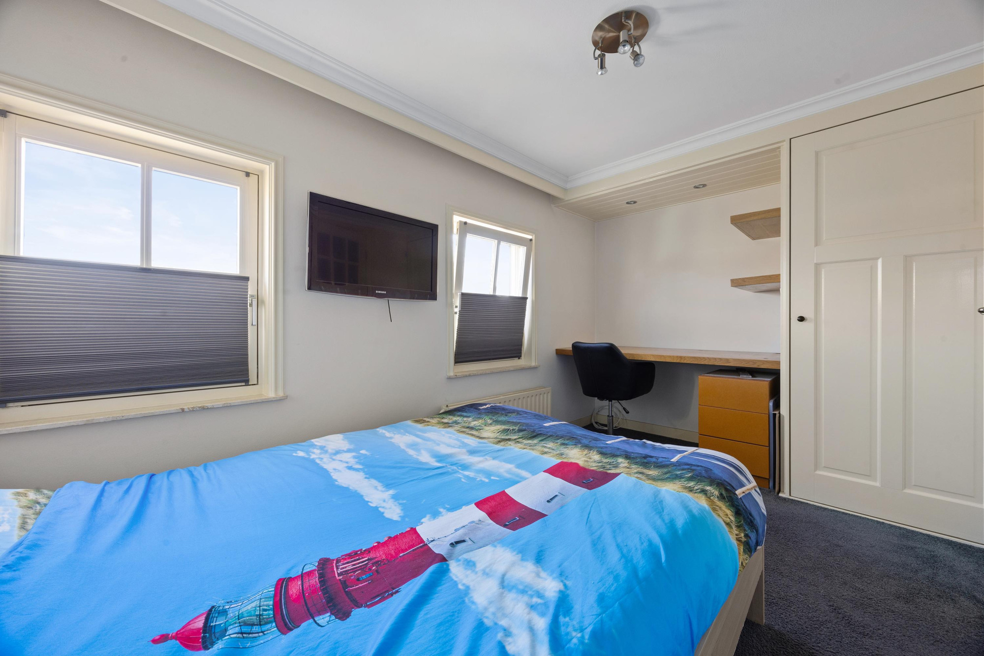 Op de eerste verdieping zijn drie ruime slaapkamers en een tweede badkamer te vinden. De tweede verdieping is ingericht als vijfde slaapkamer en biedt volop mogelijkheden als logeerkamer, werkruimte of tienerkamer.