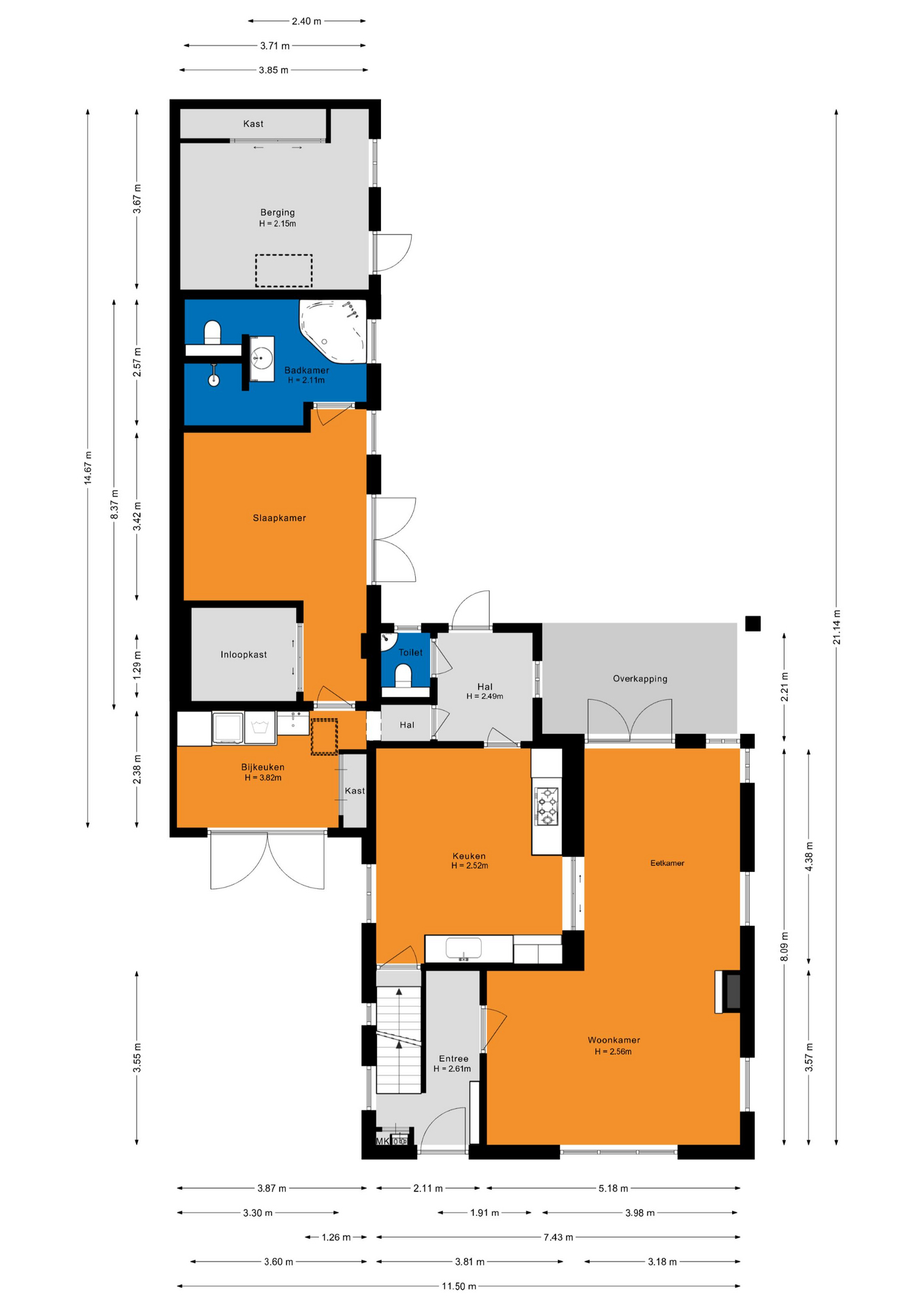 Binnen valt direct de praktische en doordachte indeling op. Op de begane grond bevinden zich onder andere de dichte leefkeuken en een volwaardige slaapkamer met en suite badkamer, een inloopkast en toegang tot de tuin. Dit maakt de woning niet alleen comfortabel, maar ook zeer levensloopbestendig. De keuken vormt het hart van het huis en biedt toegang tot de kelder, ideaal voor extra bergruimte of voorraad.
