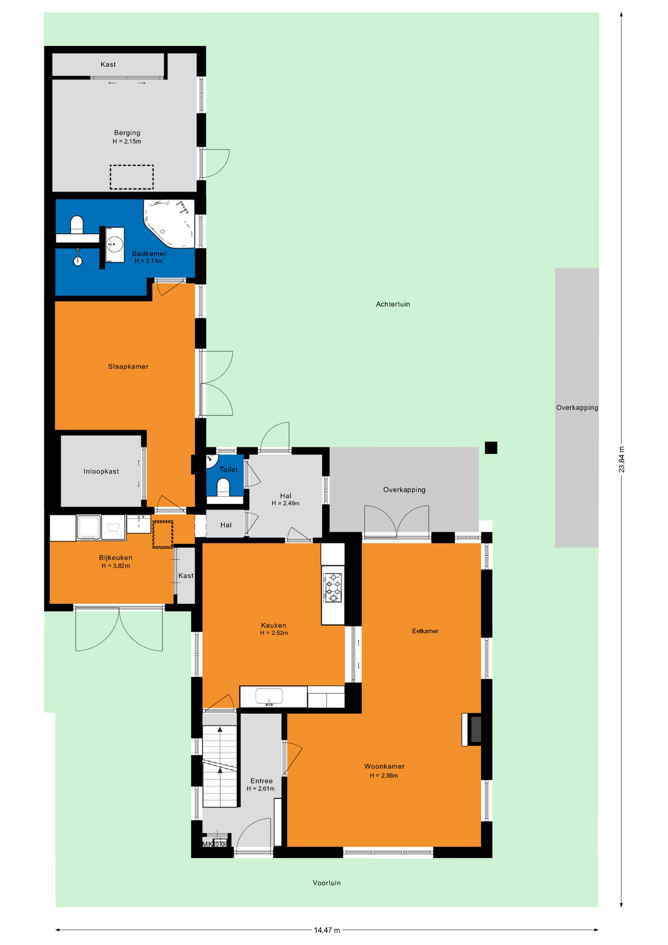 - Royale tuin op het oosten met overkapping en berging;