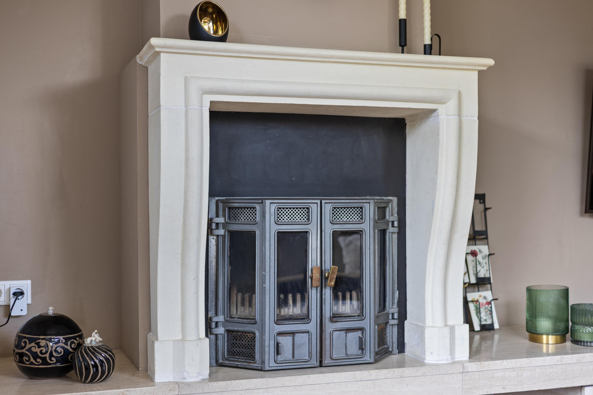 - Sfeervolle open haard, mooie eikenhouten visgraatvloer en unieke tegelvloer;