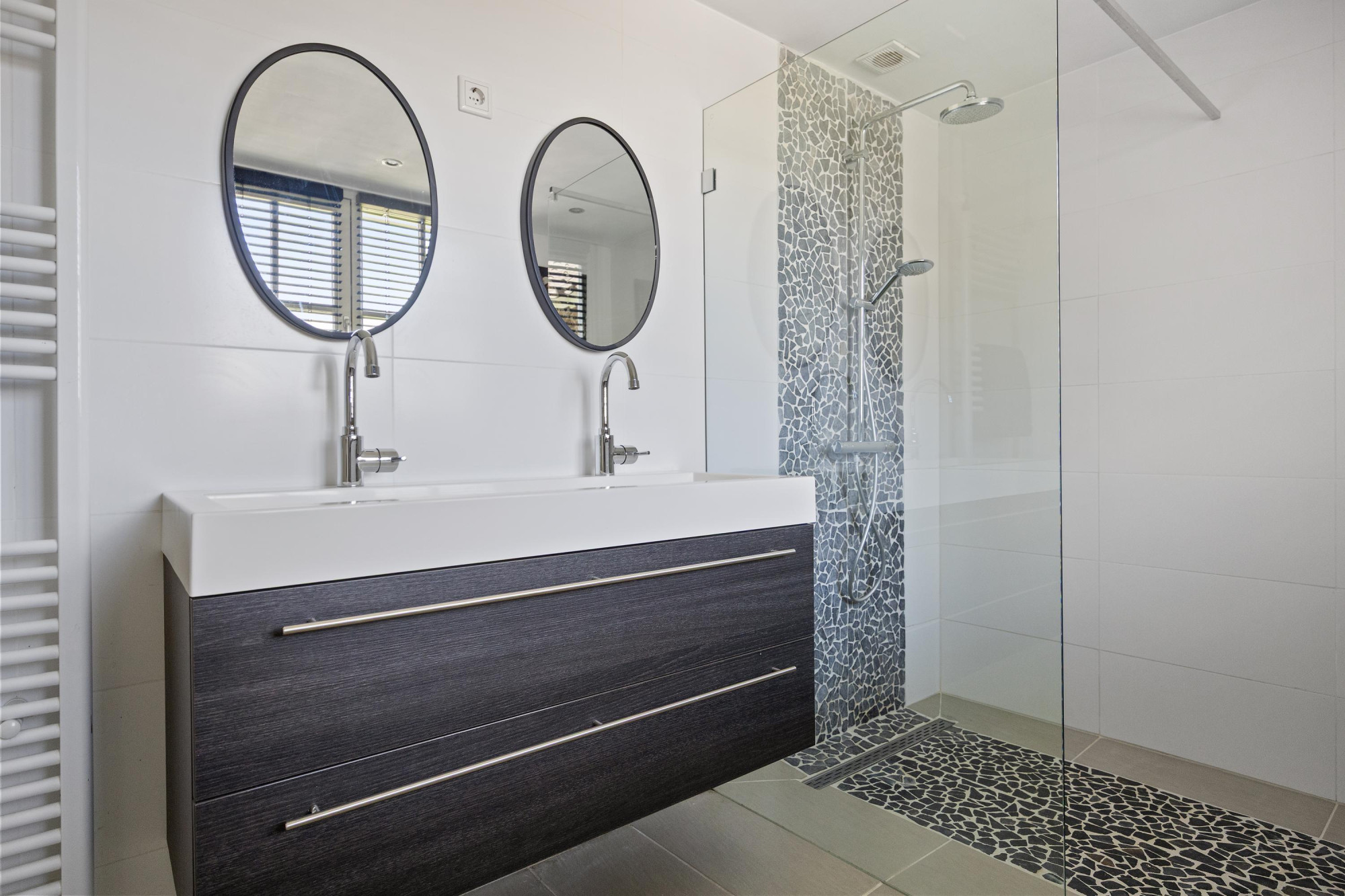 - Badkamer met inloopdouche, ligbad en dubbele wastafel;