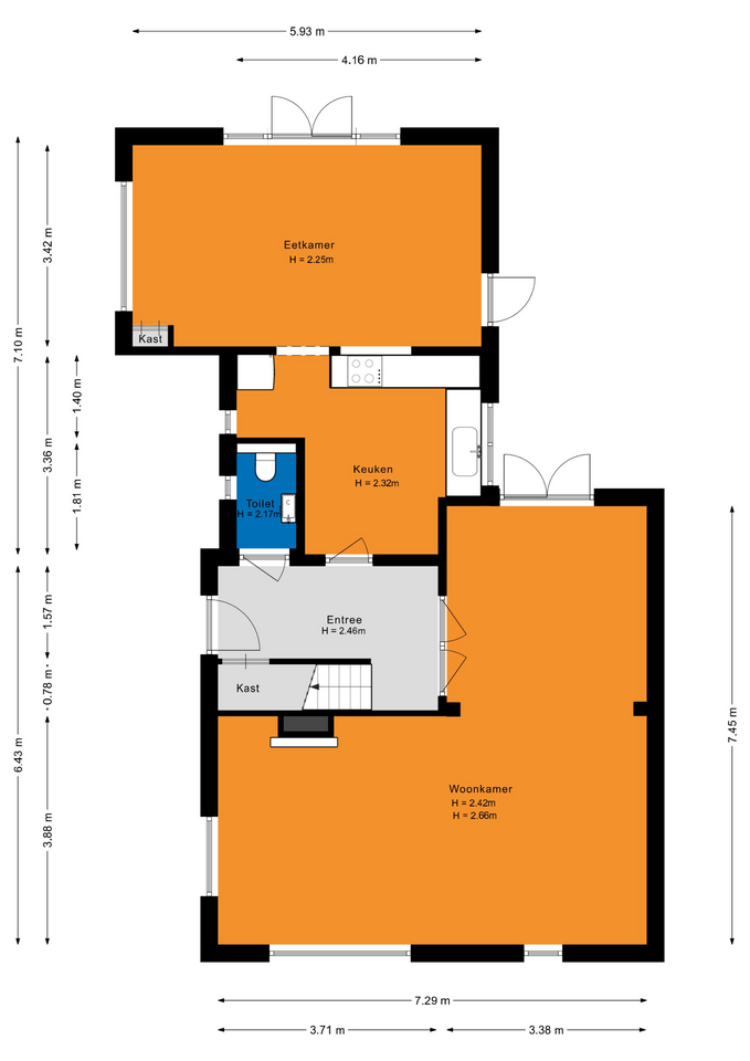 - Vloerverwarming in de hal, toilet, keuken en eetkamer;