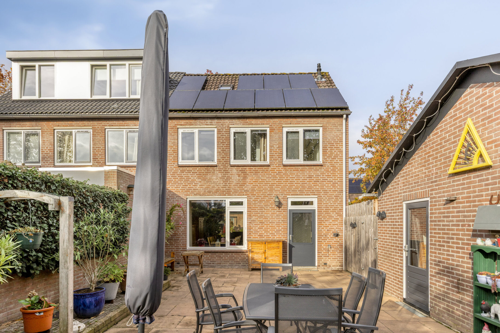 Bovendien woon je met 10 zonnepanelen op het dak ook nog eens energiezuinig en toekomstgericht. De tuin op het zuidoosten is een heerlijke plek voor een ontspannen kop koffie in de ochtendzon of een lange zomeravond met vrienden. Dankzij de achterom en de garage is alles binnen handbereik, van fietsen tot tuingereedschap.
