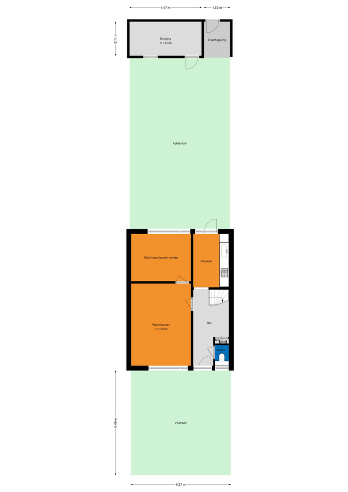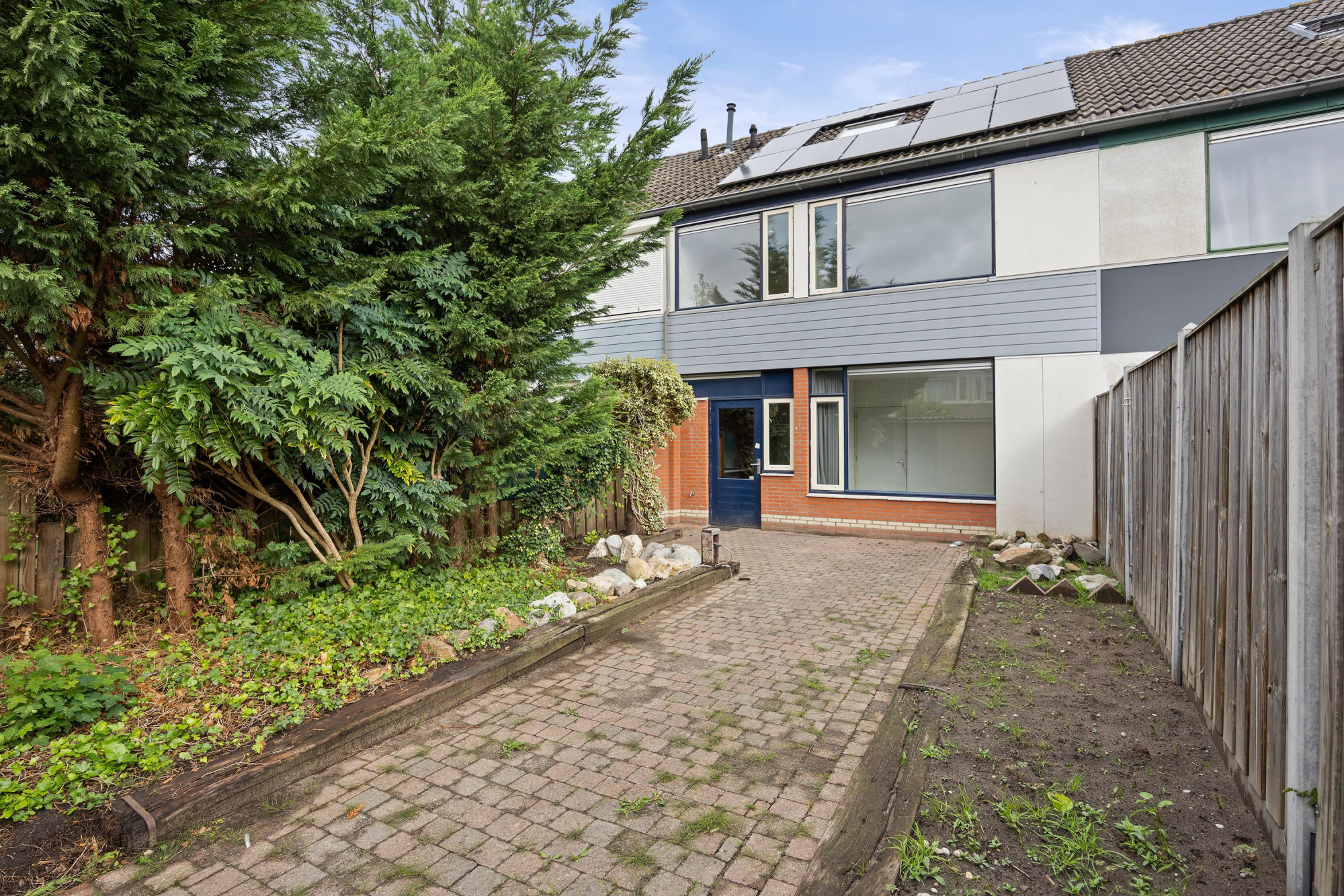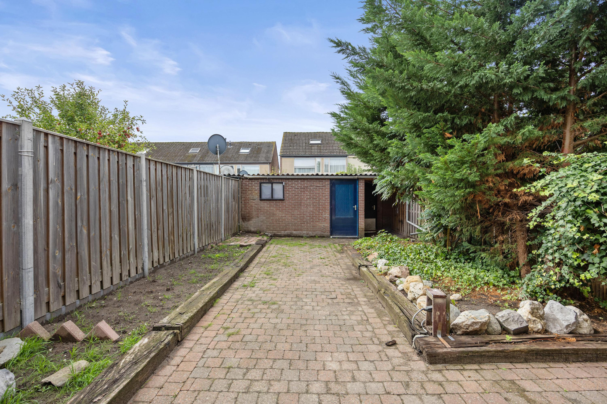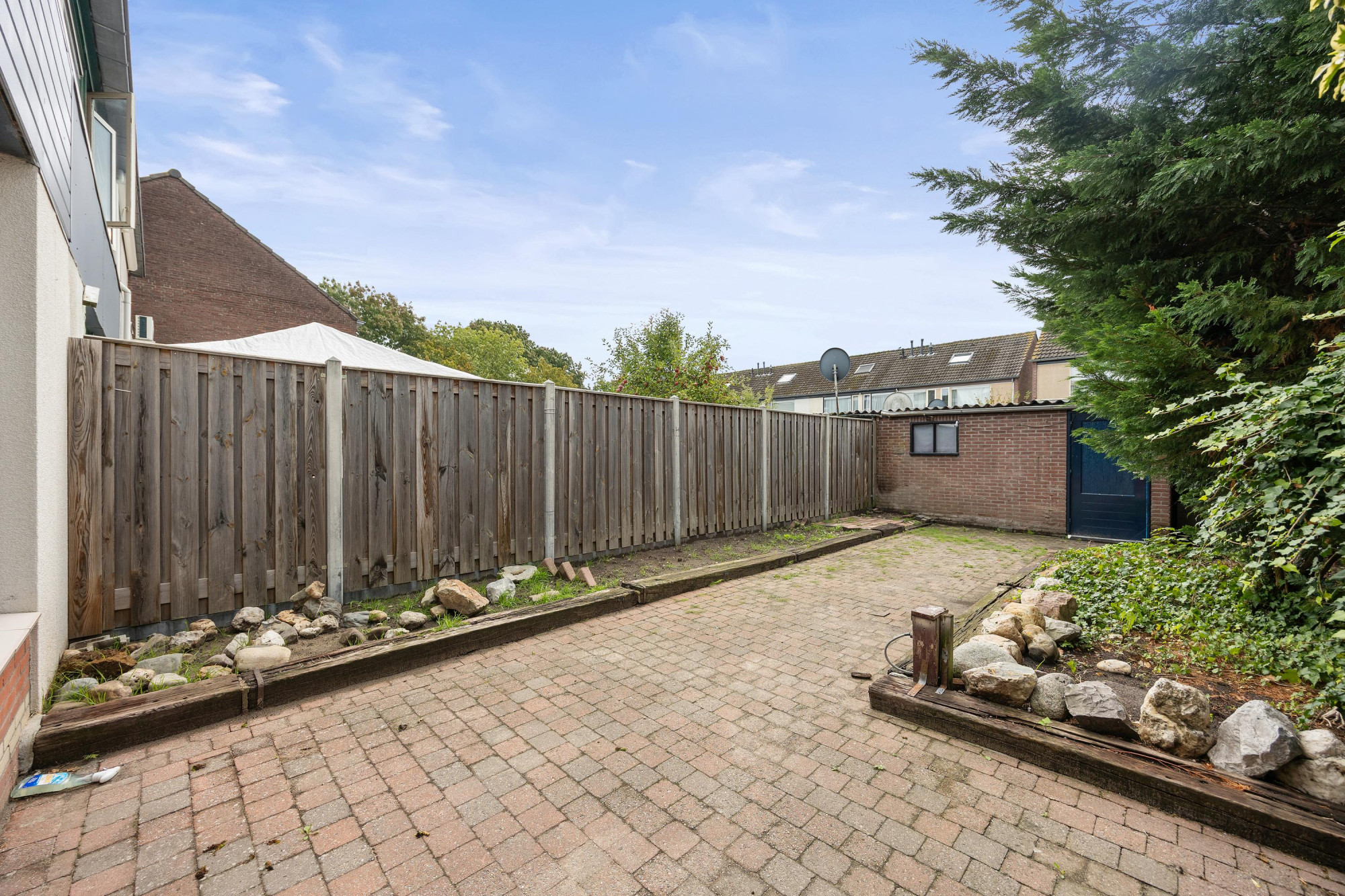 Met de achtertuin liggend op het zuiden pak je de zon mee van vroeg tot laat. Zet er een eettafel neer voor lange zomeravonden of maak een loungehoek, er blijft nog genoeg plek over voor een speelhoek of wat planten. Achterin staat een handige berging voor fietsen, gereedschap en extra opslag, alles netjes uit het zicht. Een tuin waar je meteen van geniet en die je later stap voor stap helemaal eigen maakt.