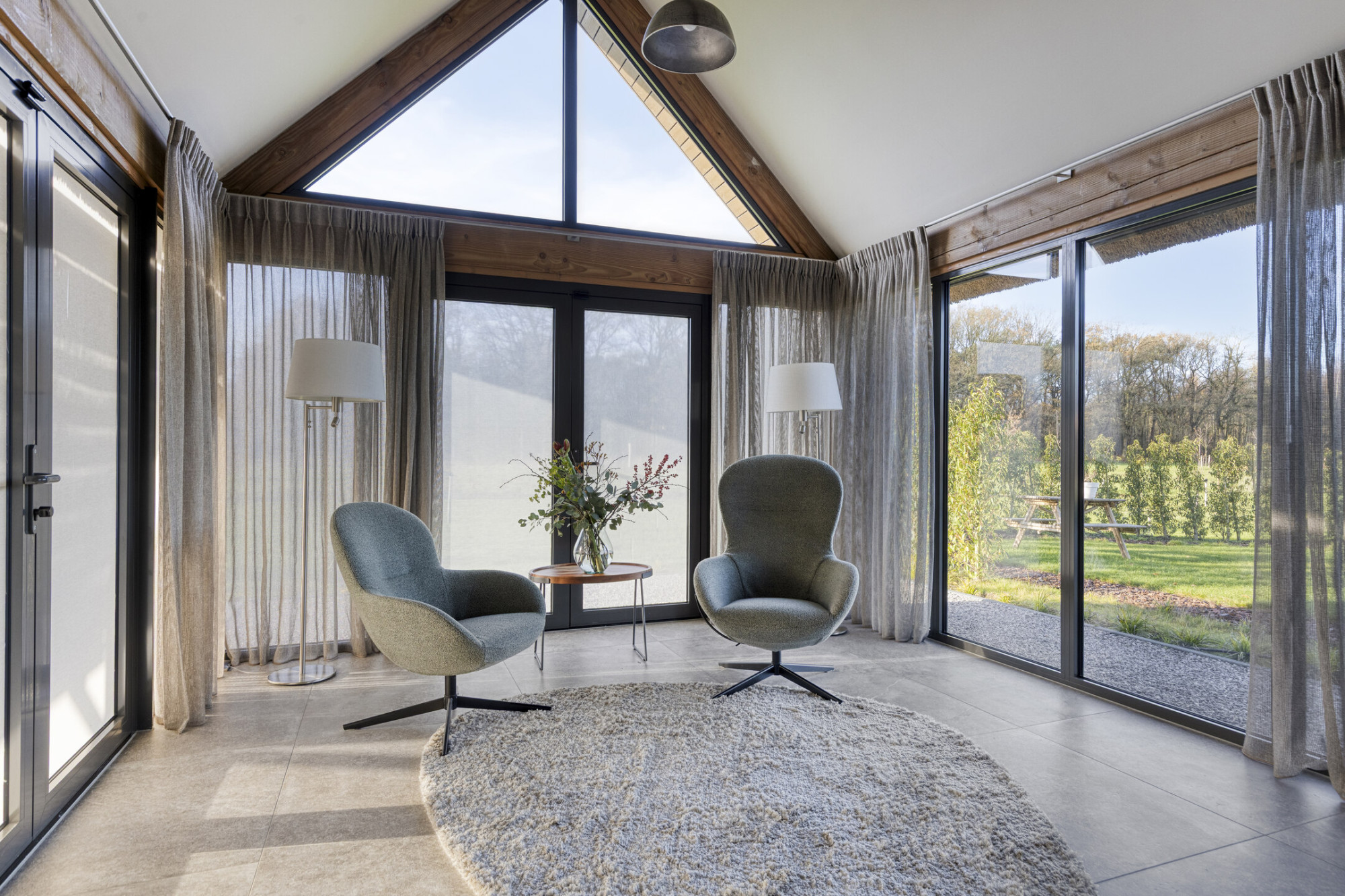 - Luxe afwerking in elke ruimte, waar de natuur écht naar binnen gehaald is;