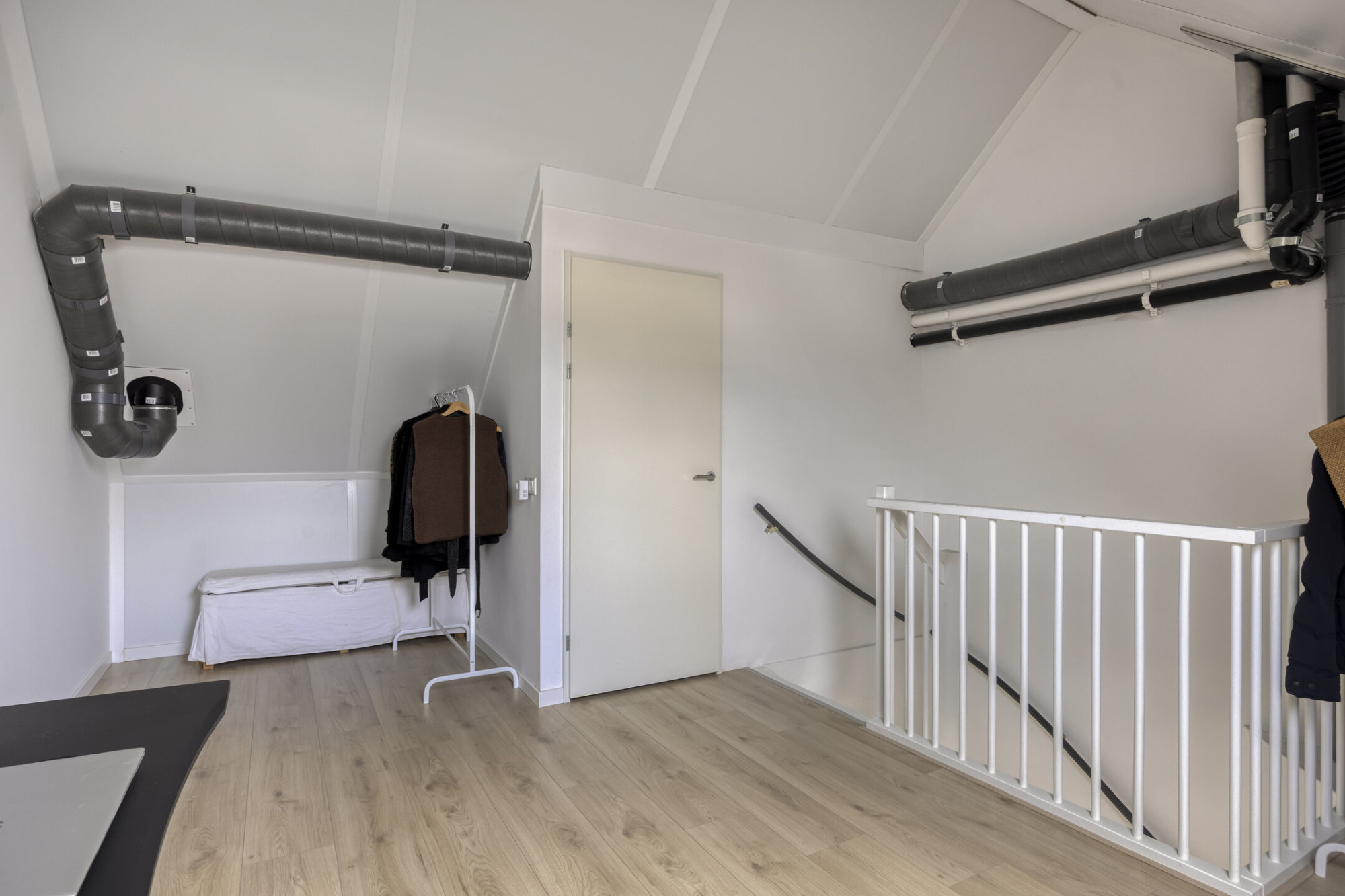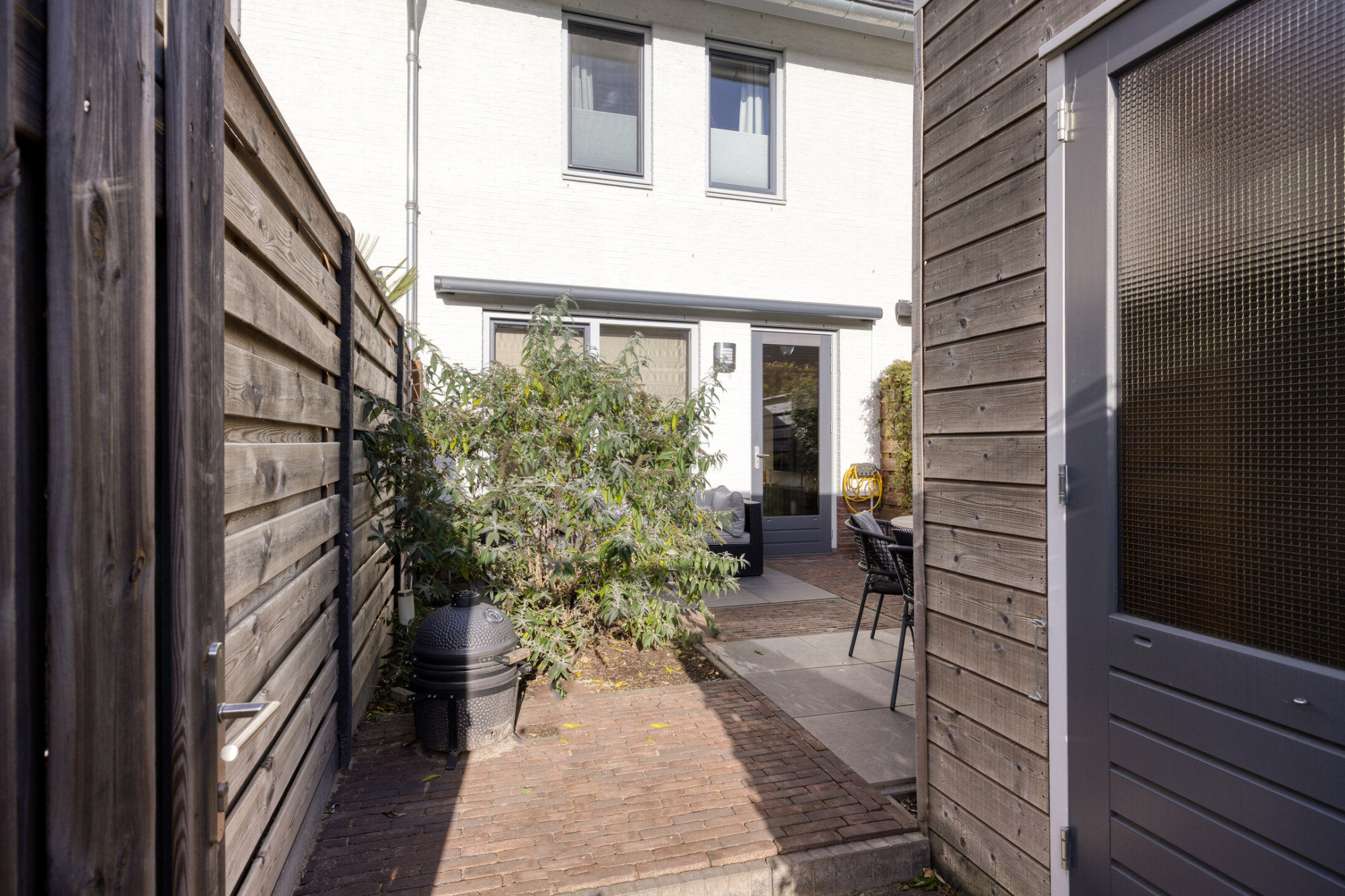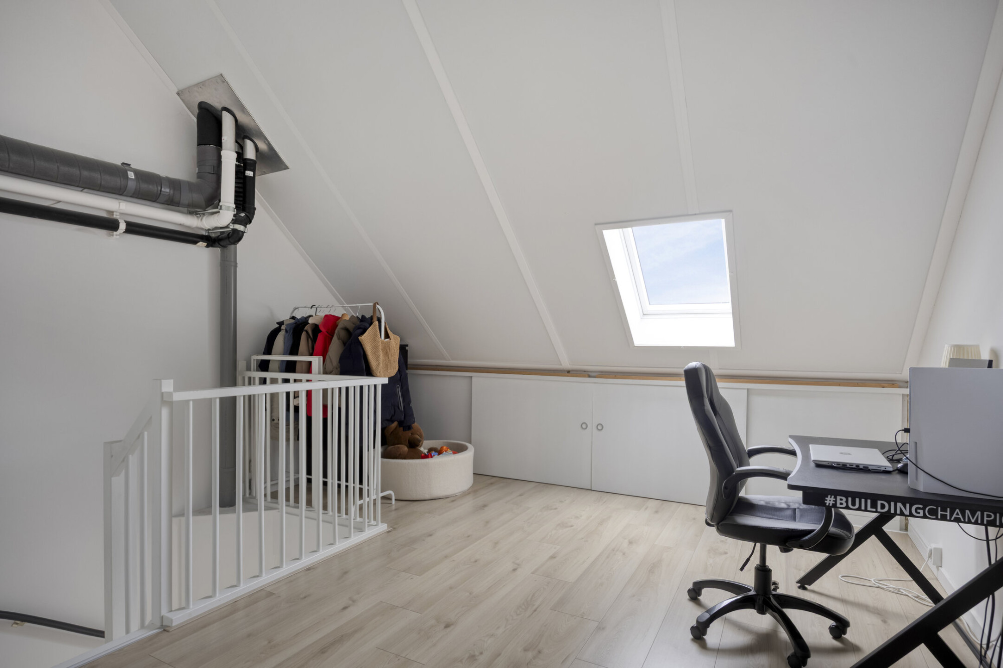 Op de eerste verdieping vind je twee slaapkamers en een moderne badkamer met inloopdouche en dubbele wastafel. De ruime zolder biedt volop mogelijkheden: maak er een extra slaapkamer, werkkamer of hobbyruimte van. De tuin op het zuidoosten is een fijne plek om te genieten van de zon, met een schuurtje voor je fietsen en een handige achterom.