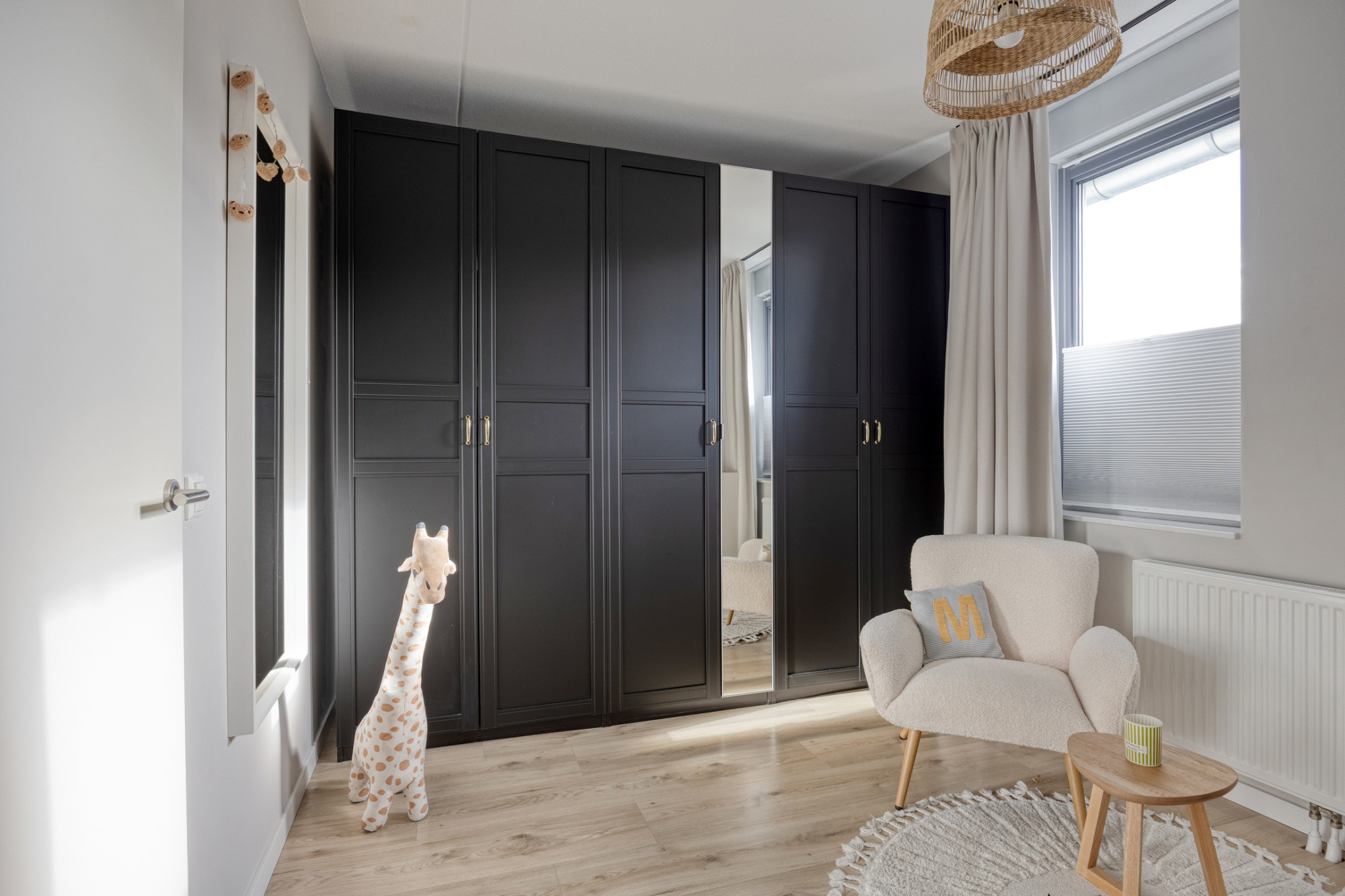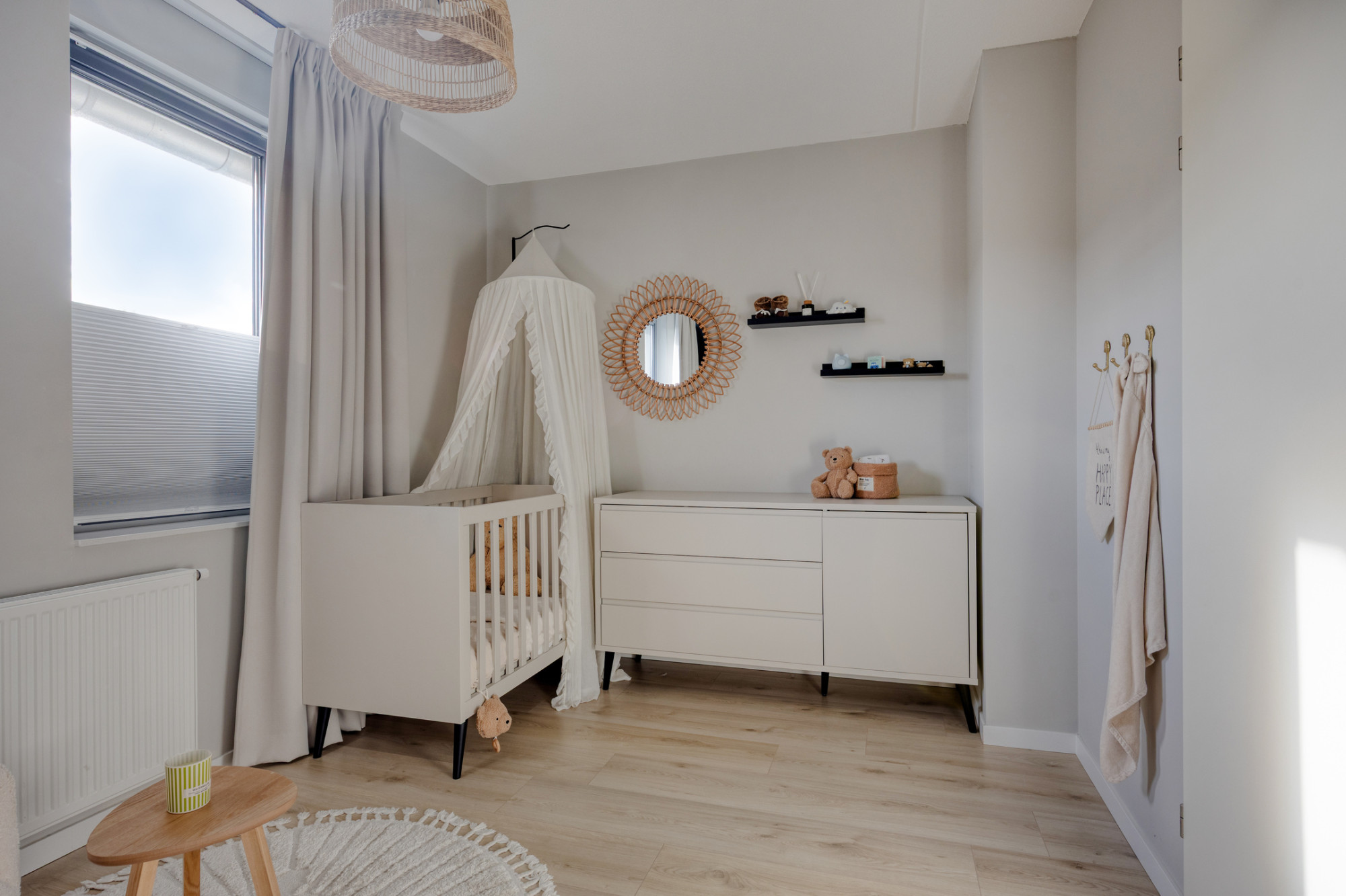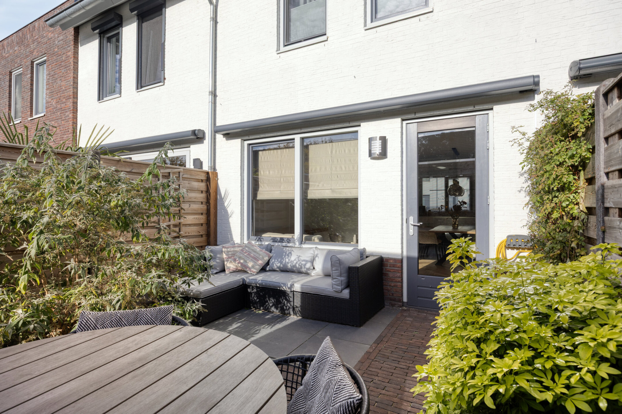 Op de eerste verdieping vind je twee slaapkamers en een moderne badkamer met inloopdouche en dubbele wastafel. De ruime zolder biedt volop mogelijkheden: maak er een extra slaapkamer, werkkamer of hobbyruimte van. De tuin op het zuidoosten is een fijne plek om te genieten van de zon, met een schuurtje voor je fietsen en een handige achterom.