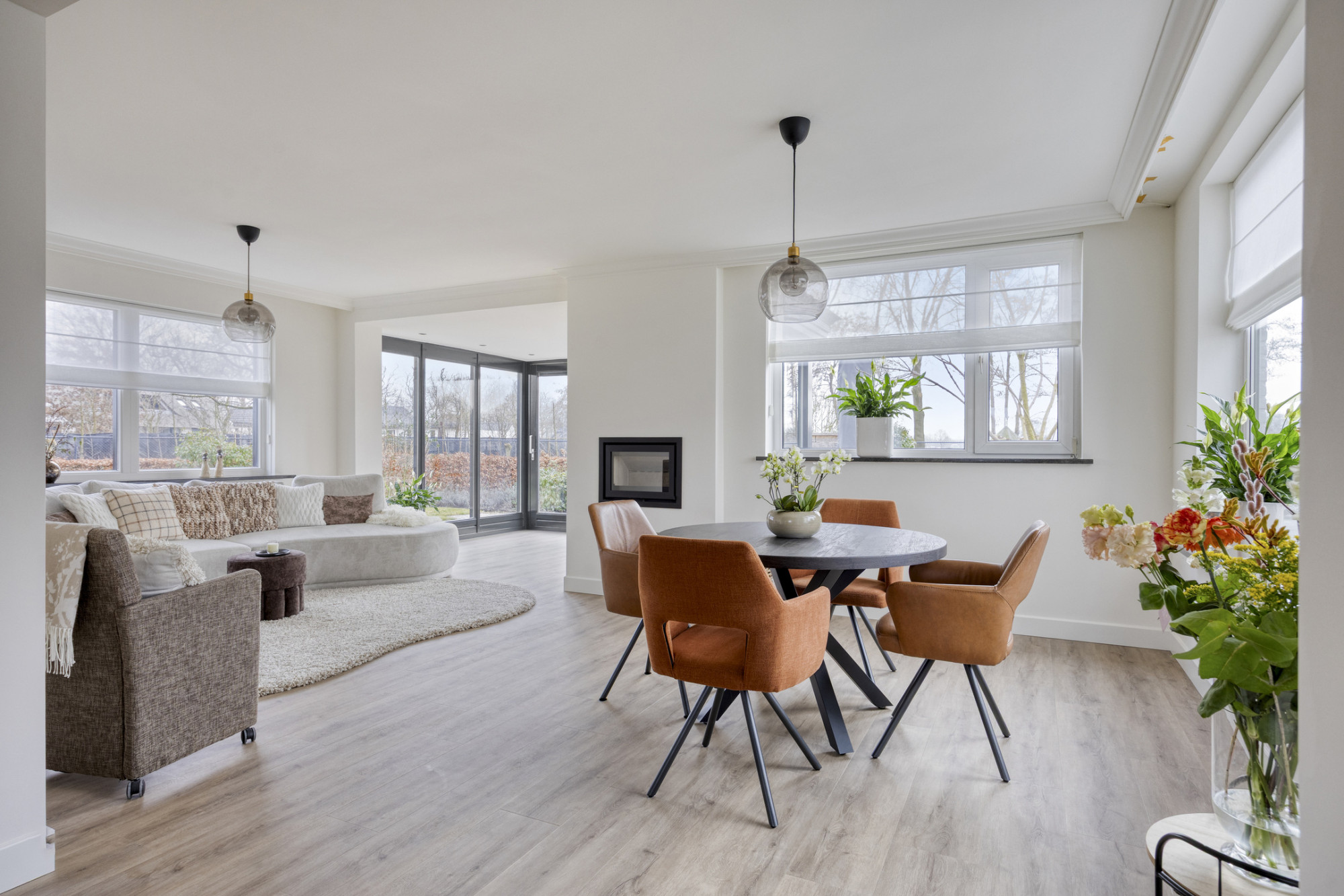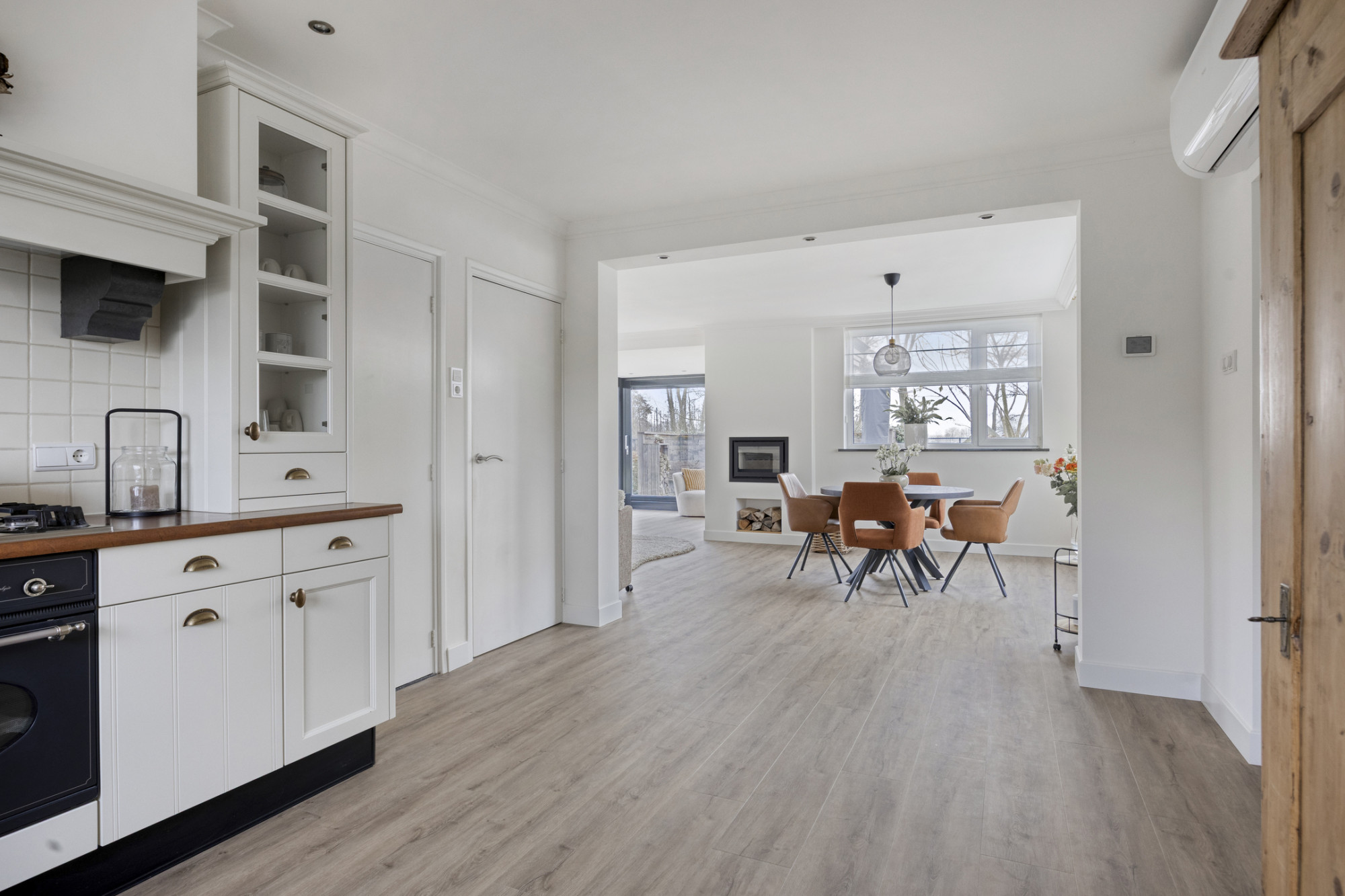 Binnen valt meteen op hoeveel licht en ruimte deze woning te bieden heeft. De begane grond is recent volledig vernieuwd en straalt één en al comfort uit. Strak nieuw stucwerk, een stijlvolle PVC vloer met vloerverwarming en een sfeervolle houtkachel zorgen voor een warme en eigentijdse basis. De woonkamer met grote raampartijen vormt het hart van het huis en biedt prachtig uitzicht op de omliggende natuur. De keuken is compleet uitgevoerd en vormt een fijne plek om te koken en samen te komen. Op de begane grond vind je daarnaast een extra kamer die perfect dienst kan doen als slaap-, werk- of hobbyruimte. Op de eerste verdieping wachten nog eens drie ruime slaapkamers én maar liefst twee badkamers, ideaal voor gezinnen of logees.