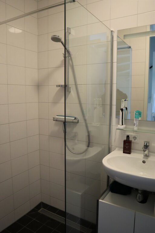 - een volledige badkamer met wandcloset, wastafel met mengkraan, spiegel met LED verlichting, inloop douche met thermostatische douchemengkraan en designradiator;