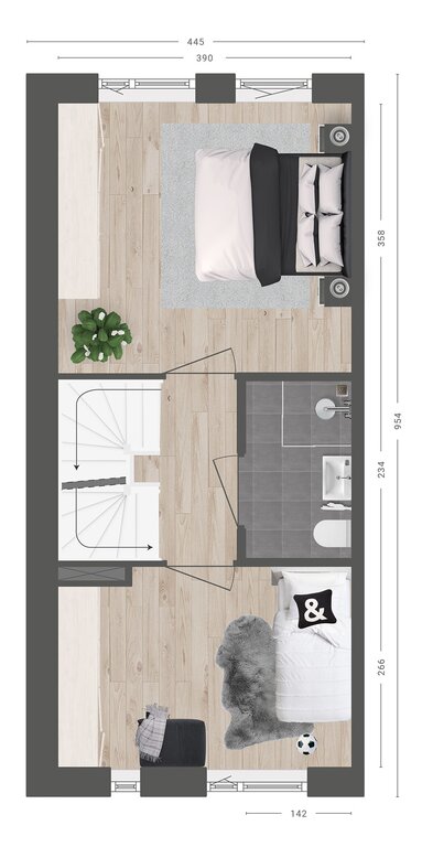 - zowel de begane grond als de eerste verdieping zijn voorzien van laminaatvloer en vloerverwarming die tevens in de zomer zorgt voor verkoeling.