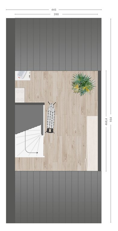 De derde slaapkamer is op zolder te vinden en voorzien van een Velux dakraam.