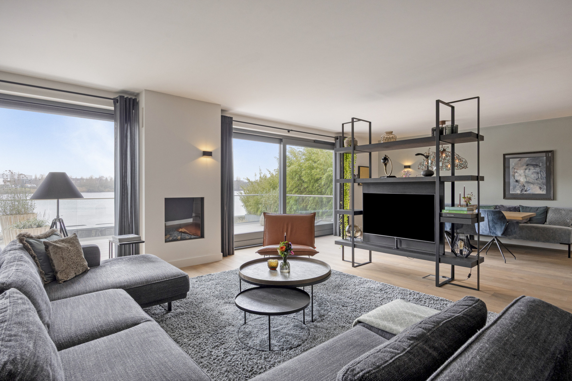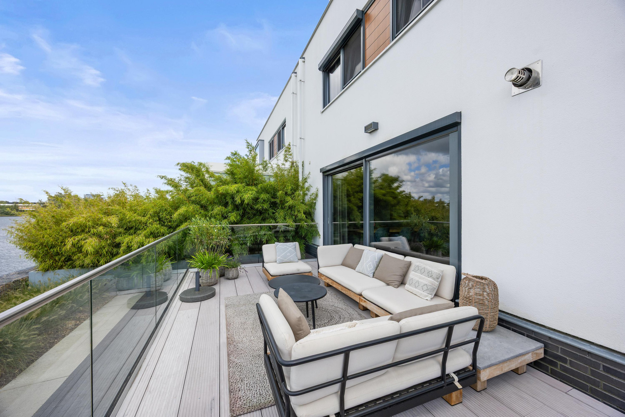 Alsof je elke dag een beetje op vakantie bent, zo voelt wonen in deze moderne twee-onder-een-kapwoning aan het water in Goirle. Zodra je binnenkomt, merk je het: dit is geen standaard huis, dit is een watervilla waar sfeer, luxe en comfort samenkomen. Grote raampartijen halen buiten naar binnen en trekken je blik vanzelf richting de achtertuin, waar de Surfplas als een levend schilderij ligt te schitteren. Privacy? Absoluut. Rust? Meer dan genoeg. Een plek waar je ’s ochtends wakker wordt met het zachte licht over het water en ’s avonds de dag afsluit met een drankje terwijl de zon langzaam ondergaat.