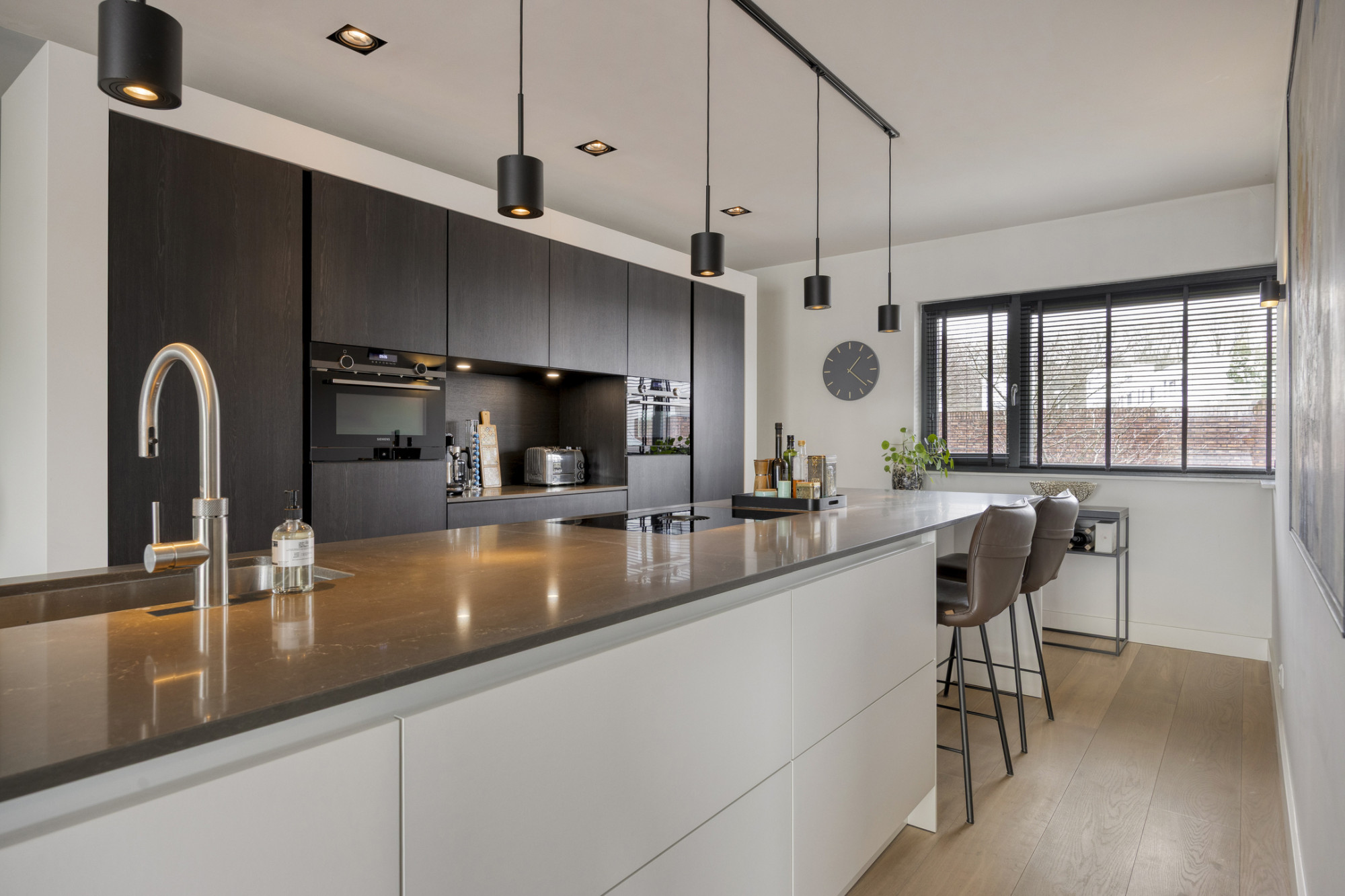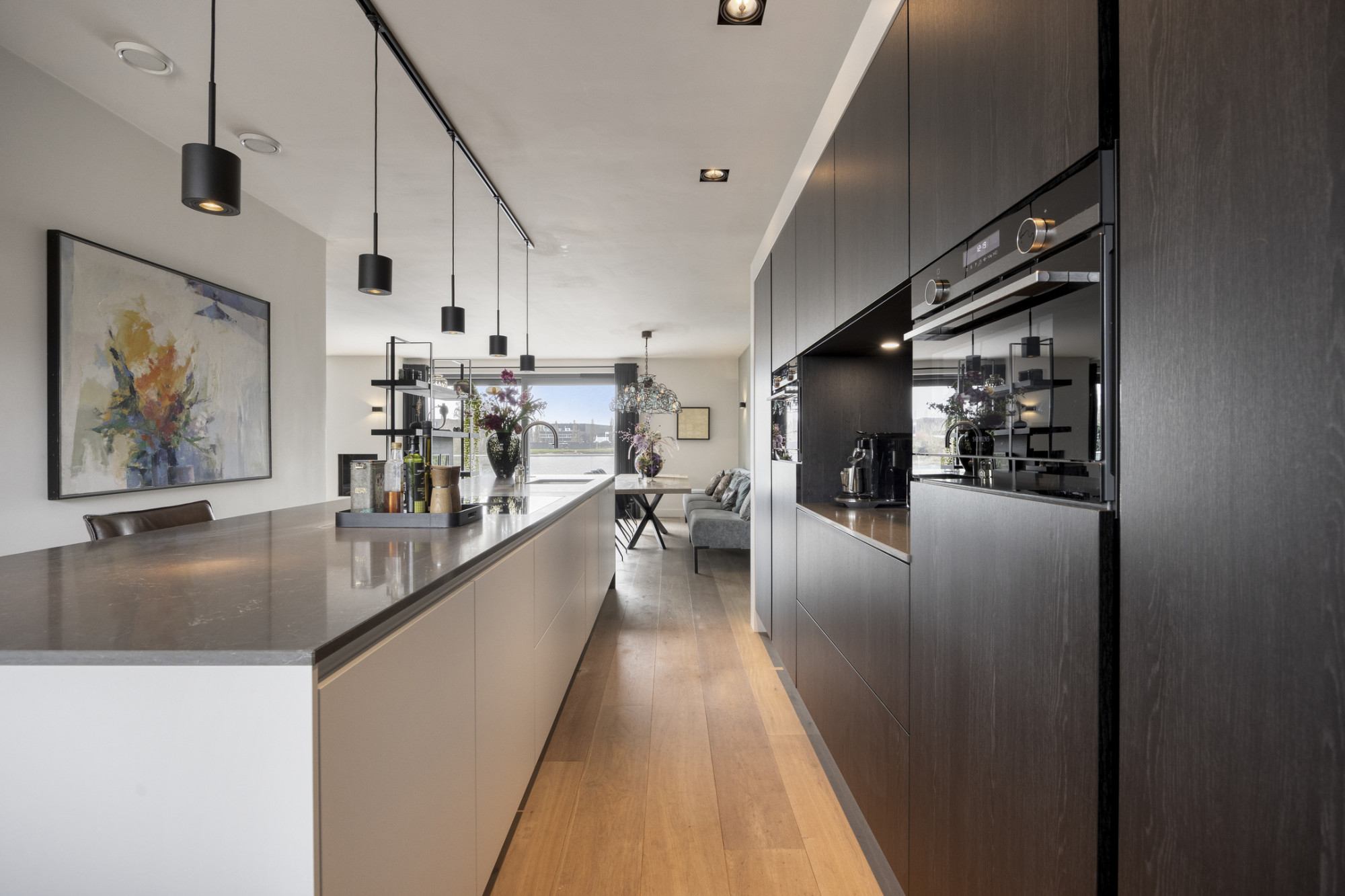 De begane grond is er één om verliefd op te worden. De zeer ruime Siematic keuken vormt het hart van het huis en is, samen met de eethoek, gemaakt voor lange avonden tafelen, borrels met vrienden en spontane gesprekken aan de bar. Het kookeiland is royaal opgezet, voorzien van diverse stroompunten en nodigt uit om samen te koken, te werken of gewoon te blijven hangen. Alles is strak en mooi afgewerkt, met oog voor detail en comfort. Dankzij de vloerverwarming op beide verdiepingen voelt het hier altijd behaaglijk aan. Praktisch is het ook: de inpandige berging biedt ruimte voor fietsen en opslag, terwijl de berging op de eerste verdieping ruimte en aansluitingen biedt voor de wasmachine en droger.
