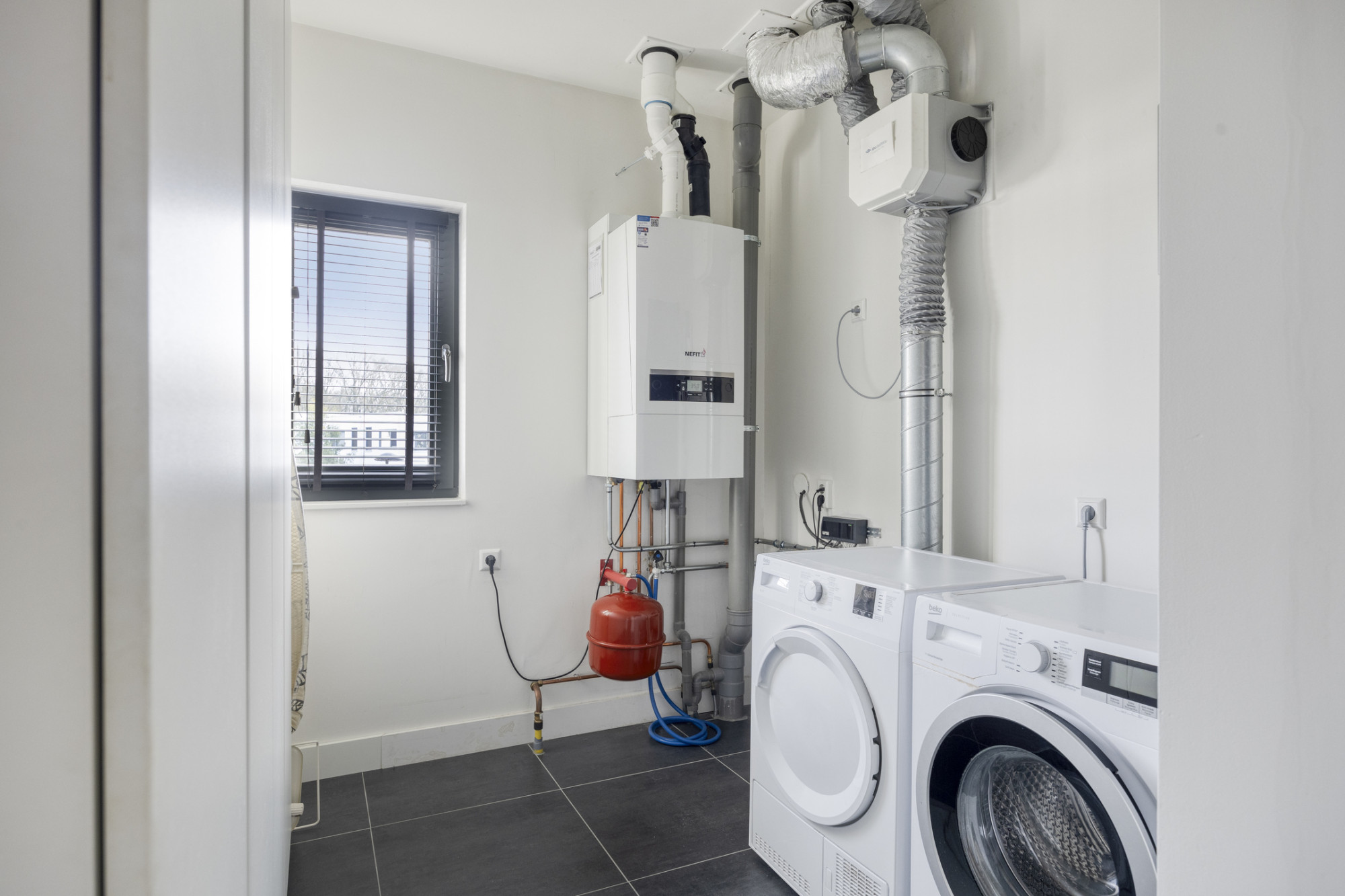 - Berging met aansluitingen voor de wasapparatuur;
