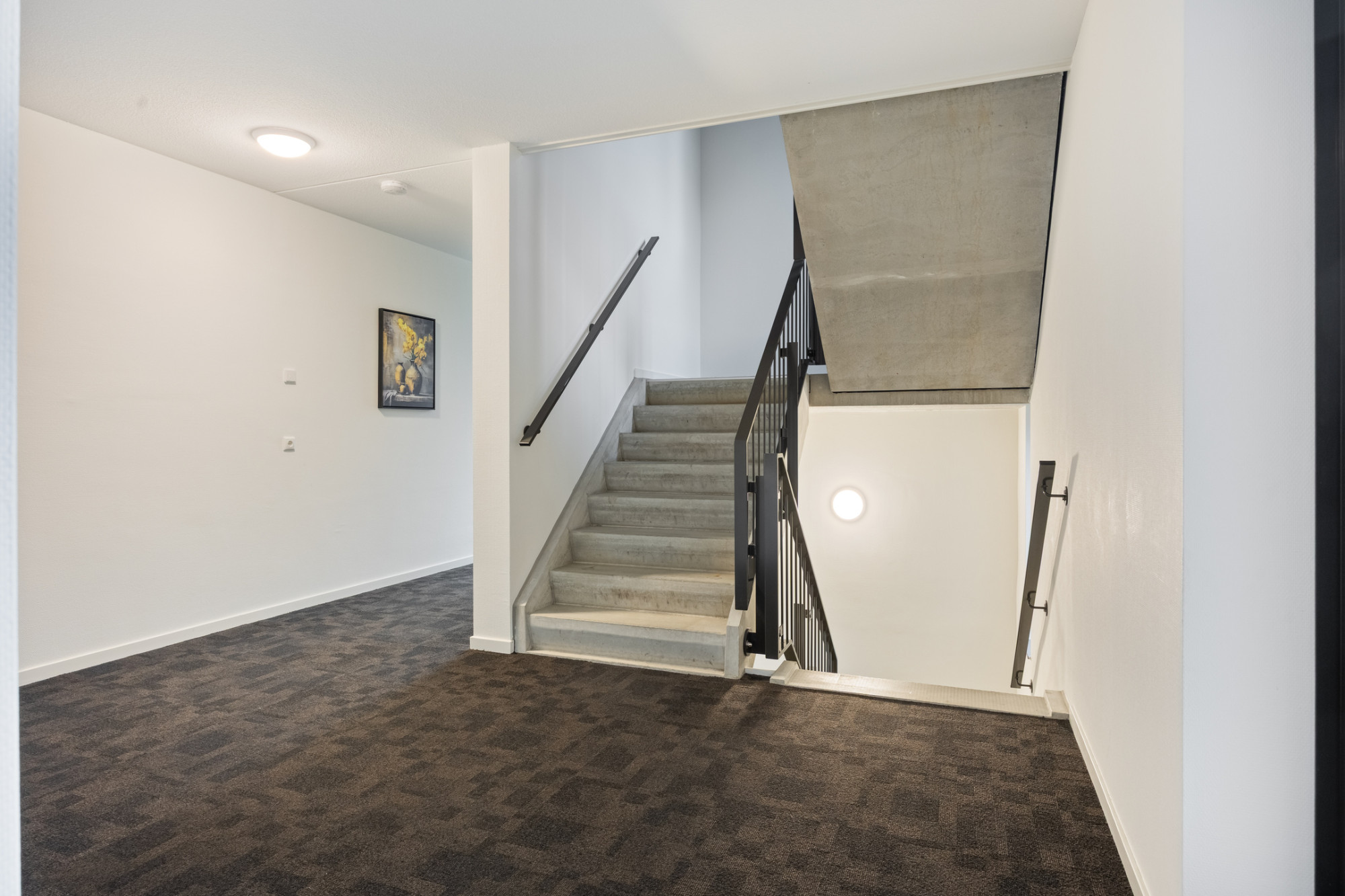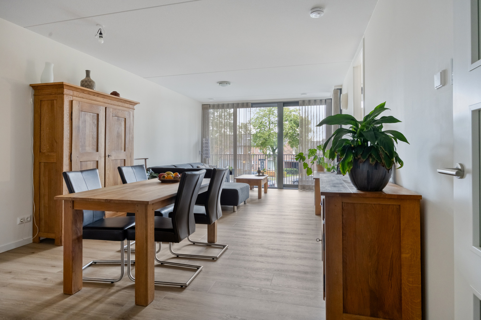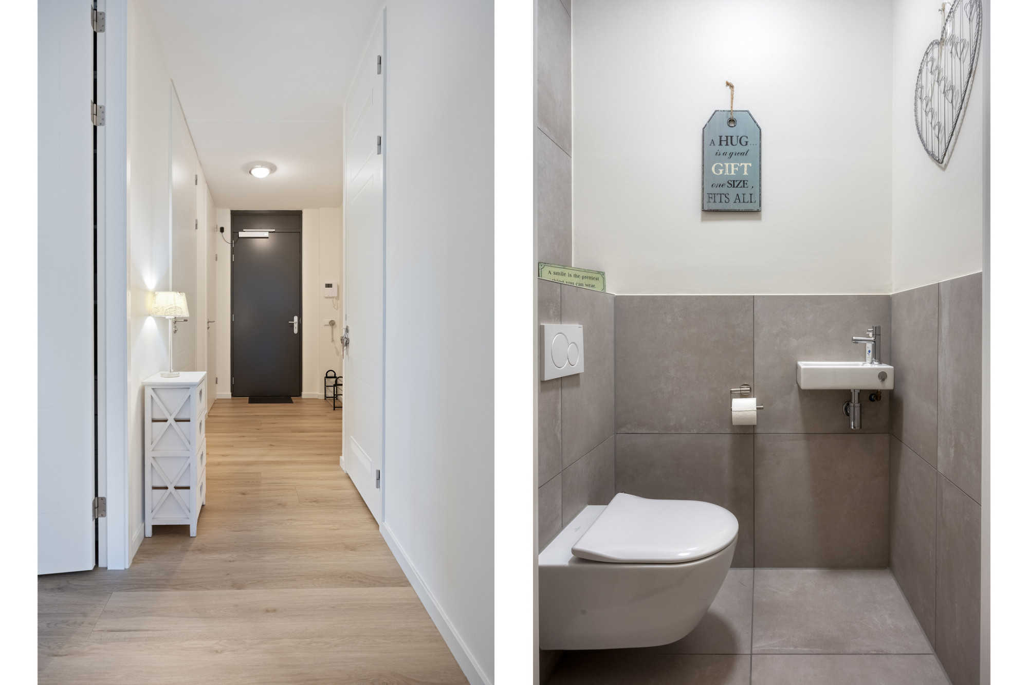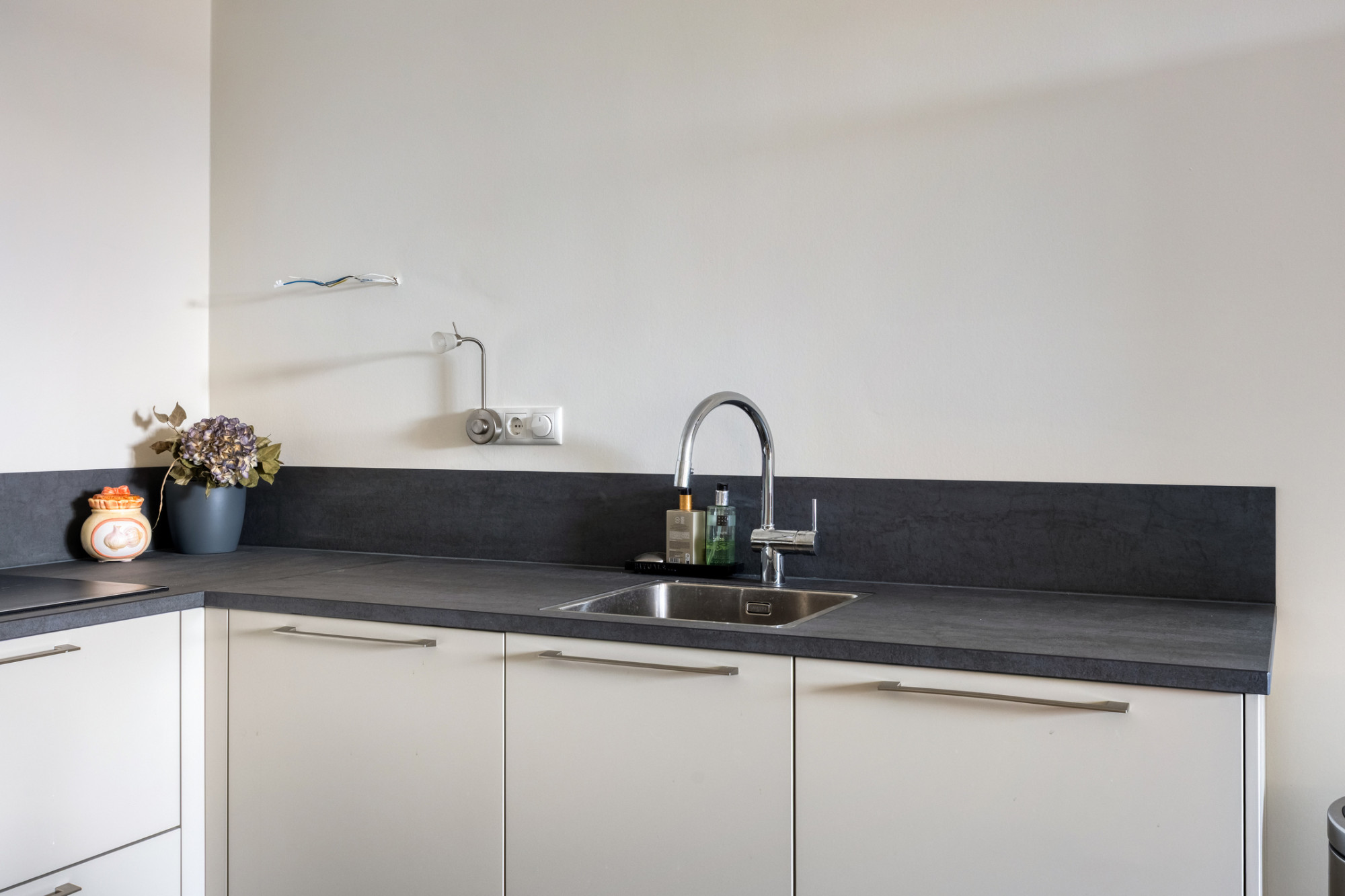 De woonkamer sluit naadloos aan op de moderne keuken, uitgerust met hoogwaardige apparatuur en een frisse uitstraling. Via de woonkamer bereik je ook het zonnige balkon, een heerlijke plek voor een kop koffie. Het appartement beschikt over twee bergingen: één in de woning en een extra externe berging voor bijvoorbeeld opslag of fietsen. De aanwezige lift zorgt daarbij voor extra gemak.