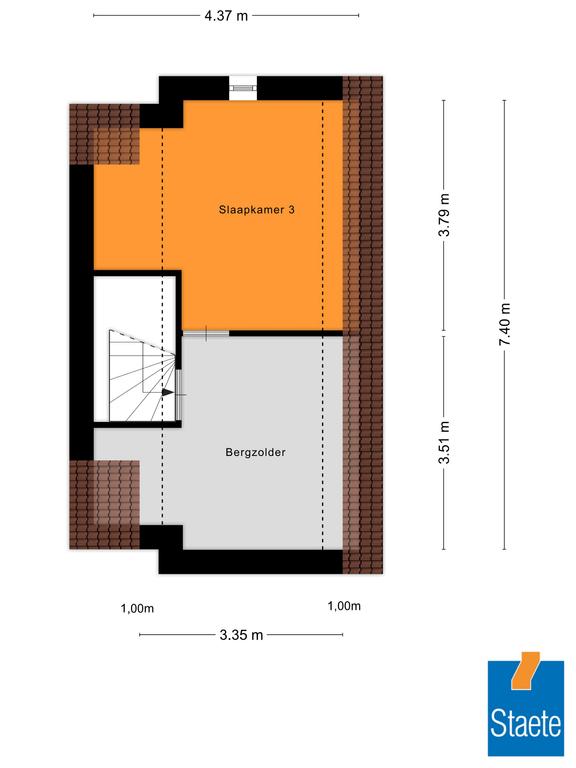 Via de vaste trap bereik je de zolder, waar zich een derde slaapkamer bevindt.
