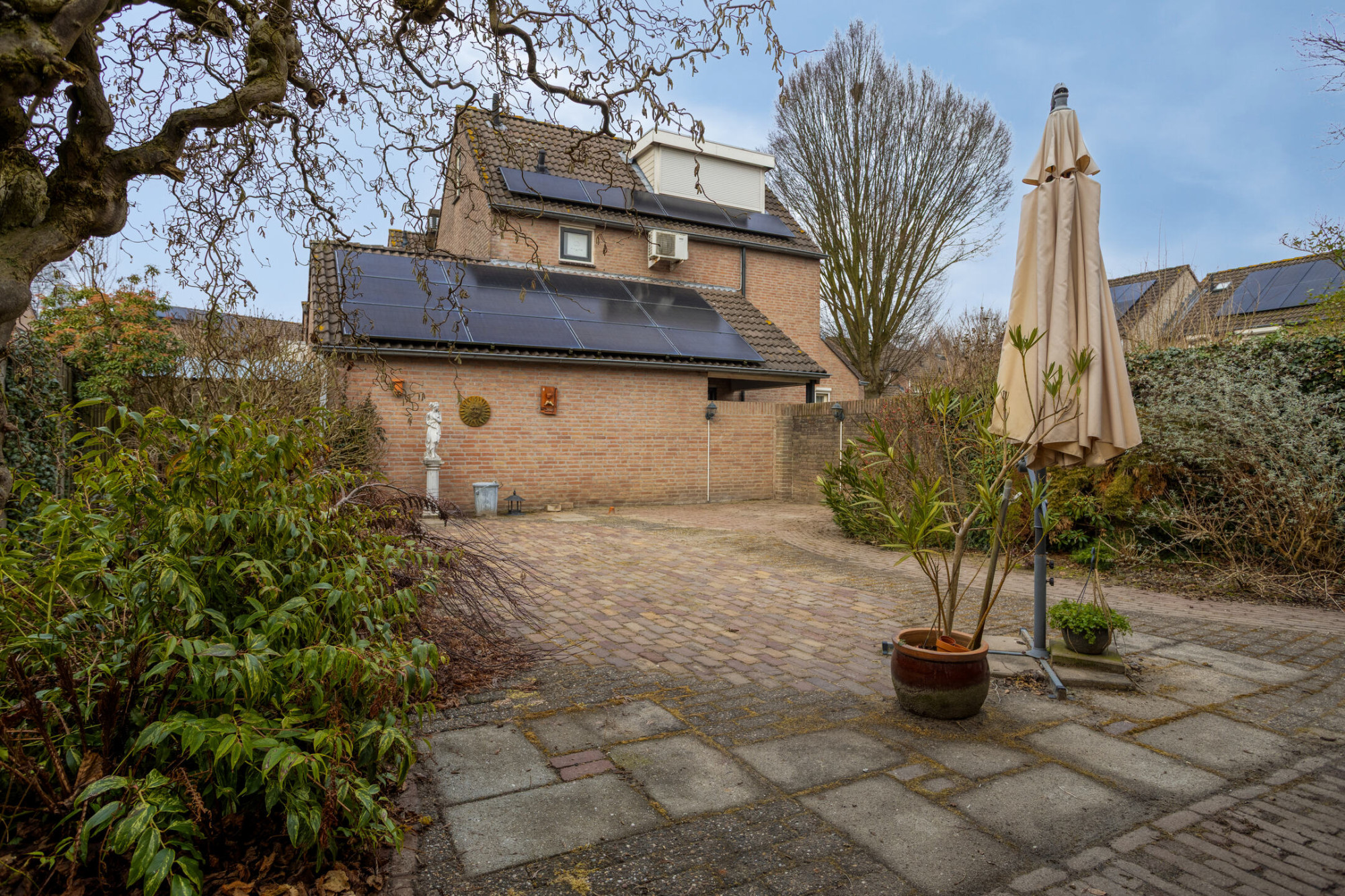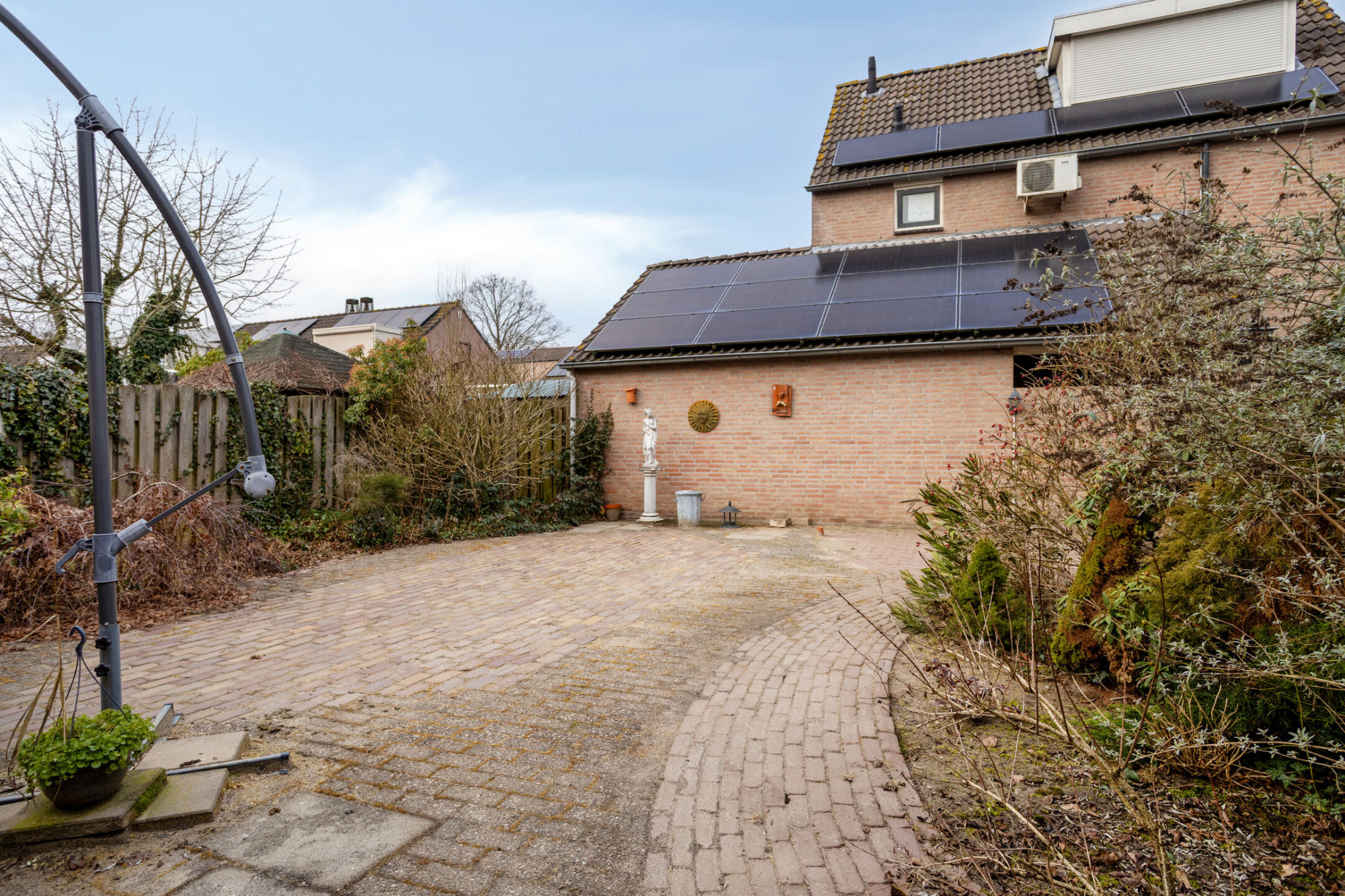 De inpandige garage en bijkeuken maken het dagelijks leven net wat makkelijker, terwijl de negen zonnepanelen bijdragen aan een energiezuiniger geheel. Ook buiten is het genieten. De achtertuin met overkapping is een fijne plek voor lange zomeravonden, barbecues met vrienden of gewoon een rustig moment met een kop koffie.