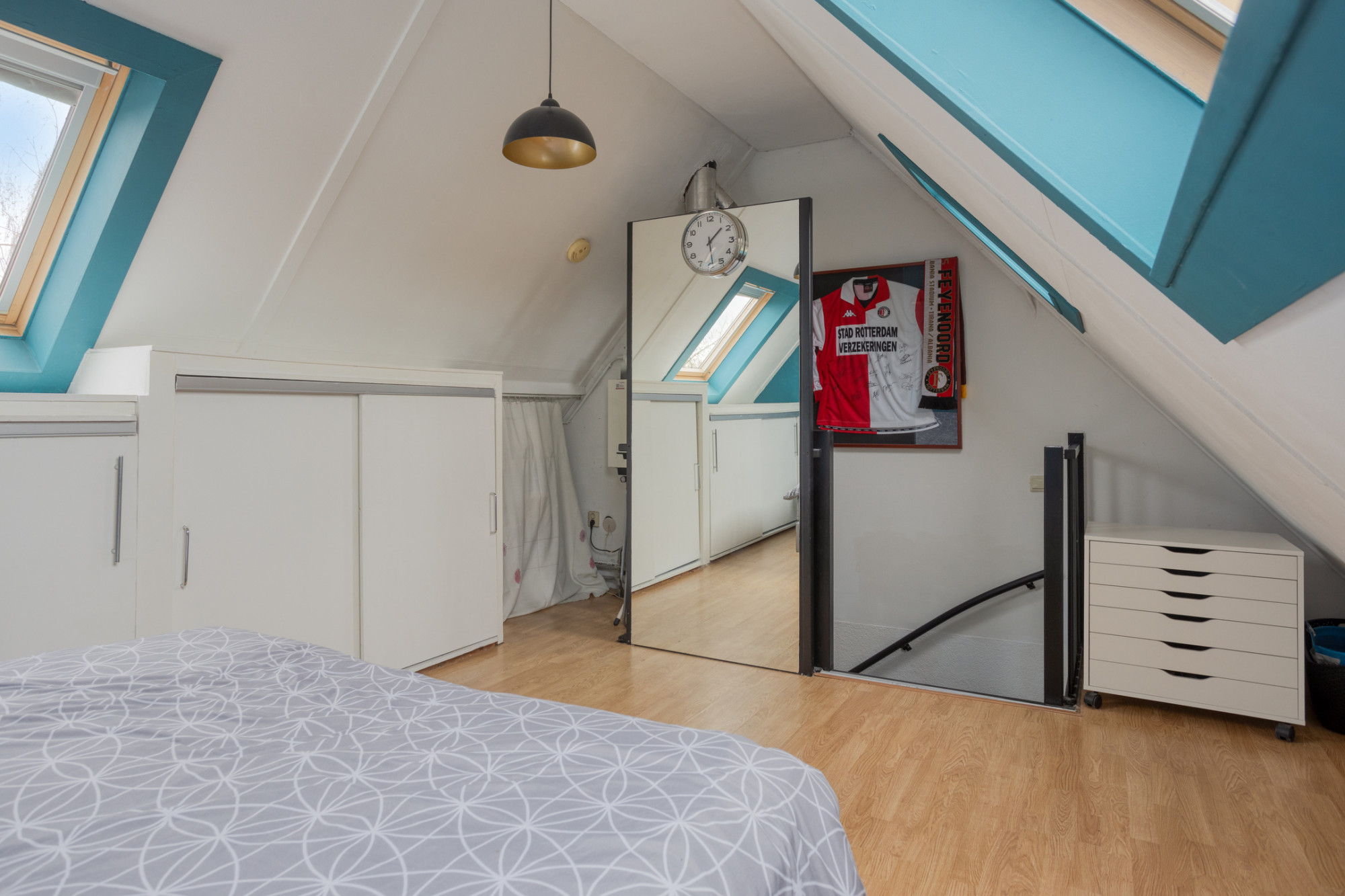 Via de hal bereik je de keuken, die prettig ruim is opgezet en uitkijkt op de achtertuin. Op de eerste verdieping vind je drie lichte slaapkamers en een nette badkamer met douche en wastafel. De zolder, bereikbaar via een vaste trap, biedt een vierde slaapkamer en extra bergruimte, ideaal voor opslag of een werkplek. Dankzij de praktische indeling kun je alle kamers optimaal benutten voor wonen, werken of hobby’s.