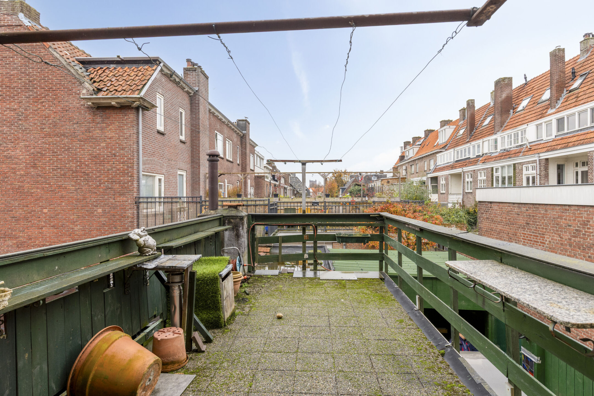 De achtertuin is een fijne plek om buiten te leven. Dankzij de ligging op het zuidwesten geniet je hier bijna de hele dag van de zon. Daarnaast beschikt de tuin over een overkapping en een berging, ideaal voor fietsen, tuingereedschap of simpelweg extra opslag. Het terras op de eerste verdieping biedt bovendien een heerlijke, beschutte plek om rustig te genieten van de buitenlucht.