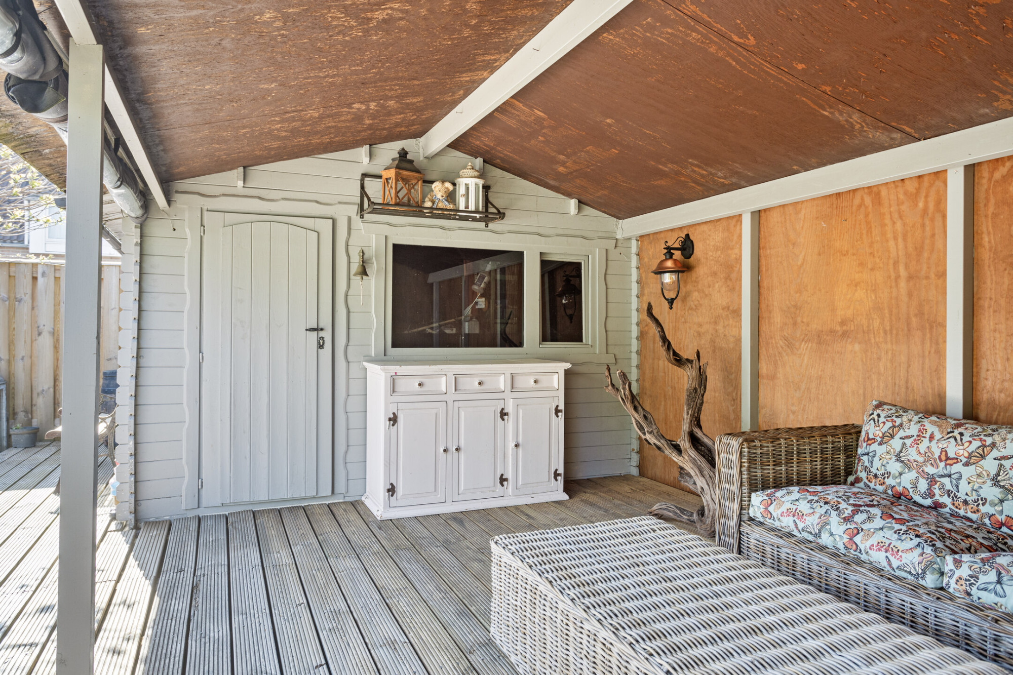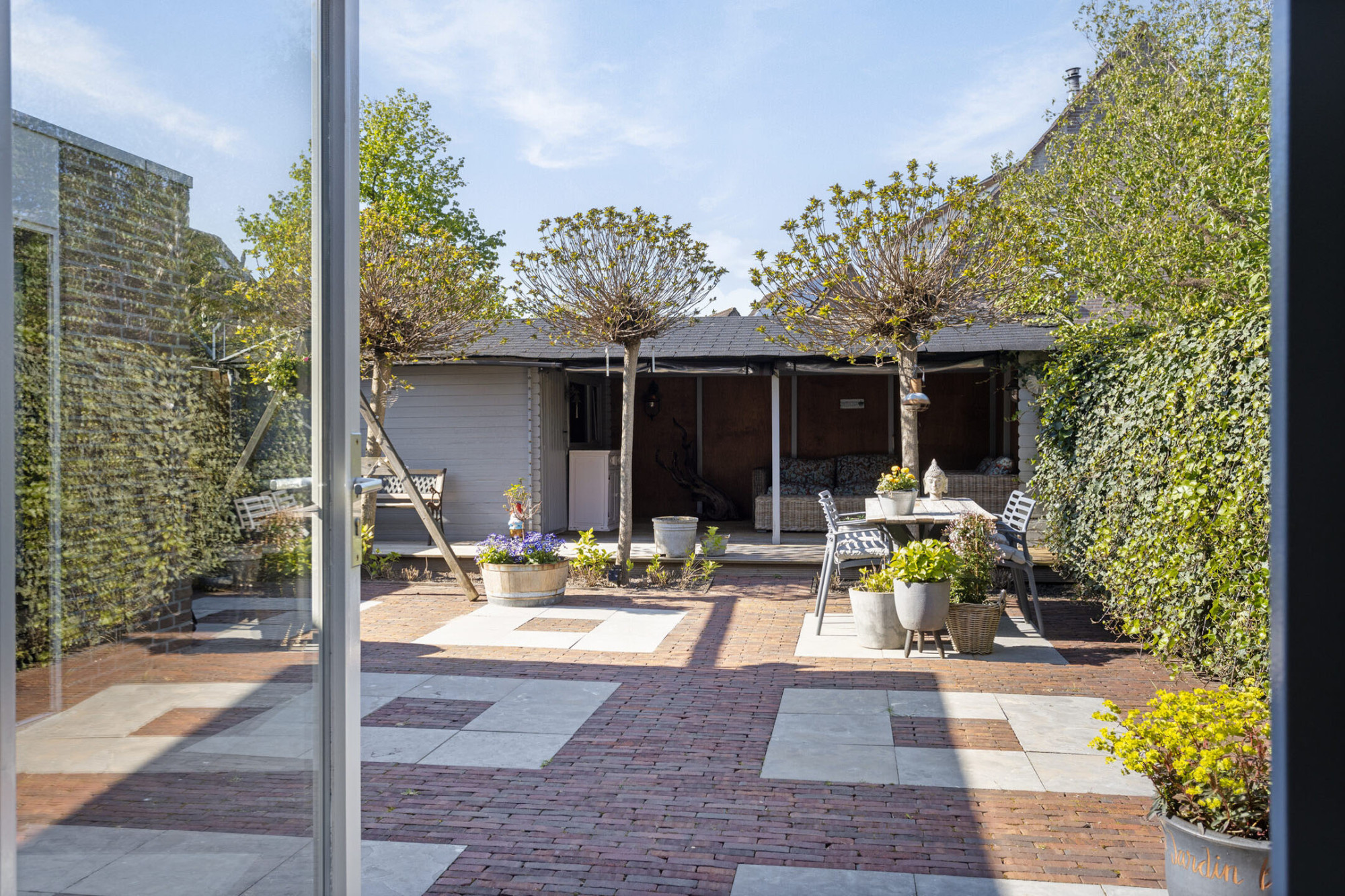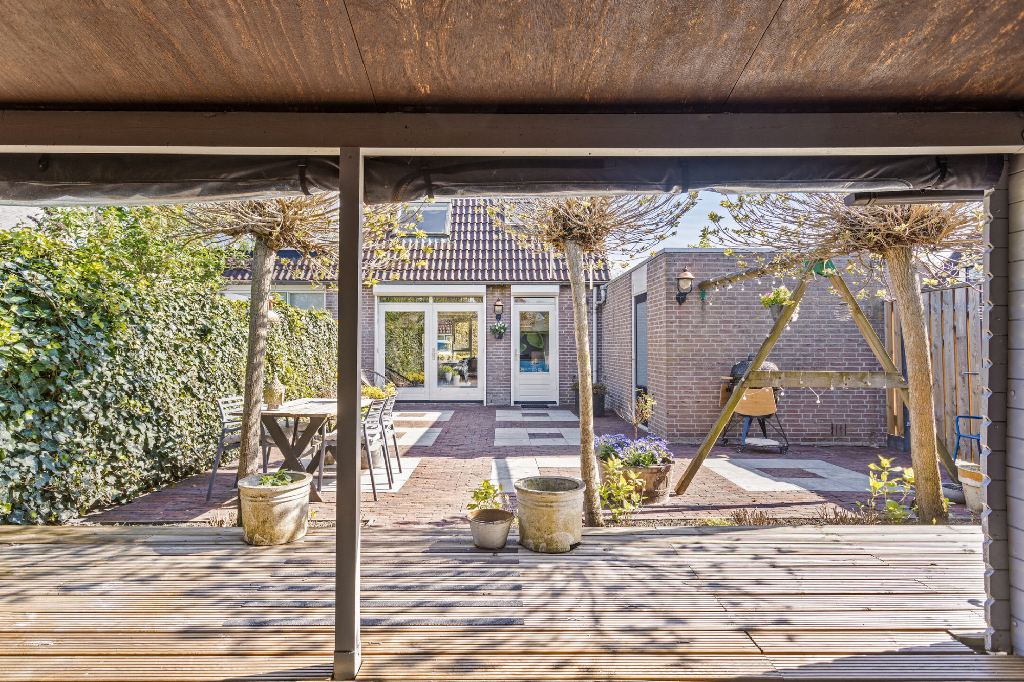 - Grote overkapping en een tuinhuis voor extra opbergruimte;